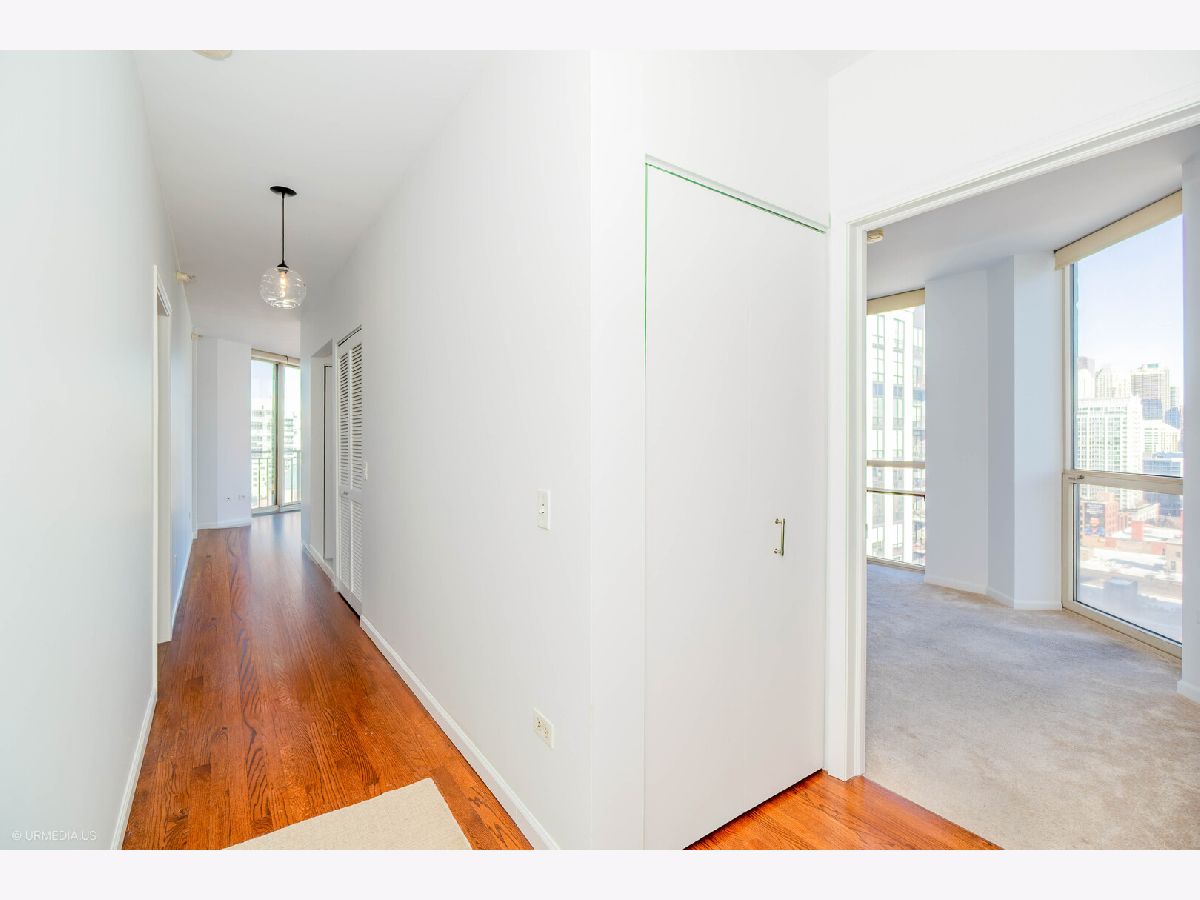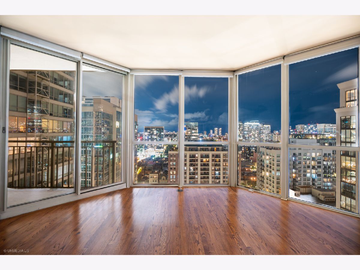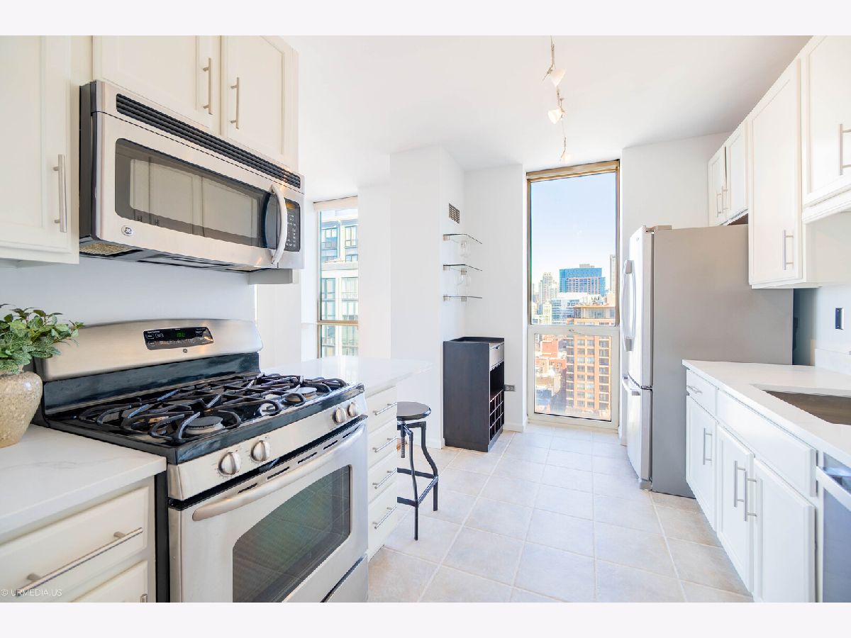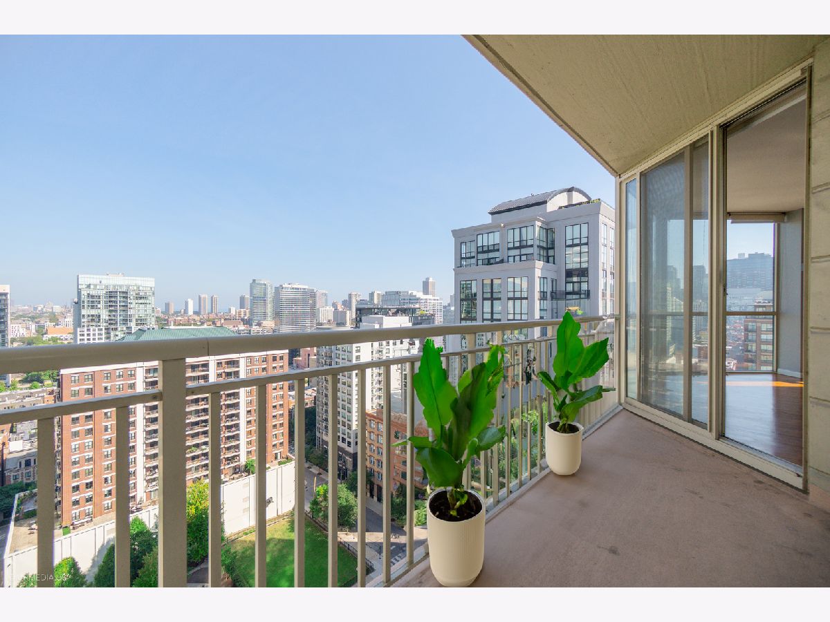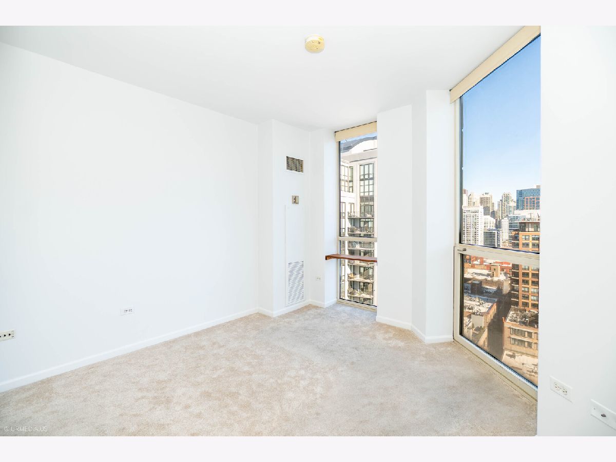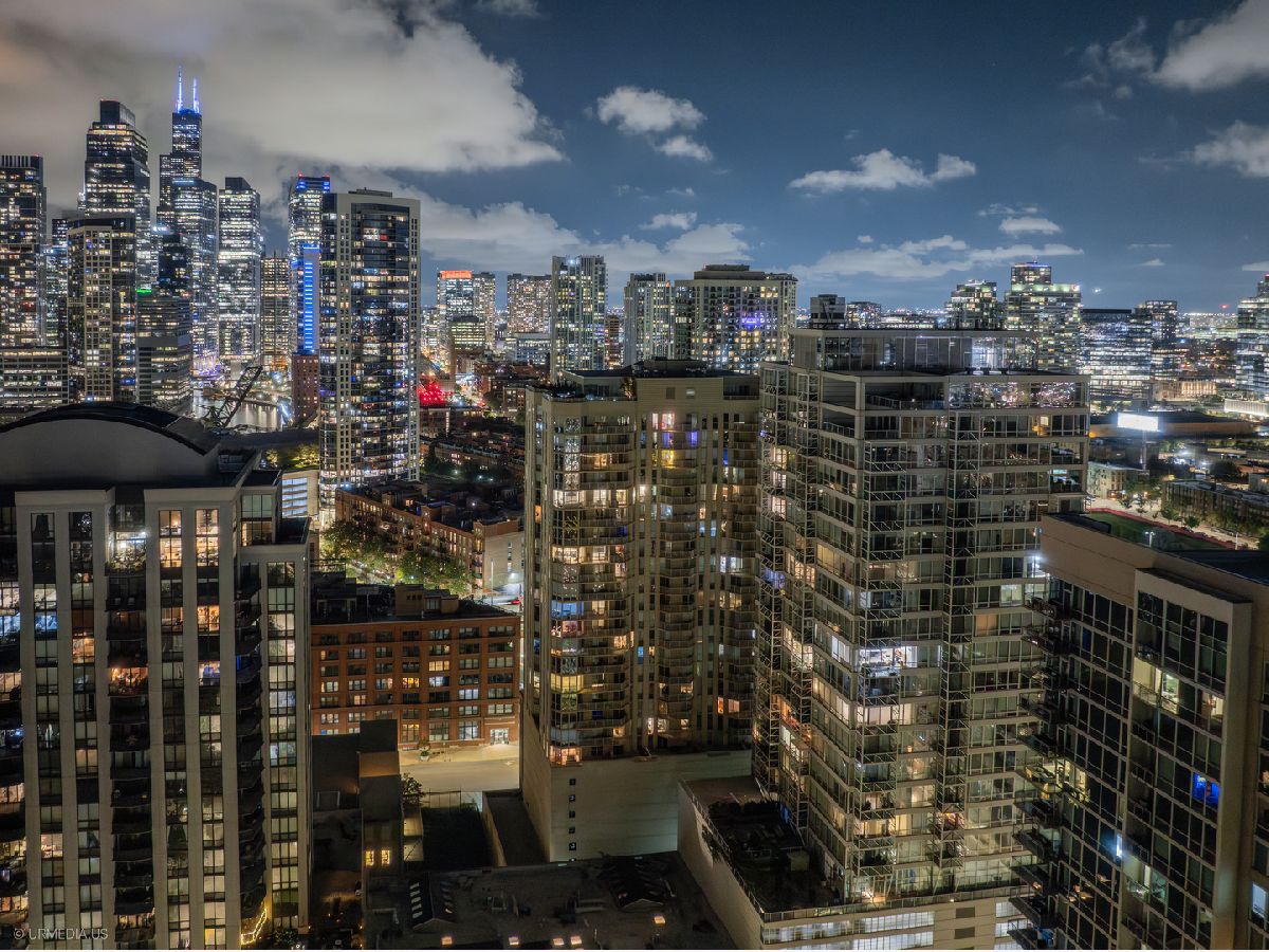 Incredible opportunity to own a sophisticated corner residence in one of River North's most desirable tiers at 645 N Kingsbury. Floor-to-ceiling windows flood the home with natural light and showcase dramatic skyline views. The open layout features hardwood floors throughout, a chef's kitchen with stainless steel appliances and brand new quartz countertops, freshly painted, upgraded light fixtures and a private balcony off the living room, perfect for relaxing or entertaining. The luxurious primary suite offers spa-inspired comfort with double vanities and a serene bath. Full-amenity building includes 24-hour door staff, fitness center, party room, and bike room. Perfectly situated across from Montgomery Ward Park with easy access to the East Bank Club, Chicago's Riverwalk, and many shopping and dining options. Commuters take ease with highway access only 3 blocks away. Deeded parking available for $30,000.