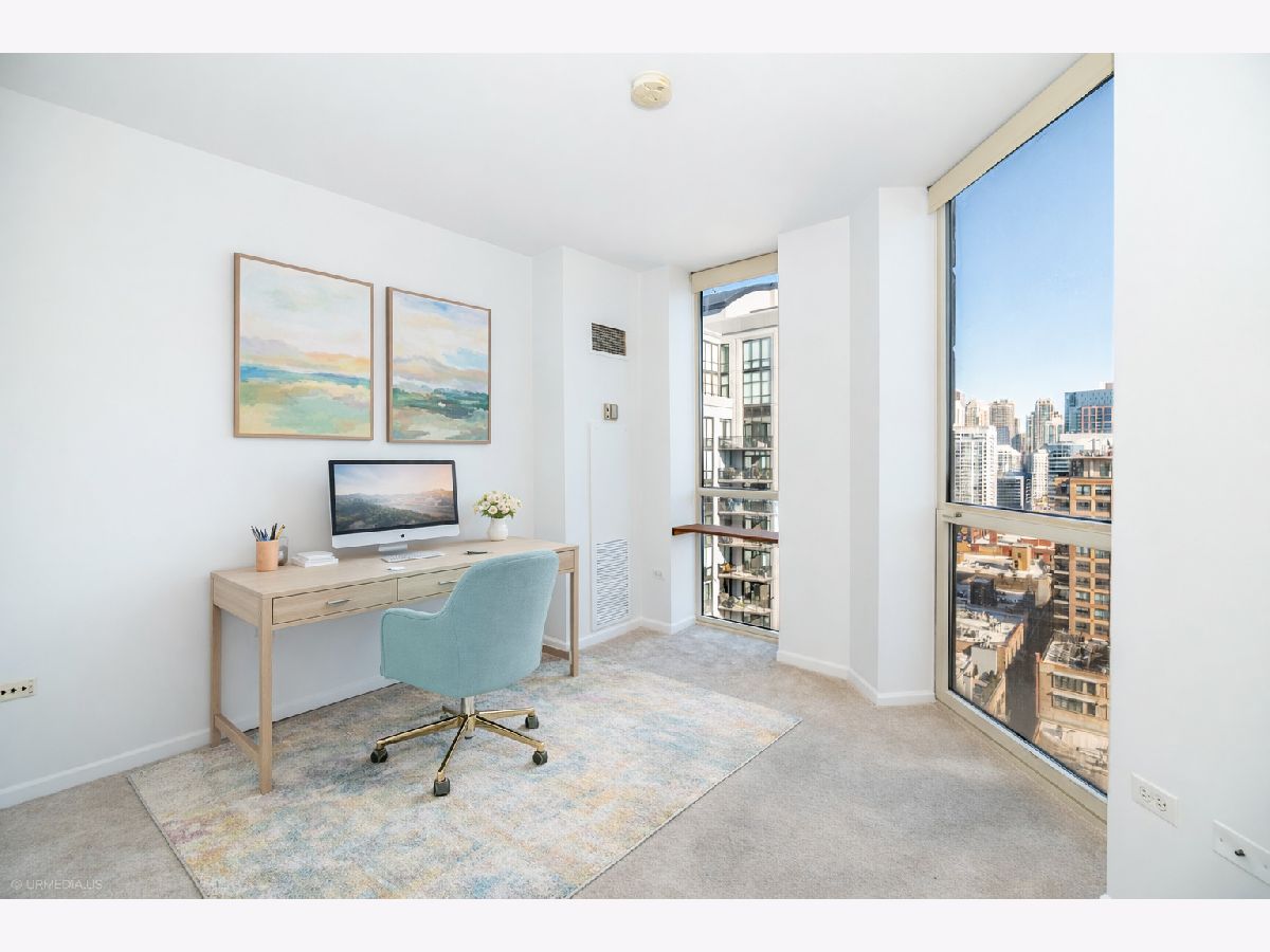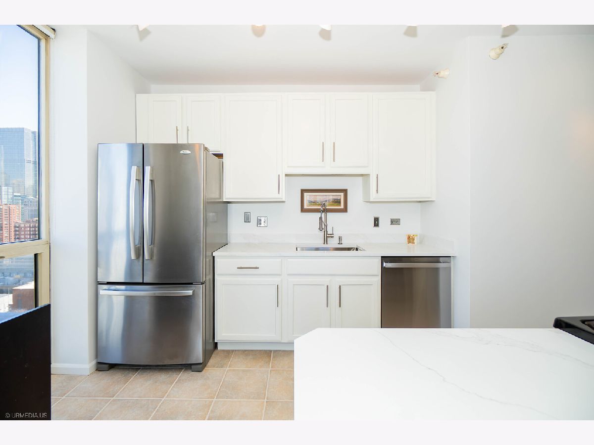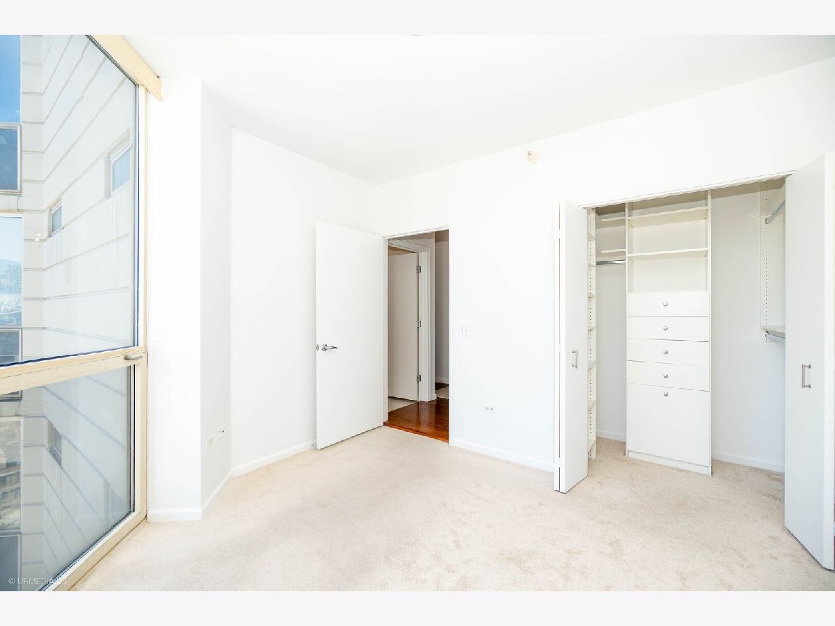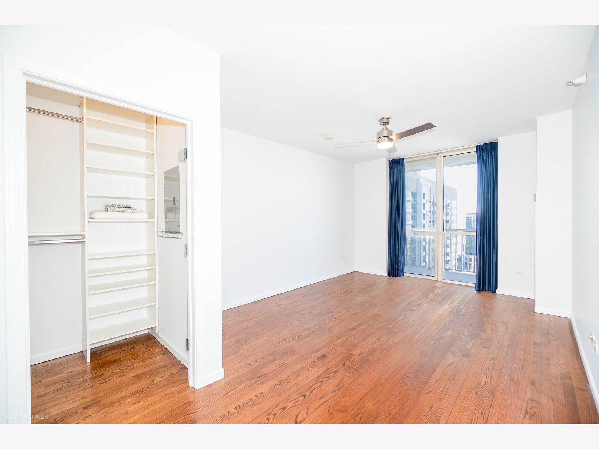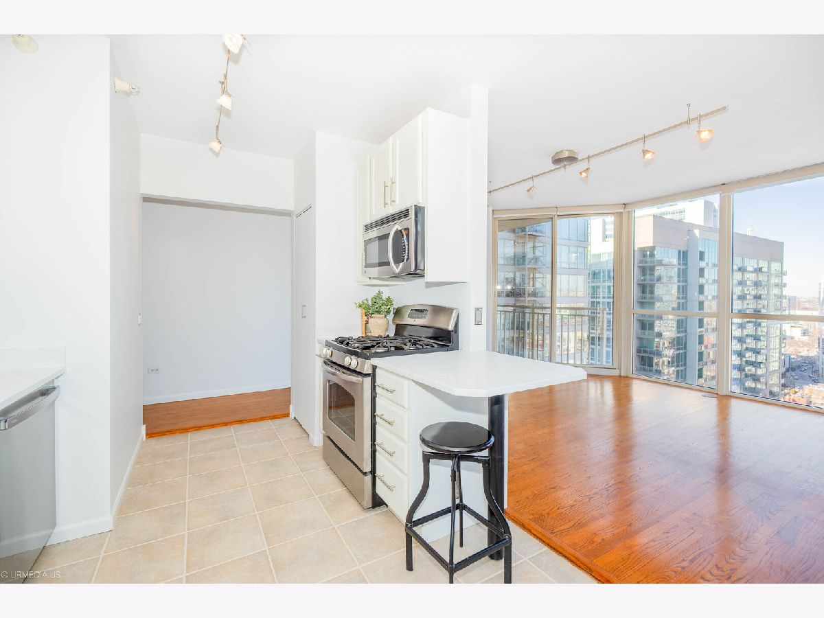 Incredible opportunity to own a sophisticated corner residence in one of River North's most desirable tiers at 645 N Kingsbury. Floor-to-ceiling windows flood the home with natural light and showcase dramatic skyline views. The open layout features hardwood floors throughout, a chef's kitchen with stainless steel appliances and brand new quartz countertops, freshly painted, upgraded light fixtures and a private balcony off the living room, perfect for relaxing or entertaining. The luxurious primary suite offers spa-inspired comfort with double vanities and a serene bath. Full-amenity building includes 24-hour door staff, fitness center, party room, and bike room. Perfectly situated across from Montgomery Ward Park with easy access to the East Bank Club, Chicago's Riverwalk, and many shopping and dining options. Commuters take ease with highway access only 3 blocks away. Deeded parking available for $30,000.