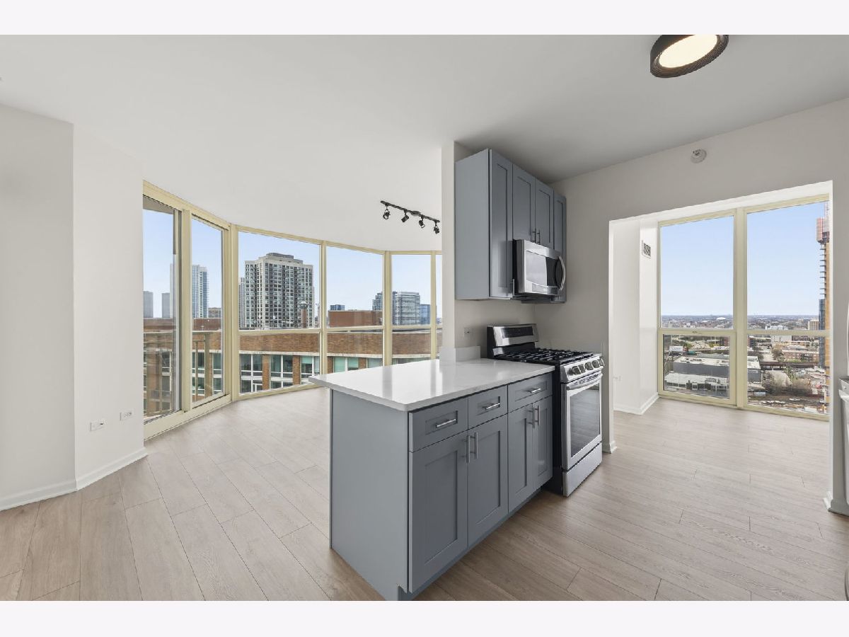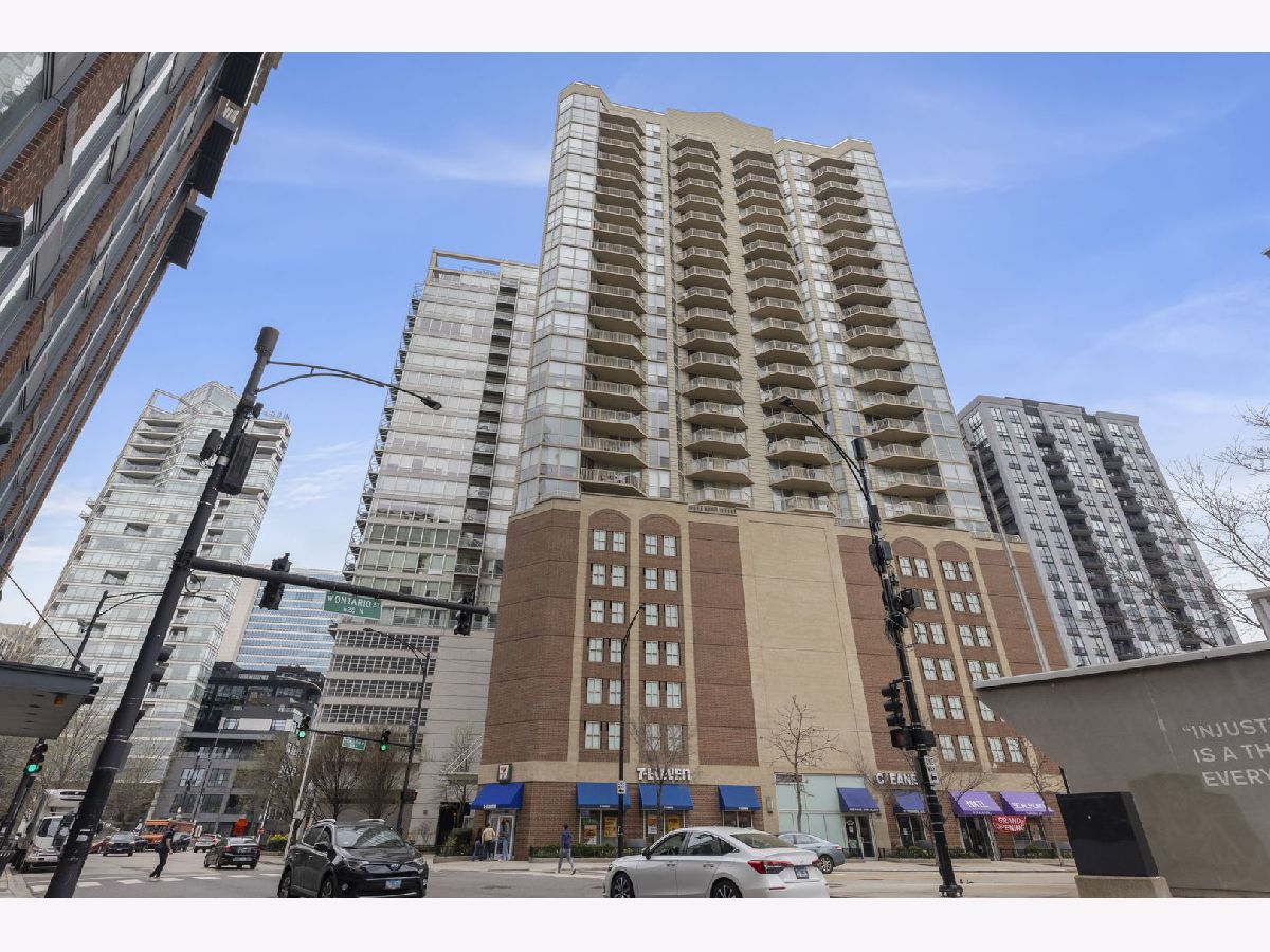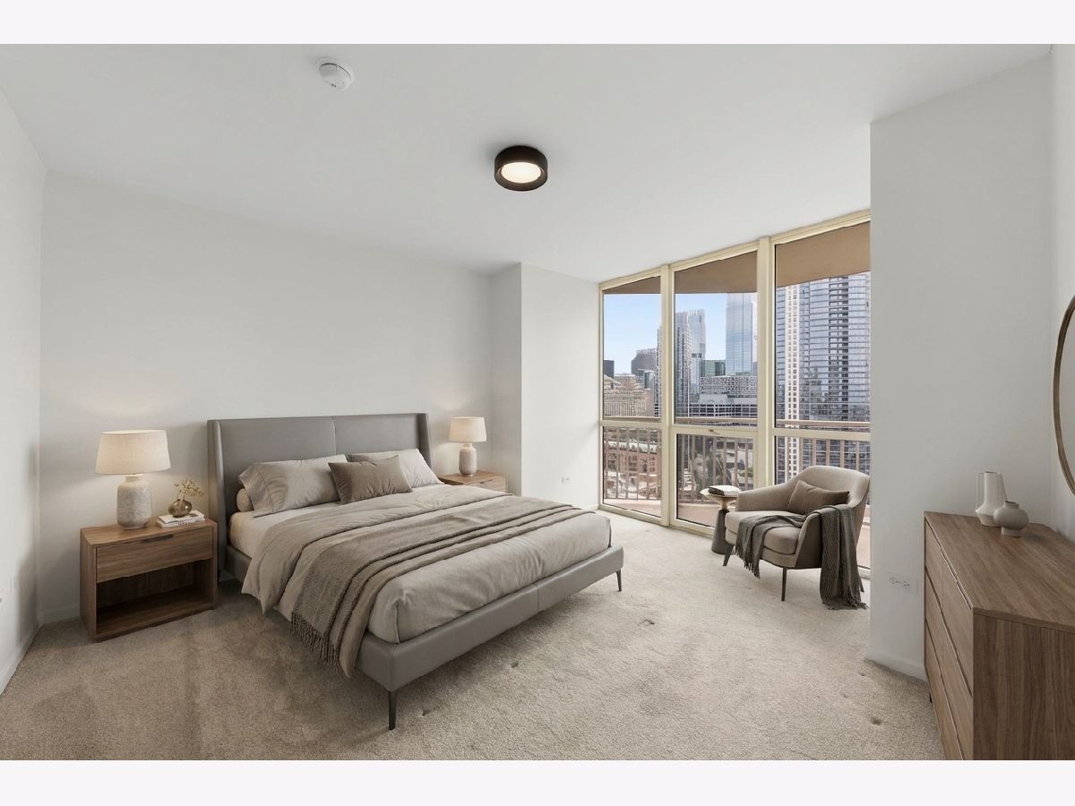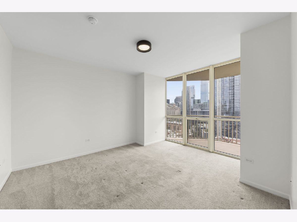Welcome to this meticulously maintained modern condo in the heart of River North! This beautifully updated 2-bedroom, 2-bathroom unit offers an open-concept design with floor-to-ceiling windows, flooding the space with natural light and fabulous views of the Chicago River. Step out onto your private balcony and take in the iconic city skyline! The unit has been thoughtfully updated throughout, featuring newly installed luxury vinyl plank flooring, new kitchen cabinets, sleek quartz countertops, and stainless steel appliances. Enjoy the convenience of an in-unit washer and dryer. One garage space is included. Residents enjoy full-service amenities including 24-hour door staff, a well-equipped fitness center, a stylish party/meeting room, and storage lockers. Unbeatable location just steps from top restaurants, nightlife, shopping, parks, and the river, with easy access to the Brown Line, Metra, and major expressways. This is city living at its finest, move right in and enjoy everything River North has to offer!