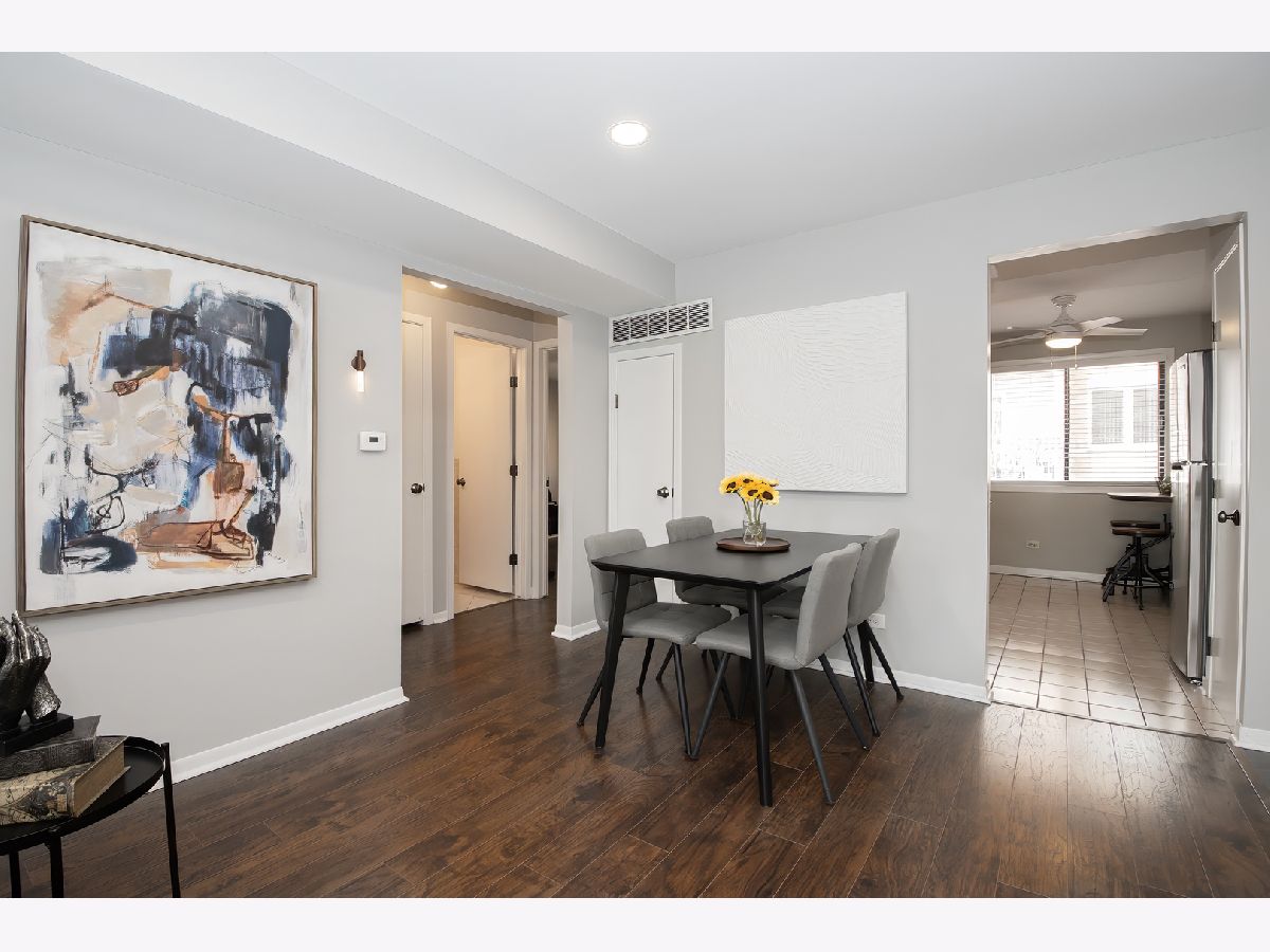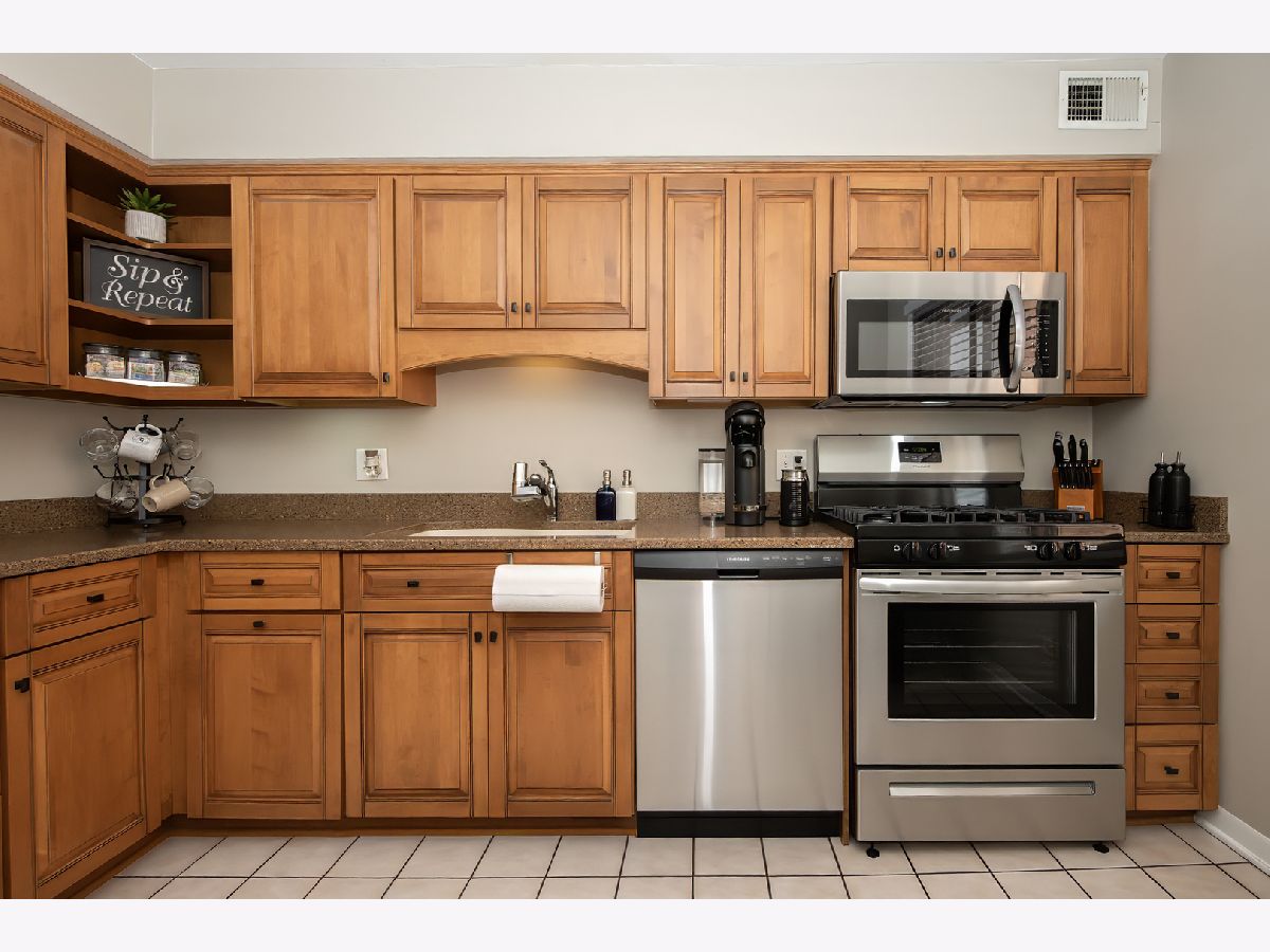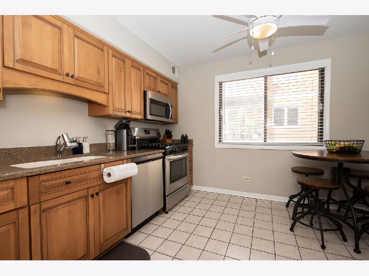 Stylish and move-in ready 2 bedroom, 2 bathroom condo in a beautifully landscaped, well-maintained courtyard building. This top-floor home offers a bright, open layout with modern updates throughout. The spacious living room features recessed lighting, newer wood laminate floors, and sliding doors to a private balcony overlooking the courtyard. The kitchen is appointed with granite counters, stainless steel appliances, and abundant cabinet space, while both bathrooms have been tastefully updated. The primary suite is generously sized, complemented by a versatile second bedroom. Residents appreciate the peaceful, quiet setting of this building, which is close enough to enjoy the restaurants, shops, and nightlife of Edison Park, yet far enough removed to offer a relaxing retreat. Additional conveniences include ample closet space, central air, a large private storage unit, shared laundry, and one exterior parking space. With easy access to the Metra and expressways, this home combines comfort, style, and convenience - truly a must-see. AS-IS