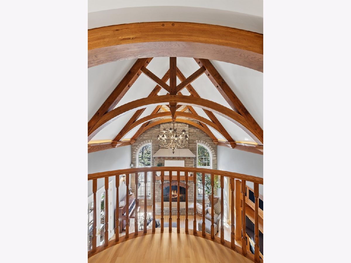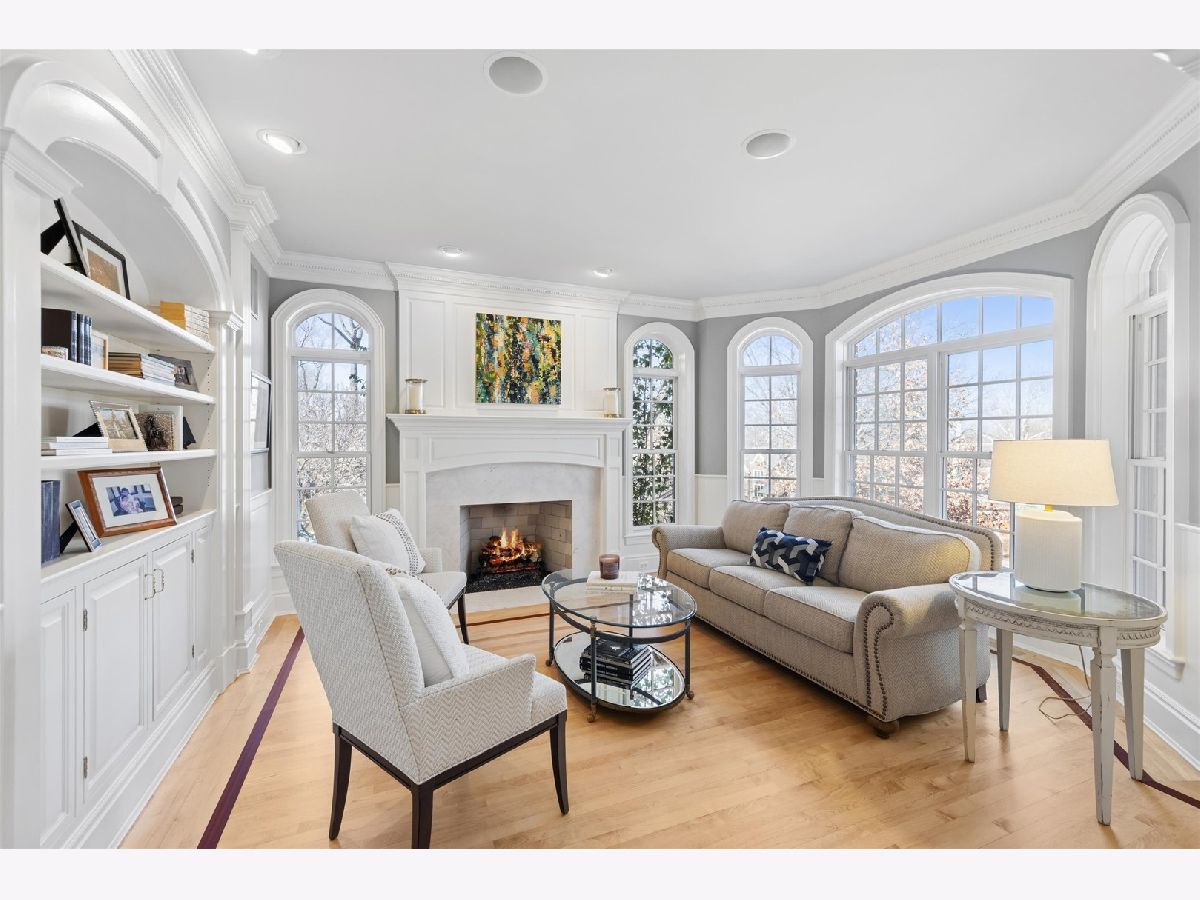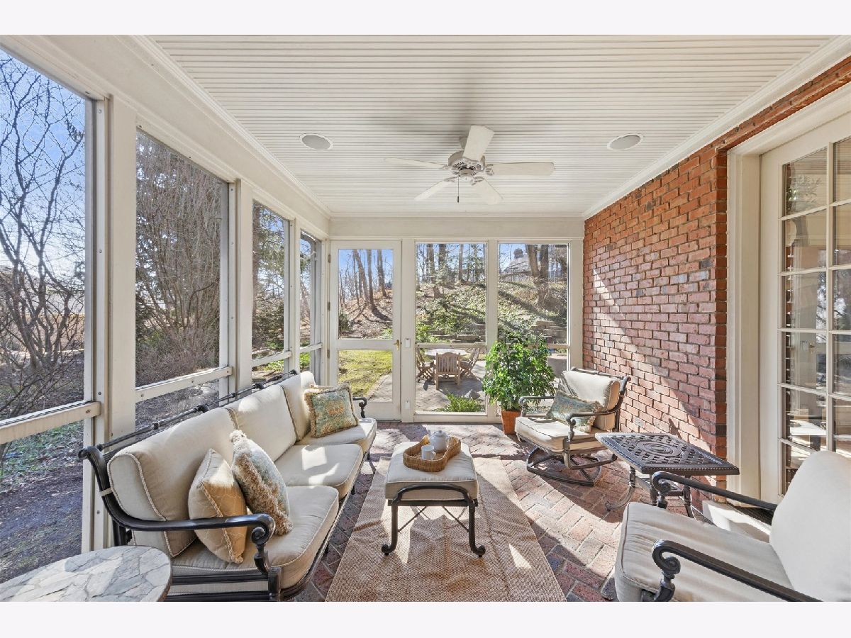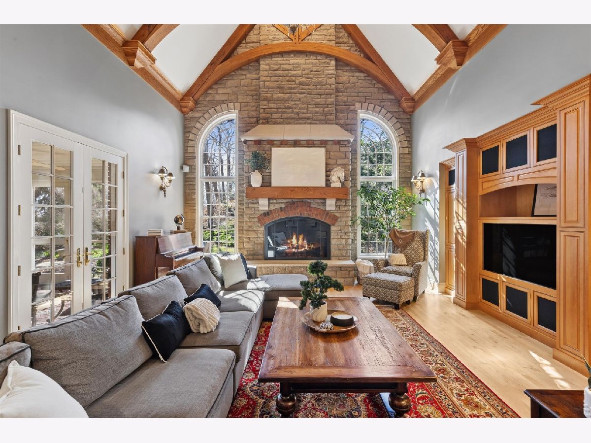 Majestically set on a wooded half-acre in Glen Ellyn's coveted Lake Ellyn neighborhood, this extraordinary 7,000-square-foot all-brick estate offers timeless architecture, exceptional craftsmanship, and an unrivaled walk-to-everything location near town, train, Lake Ellyn, Glenbard West High School, and the area's best dining and shops. Designed with both grandeur and livability in mind, the home features a gracious circular floor plan, soaring ceilings, expansive light-filled rooms, and exquisite custom millwork throughout. A dramatic center-entry foyer opens to stunning living and dining rooms, each anchored by a gas fireplace and framed by serene treetop views. At the heart of the home is the newly remodeled (2025) kitchen, designed by TKS of Glen Ellyn, showcasing rich custom cabinetry, a generous center island, Sub-Zero refrigeration, a six-burner Wolf range, steam oven, and walk-in pantry. Thoughtfully designed for both everyday living and elegant entertaining, the space also features a built-in desk area and flows seamlessly into the sunlit breakfast room. From there, step out to the tranquil screened porch. A spacious laundry room and oversized mudroom add exceptional convenience and functionality. The spectacular family room is a true architectural showpiece, highlighted by a soaring cathedral timber-truss ceiling reaching 20 feet, a dramatic masonry gas fireplace, wet bar, and custom entertainment center. French doors open to a screened porch and expansive paver patio overlooking the lush, private backyard an idyllic setting for indoor-outdoor living. A distinguished first-floor office with French doors and a wall of custom built-ins provides the perfect work-from-home retreat. Upstairs, the luxurious primary suite offers a serene sitting area, dual walk-in closets, and an spectacular bath featuring double vanities and an impressive 8' x 5' walk-in steam shower with dual controls. Three additional bedrooms include customized walk-in closets and beautifully updated en-suite and Jack-and-Jill baths (2019). The remarkable unfinished third floor offers soaring 14 foot peak ceilings and extraordinary flex space currently used for recreation and storage, it is ideal for a future golf simulator, studio, or additional living area. The walk-out lower level extends the home's exceptional living space with two additional bedrooms, a newly updated Jack-and-Jill bath, media room with custom built-ins, and kitchenette. Completing this impressive residence is a full home automation system and a heated four-car garage. Surrounded by picturesque grounds and unmatched in scale, craftsmanship, and location, this remarkable estate represents a rare opportunity to own one of Glen Ellyn's most distinguished homes.