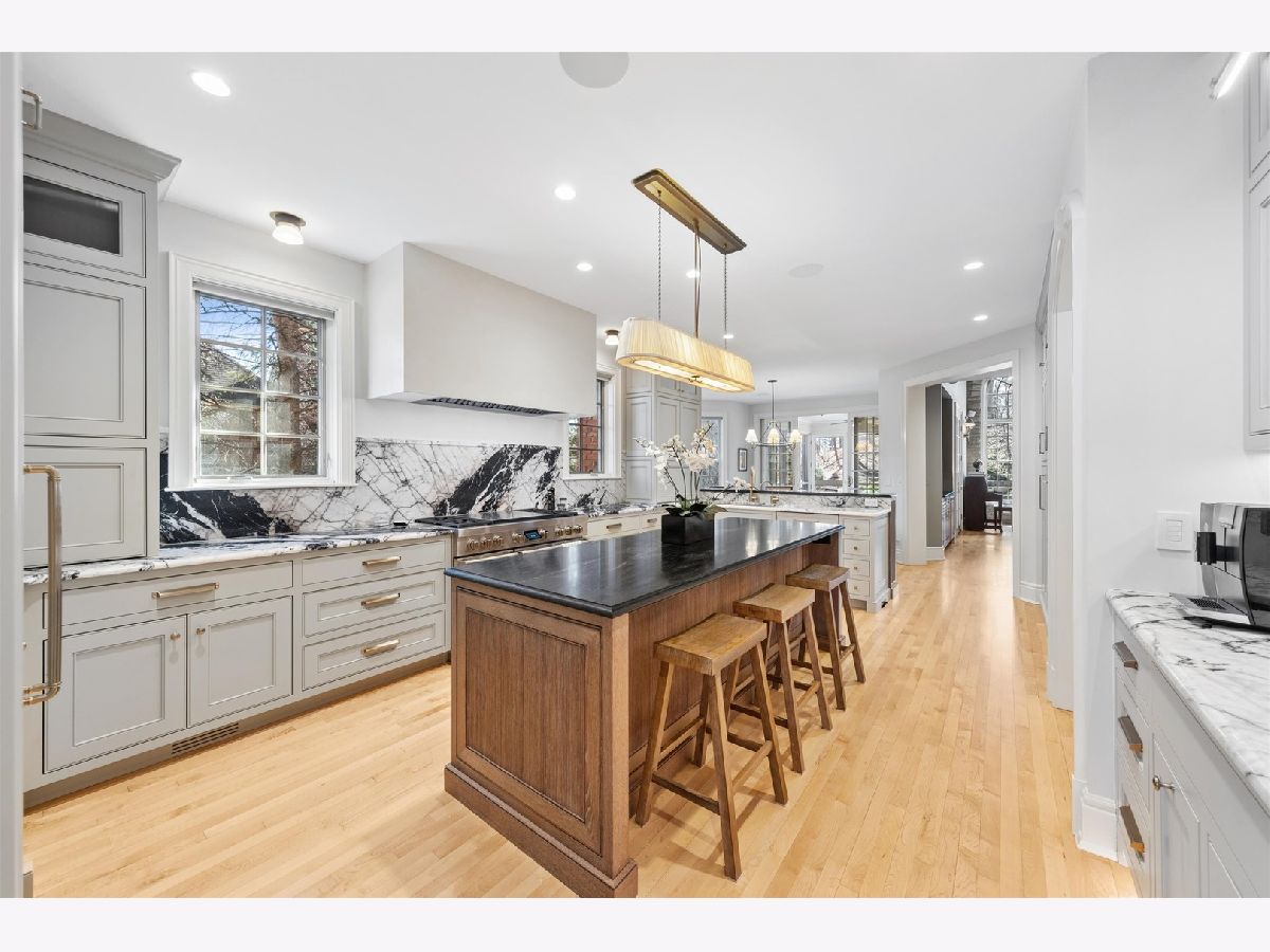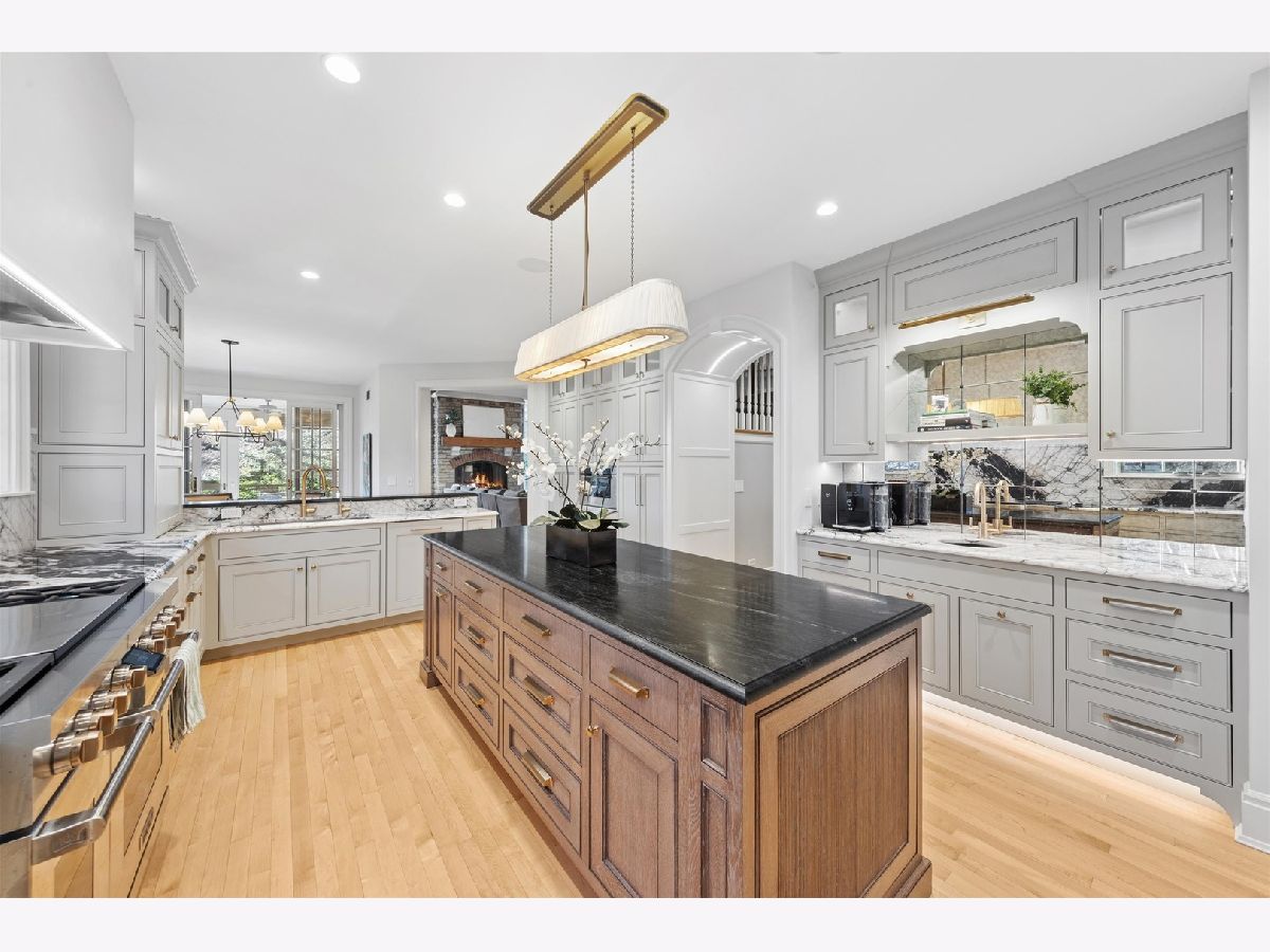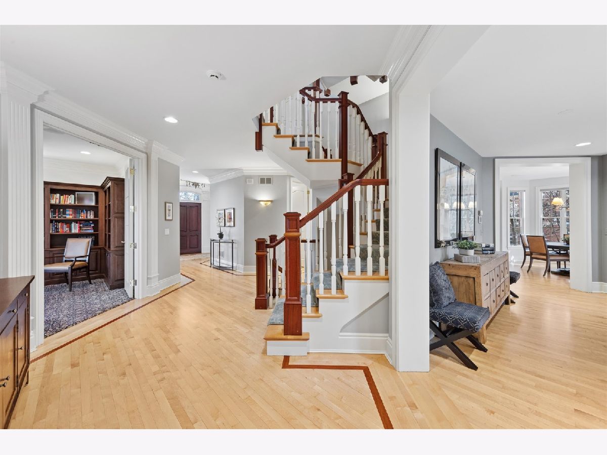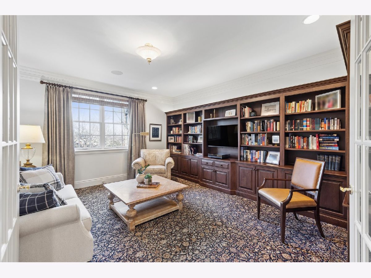 Majestically set on a wooded half-acre in Glen Ellyn's coveted Lake Ellyn neighborhood, this extraordinary 7,000-square-foot all-brick estate offers timeless architecture, exceptional craftsmanship, and an unrivaled walk-to-everything location near town, train, Lake Ellyn, Glenbard West High School, and the area's best dining and shops. Designed with both grandeur and livability in mind, the home features a gracious circular floor plan, soaring ceilings, expansive light-filled rooms, and exquisite custom millwork throughout. A dramatic center-entry foyer opens to stunning living and dining rooms, each anchored by a gas fireplace and framed by serene treetop views. At the heart of the home is the newly remodeled (2025) kitchen, designed by TKS of Glen Ellyn, showcasing rich custom cabinetry, a generous center island, Sub-Zero refrigeration, a six-burner Wolf range, steam oven, and walk-in pantry. Thoughtfully designed for both everyday living and elegant entertaining, the space also features a built-in desk area and flows seamlessly into the sunlit breakfast room. From there, step out to the tranquil screened porch. A spacious laundry room and oversized mudroom add exceptional convenience and functionality. The spectacular family room is a true architectural showpiece, highlighted by a soaring cathedral timber-truss ceiling reaching 20 feet, a dramatic masonry gas fireplace, wet bar, and custom entertainment center. French doors open to a screened porch and expansive paver patio overlooking the lush, private backyard an idyllic setting for indoor-outdoor living. A distinguished first-floor office with French doors and a wall of custom built-ins provides the perfect work-from-home retreat. Upstairs, the luxurious primary suite offers a serene sitting area, dual walk-in closets, and an spectacular bath featuring double vanities and an impressive 8' x 5' walk-in steam shower with dual controls. Three additional bedrooms include customized walk-in closets and beautifully updated en-suite and Jack-and-Jill baths (2019). The remarkable unfinished third floor offers soaring 14 foot peak ceilings and extraordinary flex space currently used for recreation and storage, it is ideal for a future golf simulator, studio, or additional living area. The walk-out lower level extends the home's exceptional living space with two additional bedrooms, a newly updated Jack-and-Jill bath, media room with custom built-ins, and kitchenette. Completing this impressive residence is a full home automation system and a heated four-car garage. Surrounded by picturesque grounds and unmatched in scale, craftsmanship, and location, this remarkable estate represents a rare opportunity to own one of Glen Ellyn's most distinguished homes.