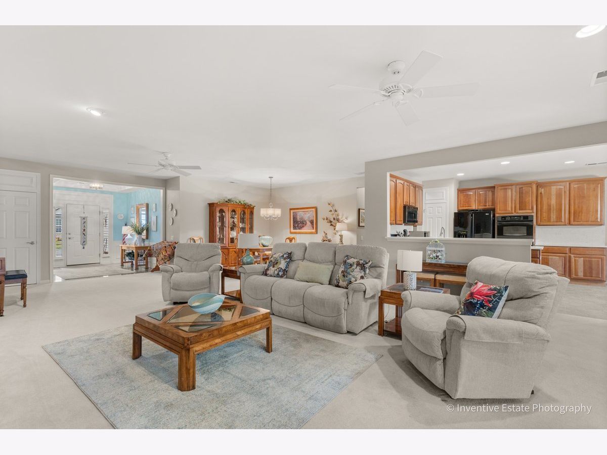 Custom "Somerset Model" boasts spacious Family Rm addition w/Gas Fireplace & Crown Molding. 3 Bdrms, Den/Quilting Rm, Great Rm, Din Rm & Kitchen Eating Area. 42" Light Cherry Cabs, Quartz Cntr Tops & Backsplash + All Appls, Lighting, Ceiling Fans & Window Trtmnts Stay. Features, also include a newer Roof, an Extended Garage w/ Treated Flr, buried Gutter, Paver Ribbons & Walk, newer Driveway, Brick Patio w/ mature Maple & River Birch Trees. Bay Windows in Kit & Primary Bdrm, Can Lighting, solid Core 6 panel and Fr Doors + two Full Baths and Primary has a walk-in whirlpool. A one-of-a-kind home, that you must see!