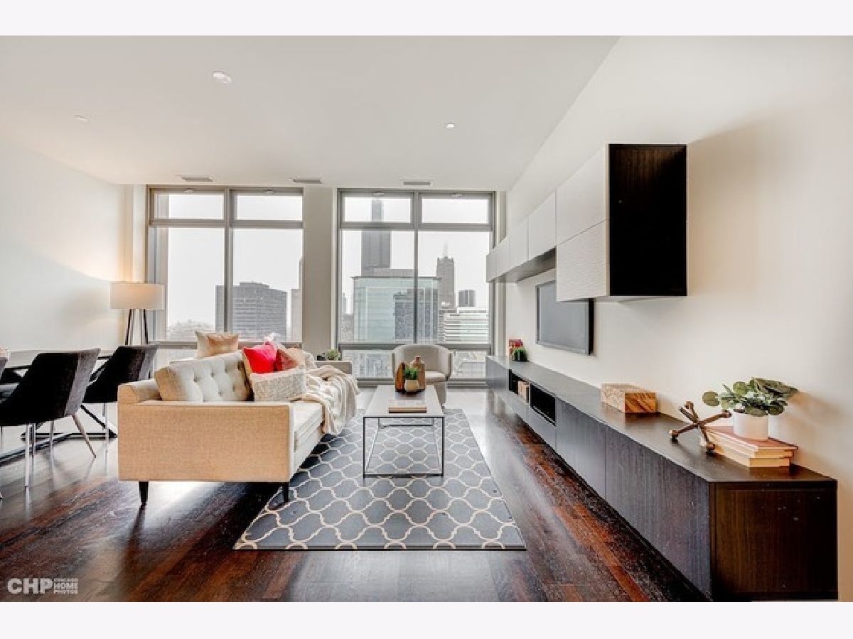 Luxury residence with spectacular expansive city views, 10ft ceilings with floor to ceiling windows, Expresso wood floors, recessed lighting, gallery entry, living room features custom built-in, contemporary kitchen with oversized island, stainless chimney hood, commercial grade appliances, quartz counter tops, and designer cabinets, bath features soaker tub and marble oversized vanity with raised sink, primary bedroom with two large closets, laundry in unit, rental parking available