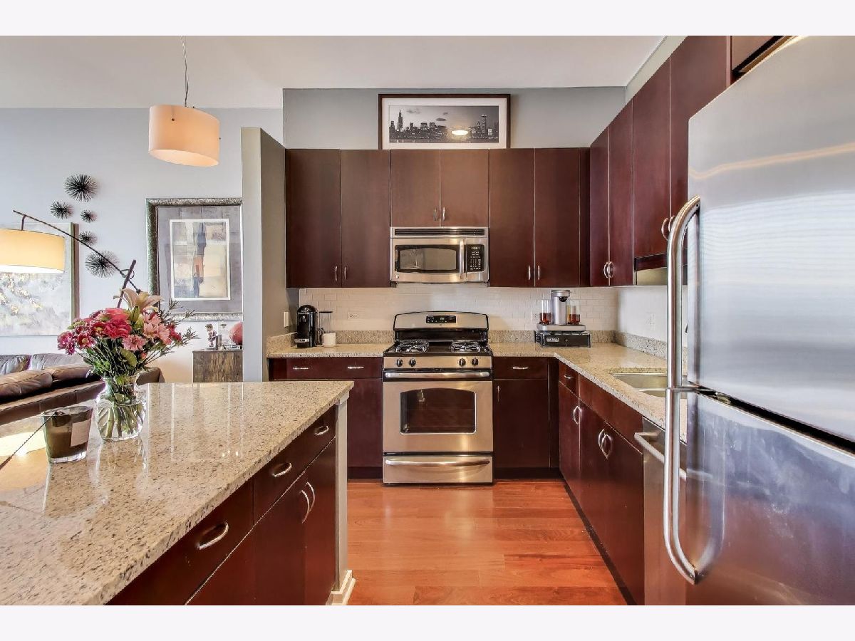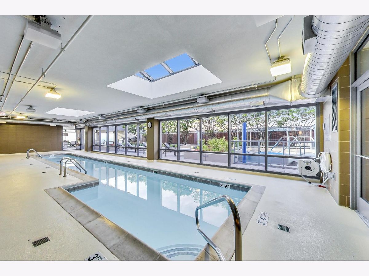 Experience elevated living high above the city in this impeccable 2-bedroom, 2-bath residence at the full-amenity Park Monroe. This west-facing unit enjoys abundant afternoon light and stunning sunset views with the Willis Tower as your backdrop. The open floor plan features 4" cherry hardwood floors, floor-to-ceiling windows, and a private balcony accessible from the living room and second bedroom. The sleek kitchen offers flat-panel mocha cabinetry, GE stainless steel appliances and Bosch dishwasher, granite counters, and a spacious island perfect for entertaining. The fully enclosed primary suite includes glass transom windows, a walk-in closet, and a spa-inspired bath with a deep soaking tub, double vanity, and custom granite finishes. Enjoy premier amenities including a sky deck with grills and lounge seating, indoor pool and outdoor hot tub, fitness center, theater room, community room with panoramic lake views, 24-hour door staff, and on-site management. Storage unit included, as well as one garage parking space in the gated area of the attached garage.