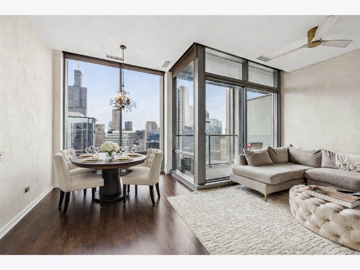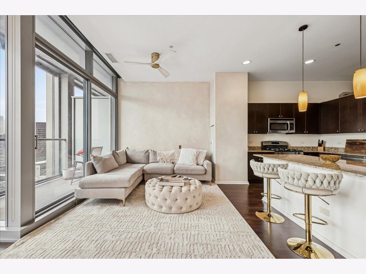 Welcome home to this stunning west-facing 1 bed / 1 bath residence that is flooded with natural light from dramatic floor-to-ceiling windows and unobstructed skyline views. The open-concept layout is perfect for entertaining. Soaring 10' ceilings lead to a spacious living/dining area and private balcony with stunning city and sunset views. In-unit laundry, surround sound wiring, and additional storage complete the home. Full-amenity building with indoor pool, spa, fitness center, theatre room, 24-hour door staff, on-site management, and panoramic Lake Michigan views from the party room and sun deck with grills.