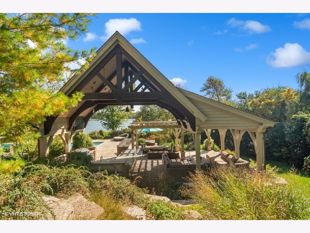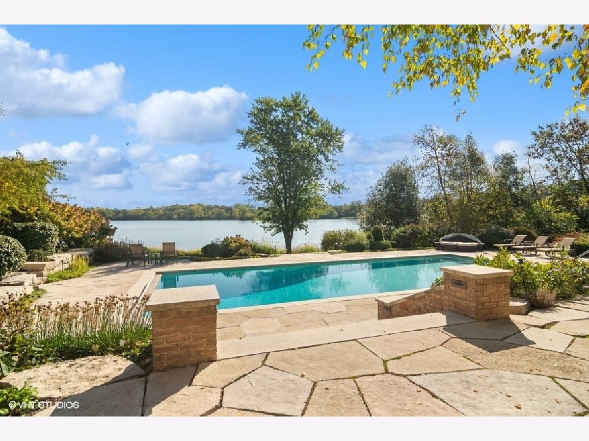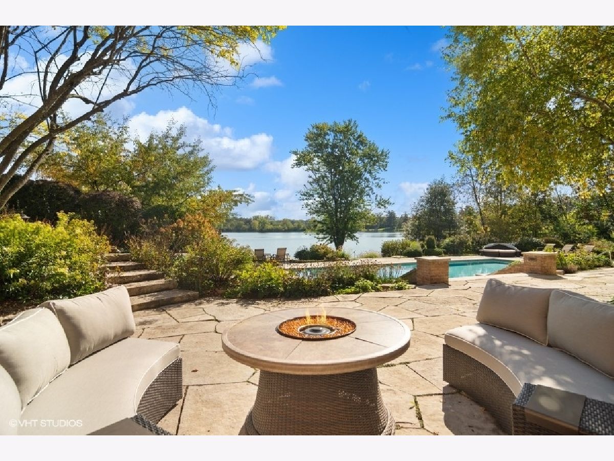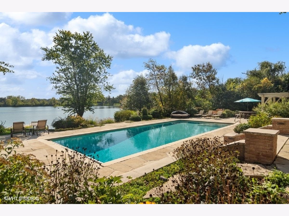 Set on more than five acres of beautifully landscaped grounds with 400 feet of private shoreline, this French Country estate captures the essence of refined lakefront living on Barrington Hills' exclusive Hawley Lake. Commanding its rare position with timeless elegance and resort-style amenities, it offers a lifestyle of unparalleled beauty, inspiration, privacy, and sophistication. A seamless blend of comfort and refinement, the property is both a private sanctuary and a resort-like retreat, designed for living beautifully indoors and out. From the moment you arrive, the setting captivates-rolling lawns, towering trees, an apple orchard, and a flourishing garden surround a stately brick residence with sweeping lake views. The estate's amenities rival those of a private resort: a one million dollar upgrade includes: a large salt-water pool and separate spa framed in stone, a fully equipped outdoor kitchen and bar for lively gatherings, and generous terraces and porches that invite relaxation at every turn. Inside, timeless craftsmanship and thoughtful design take center stage. Soaring windows flood the interiors with light, while custom millwork and architectural detailing provide an air of refinement. The formal living room is inviting and grand, and the two-story great room with box beam ceiling both have fireplaces and are elegant backdrops for entertaining. The chef's kitchen, with adjoining hearth room and dining area, is as inviting as it is functional, with sweeping views of the lake and grounds - and a generous space to both create and entertain. The brightly lit main-floor primary suite offers a private deck overlooking the lake, large bathroom and two walk in closets. The richly appointed library opens to the separate porch and a spacious wet bar -your own secluded retreat. A large screened porch provides views of the grounds, and a place to enjoy nature in a protected area - from Spring through Fall. An inspiring atrium staircase ascends to the second floor, where two ensuite bedrooms anchor one wing, complemented by two additional bedrooms, a full bath, a versatile loft, and a spacious unfinished attic ready for customization. The walkout lower level expands the living experience with a light-filled family room, game room, wet bar (convertible to a second kitchen), gym with heated cork flooring and pool/playroom-all flowing effortlessly to the estate's spectacular outdoor spaces. Thoughtfully designed for in-law and au pair living, there are two staircases to both the second floor accommodations and the walk out lower level. Nestled at the end of a quiet cul-de-sac, the property opens directly to spring-fed Hawley Lake, known for fishing, paddleboarding, pontoon boating, and endless wildlife sightings. Your private pier and sandy beach invite morning swims, sunset cocktails, and memories made across the seasons. Two outbuildings enrich the lifestyle-an authentic livestock-ready two-stall barn, with separate luxe chicken quarters, and a charming historic original home, brimming with potential as a pool house, art studio, or private office. Seller has meticulously maintained this home, including a newer roof and copper gutters. Luxuries abound as well: a three-car attached garage, circular driveway, and proximity to Barrington's charming village, world-class dining, award-winning schools, boutique shopping and convenient access to O'Hare, downtown Chicago and the Metra train. This is more than a home-it is a lifestyle of rare privacy, natural waterfront beauty, and timeless elegance. A once-in-a-lifetime offering, it is destined to become the next steward's enduring legacy in the heart of Barrington Hills.