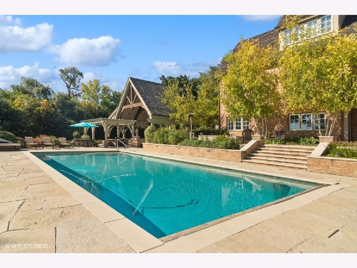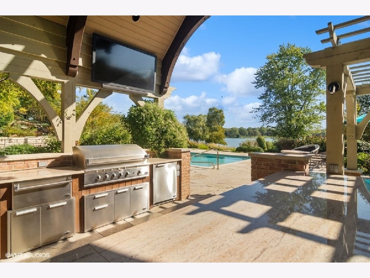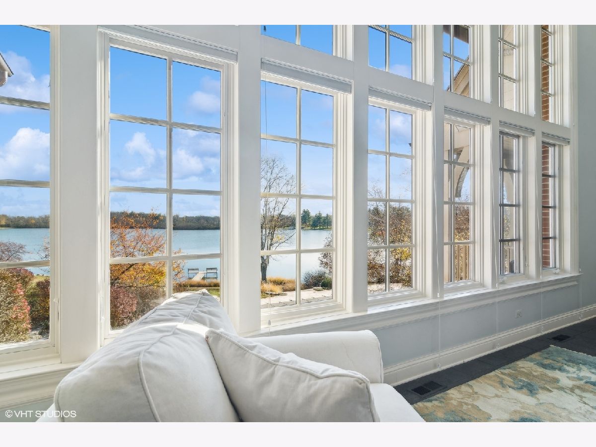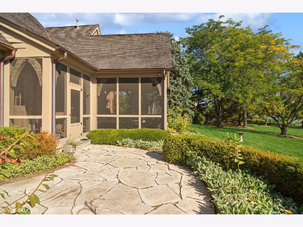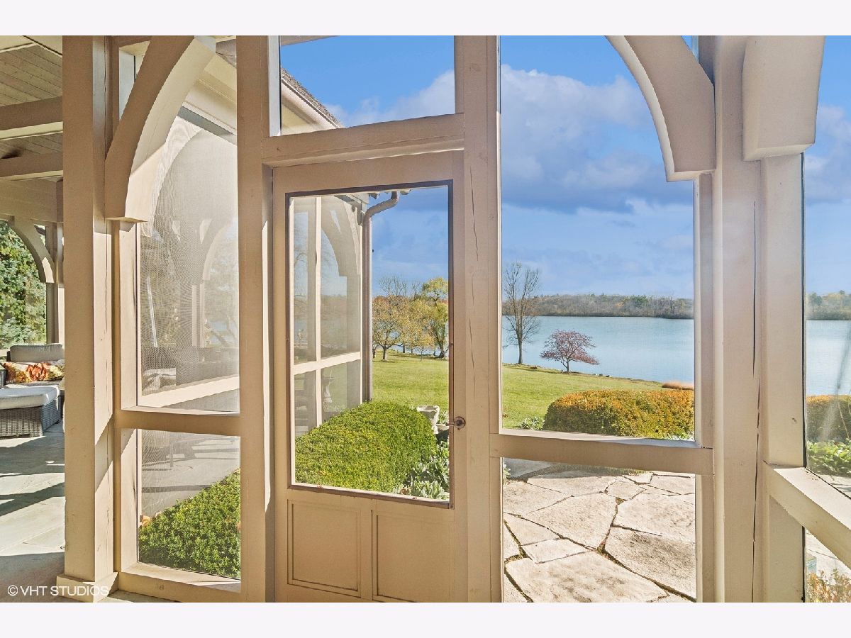 Set on more than five acres of beautifully landscaped grounds with 400 feet of private shoreline, this French Country estate captures the essence of refined lakefront living on Barrington Hills' exclusive Hawley Lake. Commanding its rare position with timeless elegance and resort-style amenities, it offers a lifestyle of unparalleled beauty, inspiration, privacy, and sophistication. A seamless blend of comfort and refinement, the property is both a private sanctuary and a resort-like retreat, designed for living beautifully indoors and out. From the moment you arrive, the setting captivates-rolling lawns, towering trees, an apple orchard, and a flourishing garden surround a stately brick residence with sweeping lake views. The estate's amenities rival those of a private resort: a one million dollar upgrade includes: a large salt-water pool and separate spa framed in stone, a fully equipped outdoor kitchen and bar for lively gatherings, and generous terraces and porches that invite relaxation at every turn. Inside, timeless craftsmanship and thoughtful design take center stage. Soaring windows flood the interiors with light, while custom millwork and architectural detailing provide an air of refinement. The formal living room is inviting and grand, and the two-story great room with box beam ceiling both have fireplaces and are elegant backdrops for entertaining. The chef's kitchen, with adjoining hearth room and dining area, is as inviting as it is functional, with sweeping views of the lake and grounds - and a generous space to both create and entertain. The brightly lit main-floor primary suite offers a private deck overlooking the lake, large bathroom and two walk in closets. The richly appointed library opens to the separate porch and a spacious wet bar -your own secluded retreat. A large screened porch provides views of the grounds, and a place to enjoy nature in a protected area - from Spring through Fall. An inspiring atrium staircase ascends to the second floor, where two ensuite bedrooms anchor one wing, complemented by two additional bedrooms, a full bath, a versatile loft, and a spacious unfinished attic ready for customization. The walkout lower level expands the living experience with a light-filled family room, game room, wet bar (convertible to a second kitchen), gym with heated cork flooring and pool/playroom-all flowing effortlessly to the estate's spectacular outdoor spaces. Thoughtfully designed for in-law and au pair living, there are two staircases to both the second floor accommodations and the walk out lower level. Nestled at the end of a quiet cul-de-sac, the property opens directly to spring-fed Hawley Lake, known for fishing, paddleboarding, pontoon boating, and endless wildlife sightings. Your private pier and sandy beach invite morning swims, sunset cocktails, and memories made across the seasons. Two outbuildings enrich the lifestyle-an authentic livestock-ready two-stall barn, with separate luxe chicken quarters, and a charming historic original home, brimming with potential as a pool house, art studio, or private office. Seller has meticulously maintained this home, including a newer roof and copper gutters. Luxuries abound as well: a three-car attached garage, circular driveway, and proximity to Barrington's charming village, world-class dining, award-winning schools, boutique shopping and convenient access to O'Hare, downtown Chicago and the Metra train. This is more than a home-it is a lifestyle of rare privacy, natural waterfront beauty, and timeless elegance. A once-in-a-lifetime offering, it is destined to become the next steward's enduring legacy in the heart of Barrington Hills.