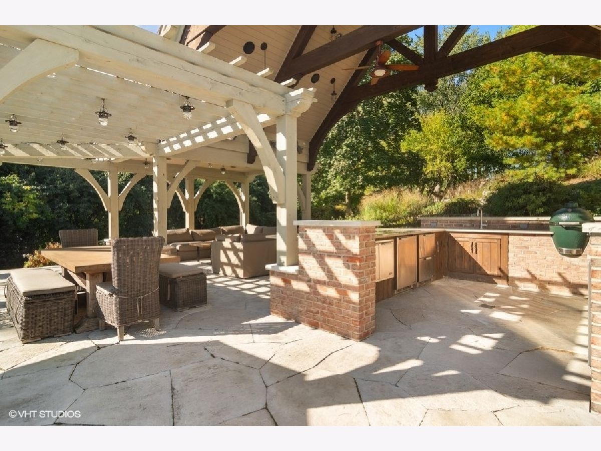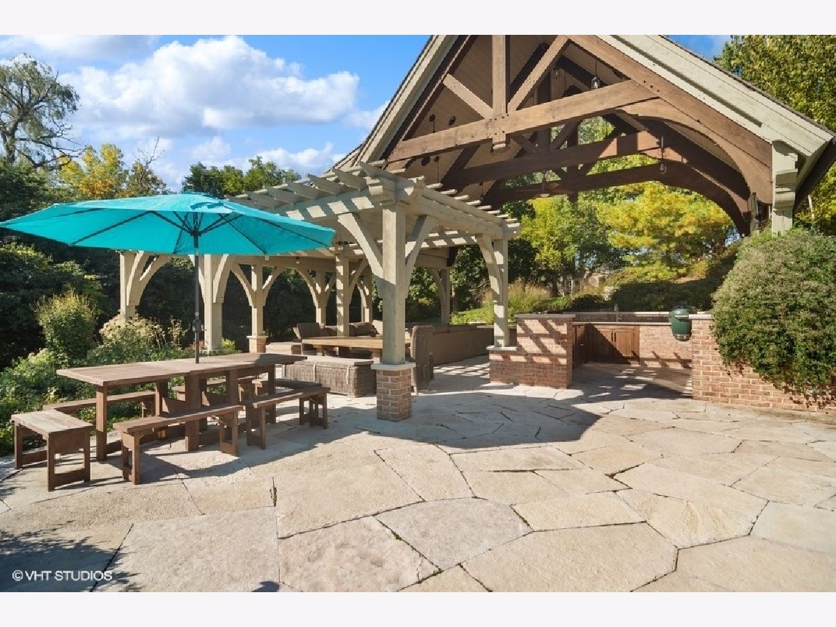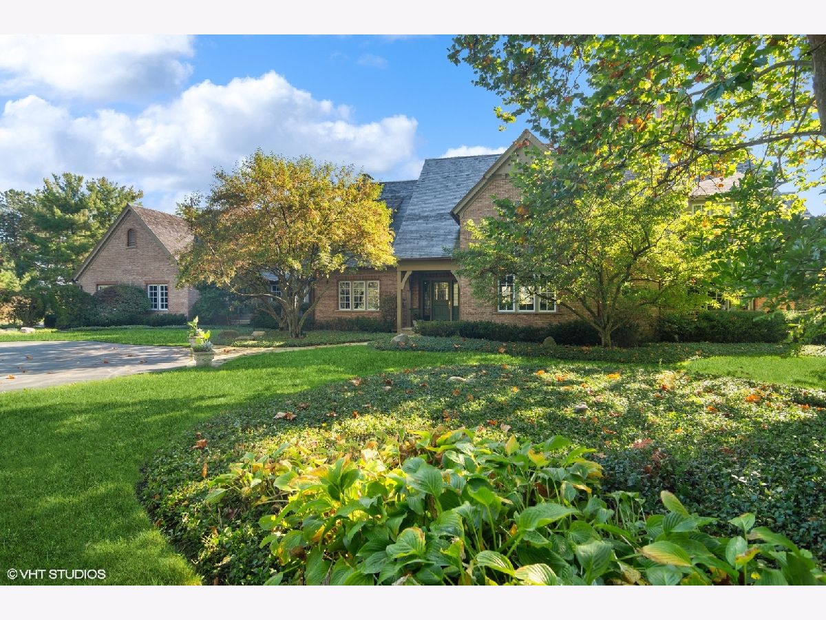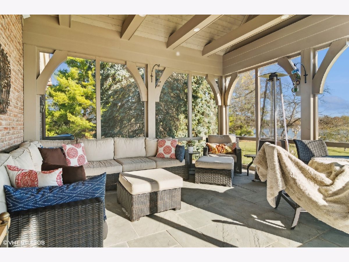 Set on more than five acres of beautifully landscaped grounds with 400 feet of private shoreline, this French Country estate captures the essence of refined lakefront living on Barrington Hills' exclusive Hawley Lake. Commanding its rare position with timeless elegance and resort-style amenities, it offers a lifestyle of unparalleled beauty, inspiration, privacy, and sophistication. A seamless blend of comfort and refinement, the property is both a private sanctuary and a resort-like retreat, designed for living beautifully indoors and out. From the moment you arrive, the setting captivates-rolling lawns, towering trees, an apple orchard, and a flourishing garden surround a stately brick residence with sweeping lake views. The estate's amenities rival those of a private resort: a one million dollar upgrade includes: a large salt-water pool and separate spa framed in stone, a fully equipped outdoor kitchen and bar for lively gatherings, and generous terraces and porches that invite relaxation at every turn. Inside, timeless craftsmanship and thoughtful design take center stage. Soaring windows flood the interiors with light, while custom millwork and architectural detailing provide an air of refinement. The formal living room is inviting and grand, and the two-story great room with box beam ceiling both have fireplaces and are elegant backdrops for entertaining. The chef's kitchen, with adjoining hearth room and dining area, is as inviting as it is functional, with sweeping views of the lake and grounds - and a generous space to both create and entertain. The brightly lit main-floor primary suite offers a private deck overlooking the lake, large bathroom and two walk in closets. The richly appointed library opens to the separate porch and a spacious wet bar -your own secluded retreat. A large screened porch provides views of the grounds, and a place to enjoy nature in a protected area - from Spring through Fall. An inspiring atrium staircase ascends to the second floor, where two ensuite bedrooms anchor one wing, complemented by two additional bedrooms, a full bath, a versatile loft, and a spacious unfinished attic ready for customization. The walkout lower level expands the living experience with a light-filled family room, game room, wet bar (convertible to a second kitchen), gym with heated cork flooring and pool/playroom-all flowing effortlessly to the estate's spectacular outdoor spaces. Thoughtfully designed for in-law and au pair living, there are two staircases to both the second floor accommodations and the walk out lower level. Nestled at the end of a quiet cul-de-sac, the property opens directly to spring-fed Hawley Lake, known for fishing, paddleboarding, pontoon boating, and endless wildlife sightings. Your private pier and sandy beach invite morning swims, sunset cocktails, and memories made across the seasons. Two outbuildings enrich the lifestyle-an authentic livestock-ready two-stall barn, with separate luxe chicken quarters, and a charming historic original home, brimming with potential as a pool house, art studio, or private office. Seller has meticulously maintained this home, including a newer roof and copper gutters. Luxuries abound as well: a three-car attached garage, circular driveway, and proximity to Barrington's charming village, world-class dining, award-winning schools, boutique shopping and convenient access to O'Hare, downtown Chicago and the Metra train. This is more than a home-it is a lifestyle of rare privacy, natural waterfront beauty, and timeless elegance. A once-in-a-lifetime offering, it is destined to become the next steward's enduring legacy in the heart of Barrington Hills.