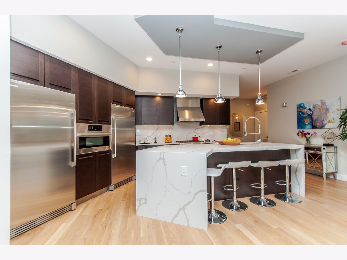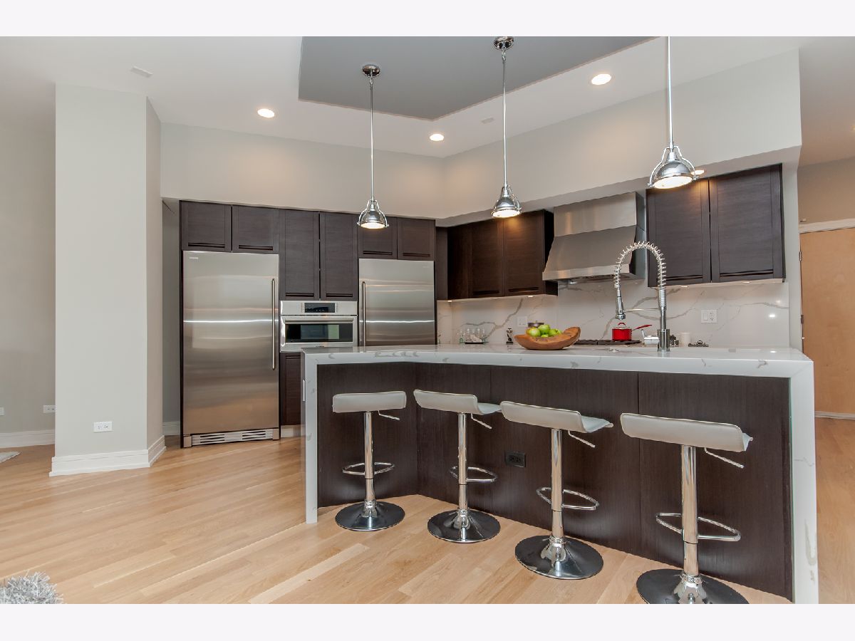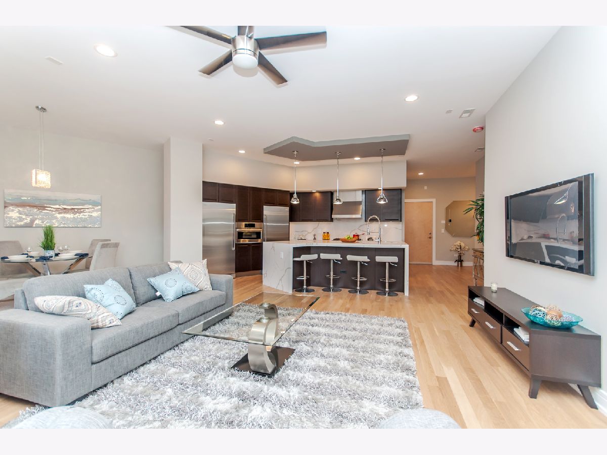 11- feet ceilings!!! Only available on the 2nd floor of this boutique River West "Caden James" 25 unit building extremely well located in the heart of River West, offering modern design, space, and an unbeatable location. Built in 2017 and proudly owned by the original owner, this expansive 3-bedroom, 2-bath developer model residence features 11-foot ceilings though out, oversized windows, and a thoughtfully designed layout that feels both open and inviting. This model unit showcases high-end finishes throughout, generous living and bedroom spaces, and an expansive private terrace with views of the city skyline. The kitchen is designed for both everyday living and entertaining, featuring a 5-burner gas stove, full-size refrigerator and full-size freezer, wine cooler and an oversized waterfall island with bar seating. Additional highlights include an in-unit washer & dryer, indoor heated garage parking, and extra storage conveniently located on the same floor as your unit. Step outside and enjoy immediate access to some of the city's best dining, including neighborhood favorites Piccolo Sogno and The Dawson, along with all that West Loop, Fulton Market, and River North have to offer. Commuting is effortless with quick access to major expressways and nearby CTA options. Situated within the Ogden International School District, this home delivers both lifestyle and location in one of Chicago's most dynamic neighborhoods