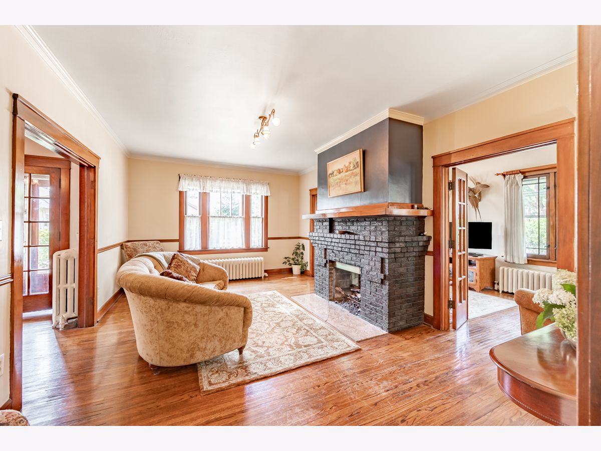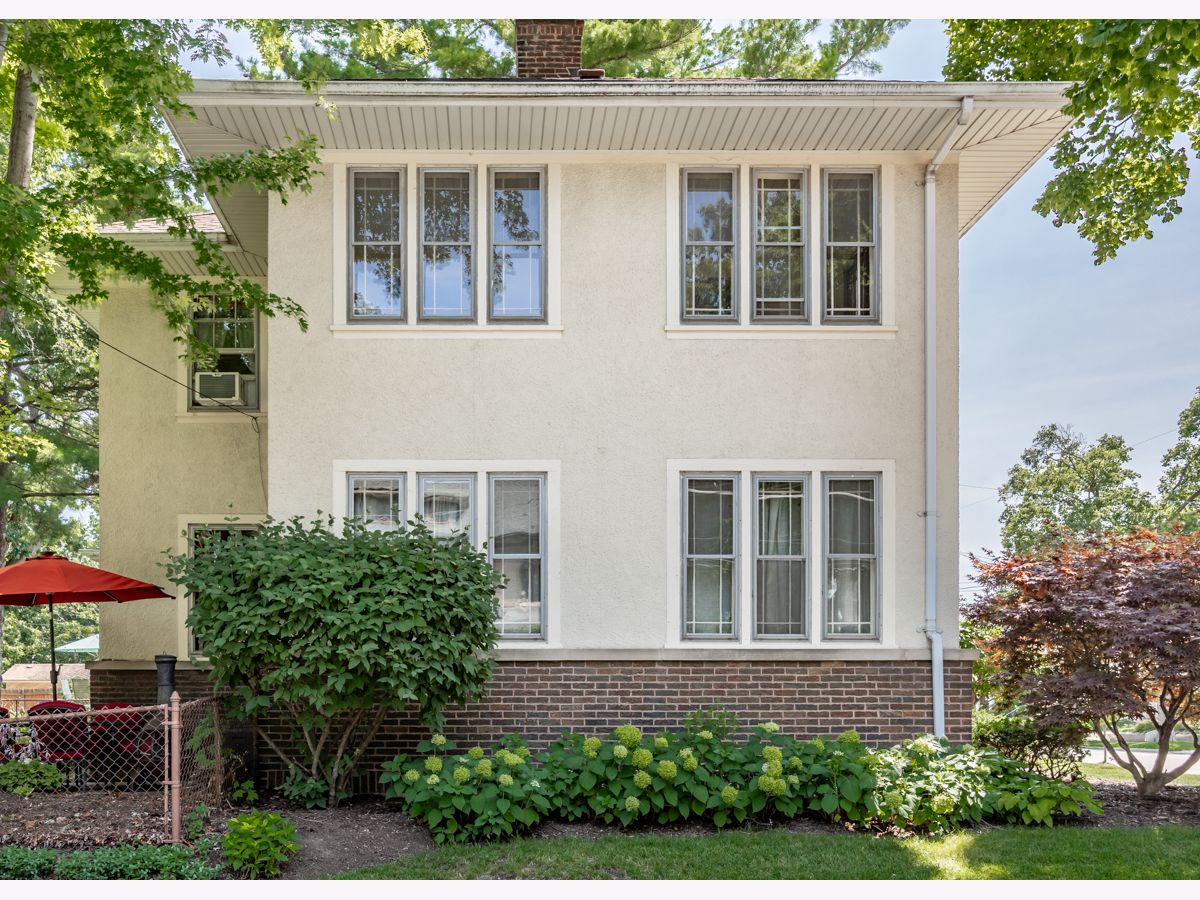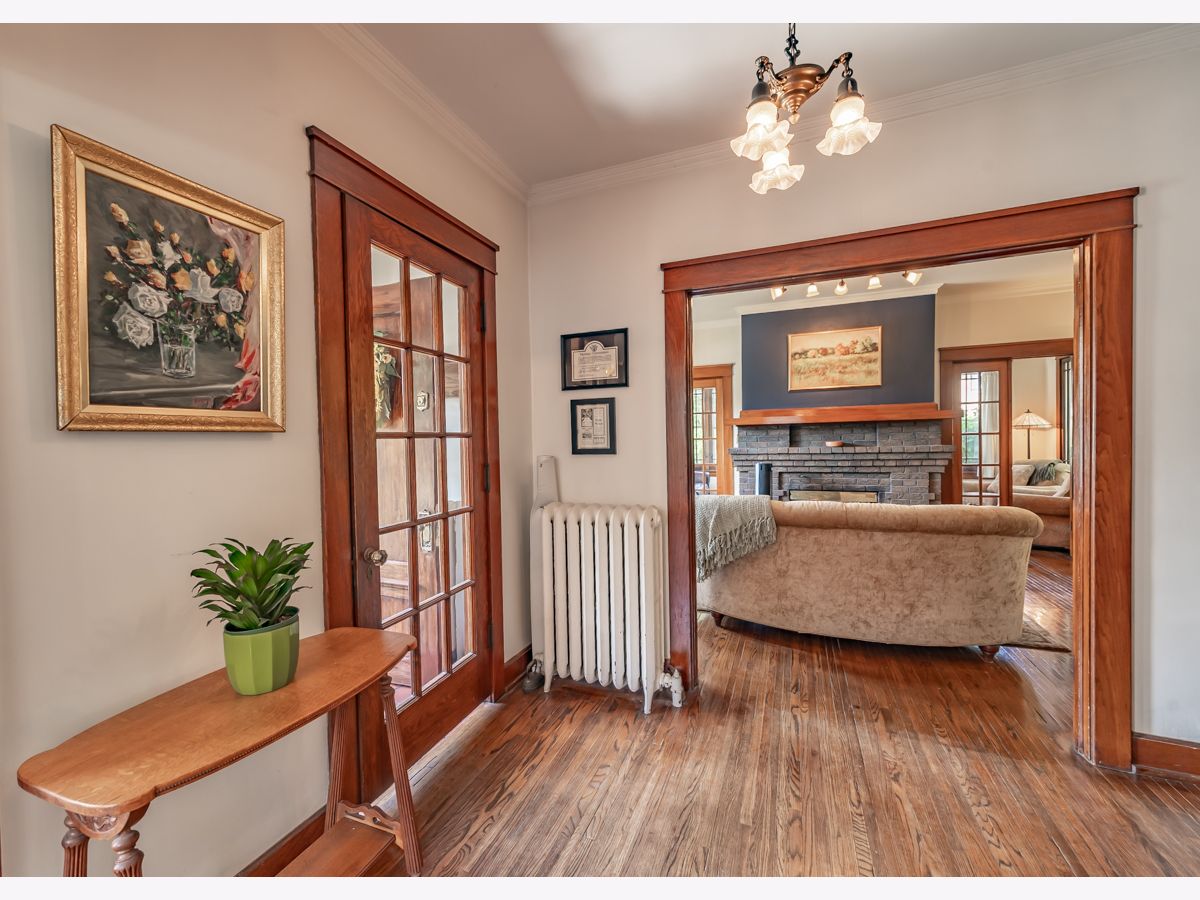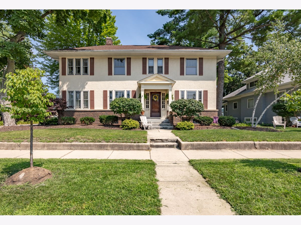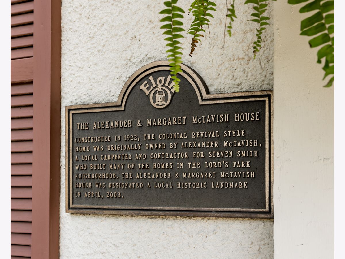 This beautifully maintained 1922 two-story Colonial Revival home boasts four bedrooms, 1.5 baths, two sunporches, and over 2,300 sq ft of inviting living space. This historic landmark gem is nestled in the quiet and pristine Lords Park neighborhood. Through the original oak front door you'll find Arts & Crafts elements that complement the Colonial Revival style of the house. There is an abundance of wood trim, French doors and windows, built-ins, and a staircase featuring a stunning large arched window at the landing. Beautiful hardwood floors are found throughout the home with oak on the main level and maple on the second level. A traditional see-through fireplace is located between the living room and family/sunroom. Two of the upstairs bedrooms connect to a cheery light-filled sun porch. The kitchen and bathrooms have been remodeled. The home has both a brick and Thero-coat stucco exterior, which minimizes maintenance and provides better insulation from the weather. A detached garage sits on a spacious, landscaped and fenced corner lot. The house is designated as a historic landmark in Elgin, and therefore is eligible for city grants for exterior improvements. Located a block from Lords Park, one can find a petting zoo, an historic pavilion, lagoons, waterpark, playgrounds, a museum, and majestic, mature oaks. Conveniently located for access to O'Hare airport and the city of Chicago via the tollway, Metra train, and bus line, all within a mile of the house. It's also within walking distance of downtown Elgin, with its restaurants, great recreation center, Hemmen's auditorium, the Fox River Trail, and award-winning library. This is your chance to own a piece of classic Lords Park Neighborhood charm. Do not miss this opportunity!