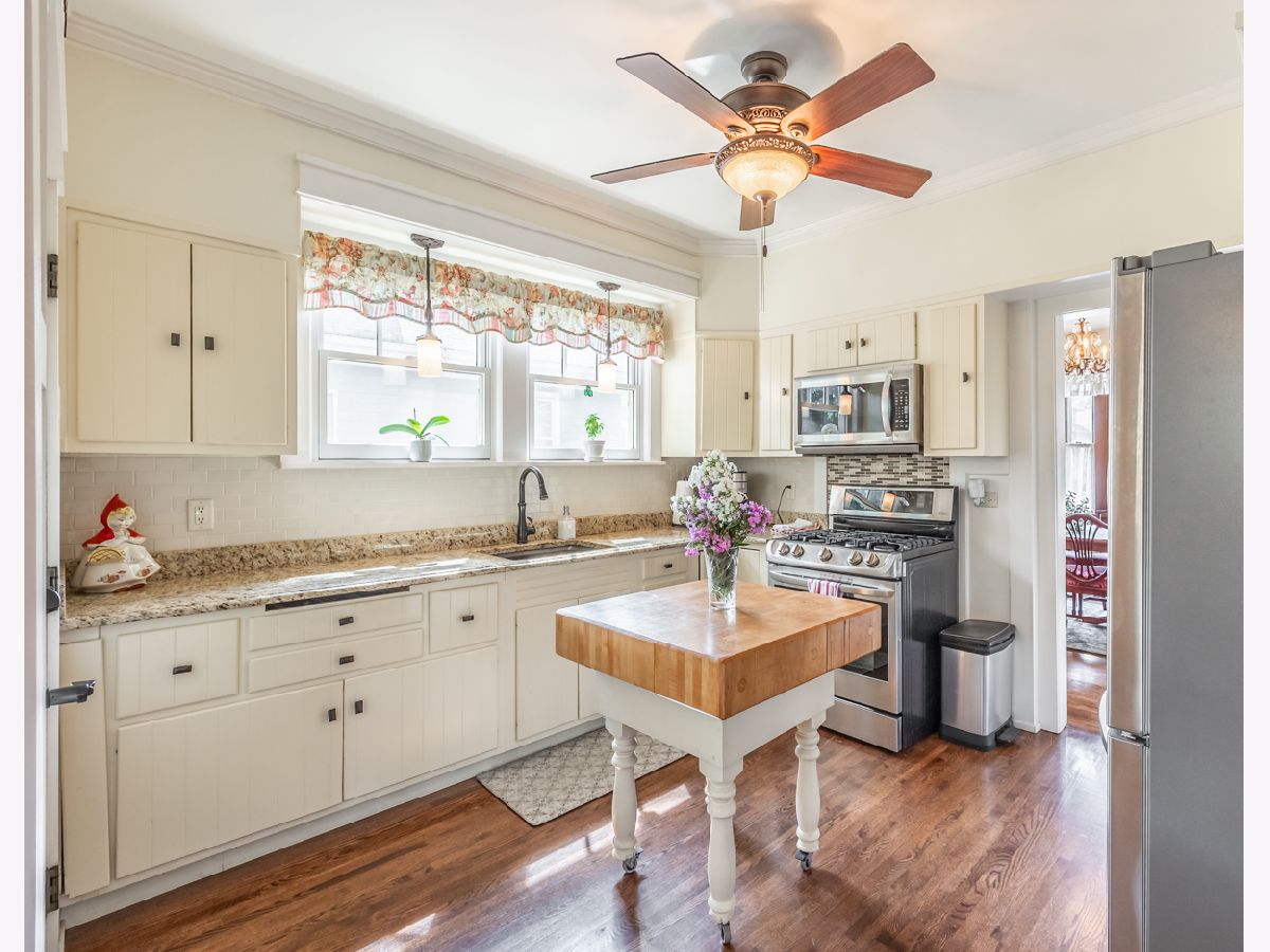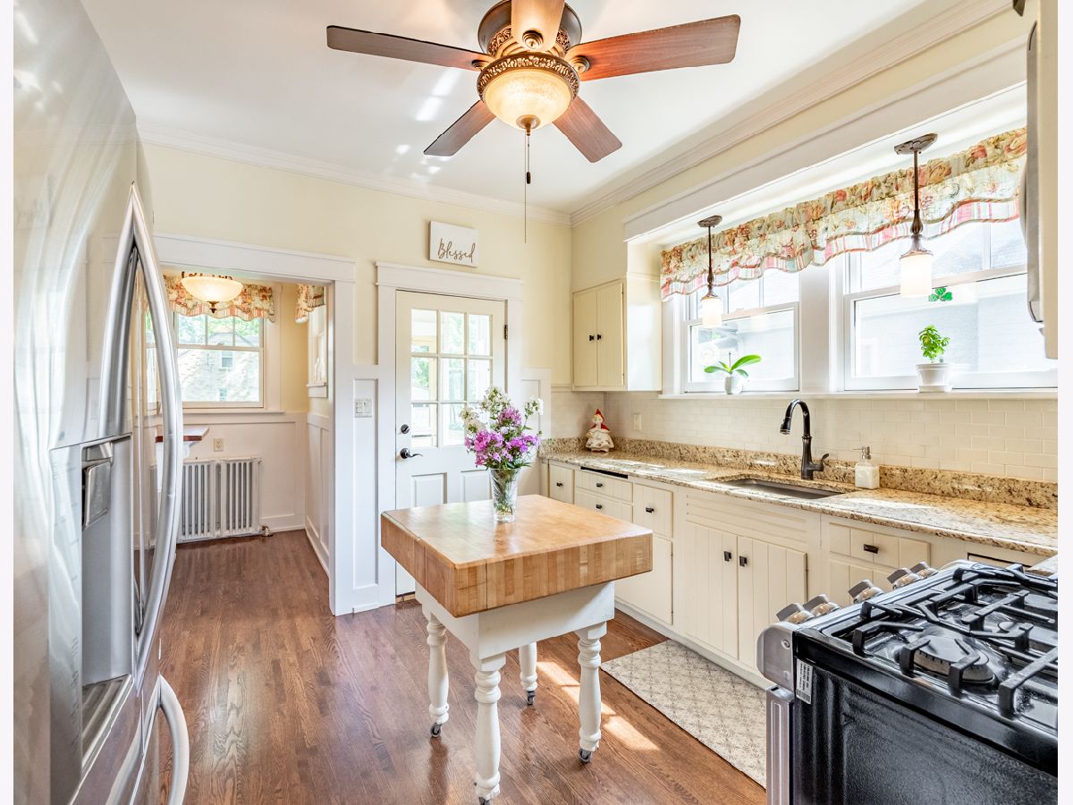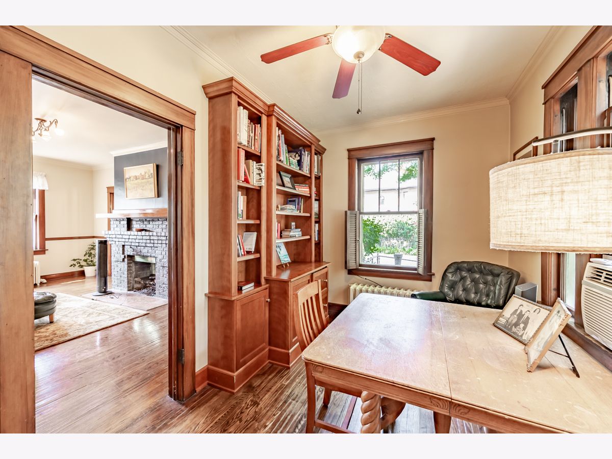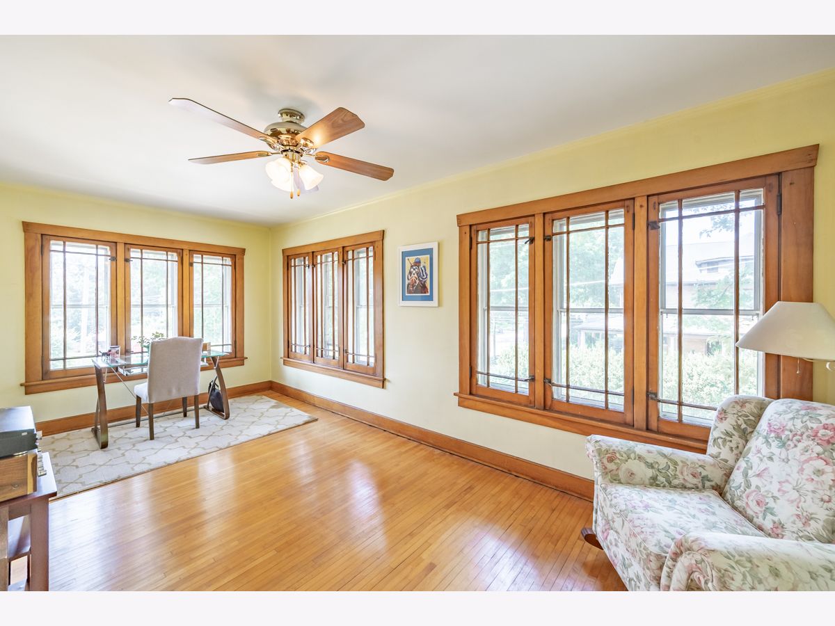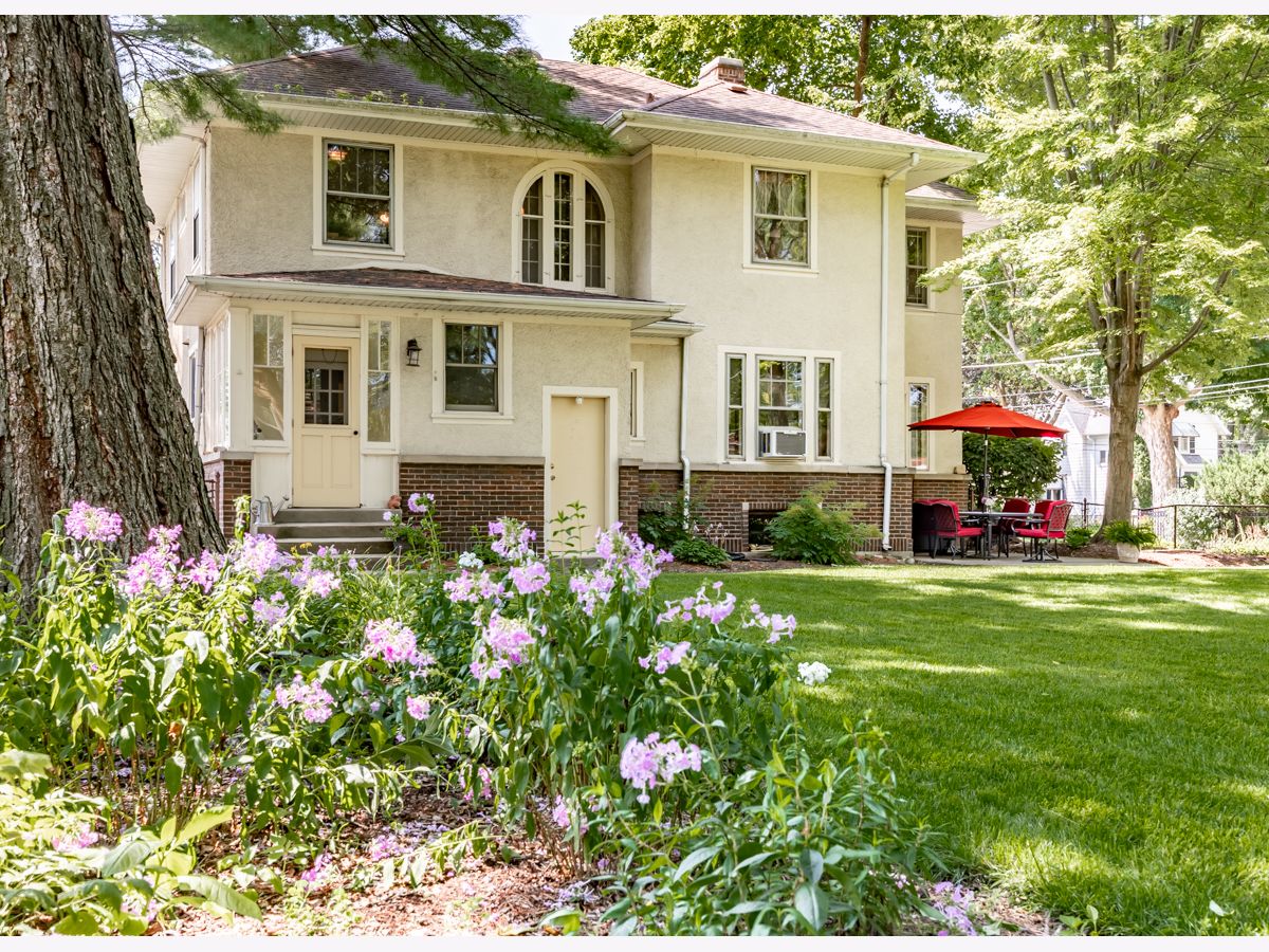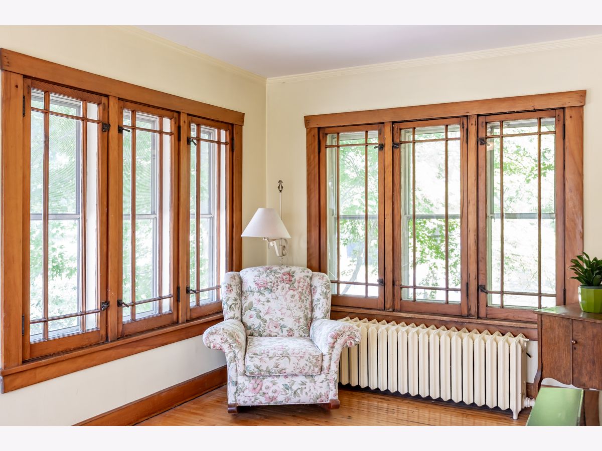 This beautifully maintained 1922 two-story Colonial Revival home boasts four bedrooms, 1.5 baths, two sunporches, and over 2,300 sq ft of inviting living space. This historic landmark gem is nestled in the quiet and pristine Lords Park neighborhood. Through the original oak front door you'll find Arts & Crafts elements that complement the Colonial Revival style of the house. There is an abundance of wood trim, French doors and windows, built-ins, and a staircase featuring a stunning large arched window at the landing. Beautiful hardwood floors are found throughout the home with oak on the main level and maple on the second level. A traditional see-through fireplace is located between the living room and family/sunroom. Two of the upstairs bedrooms connect to a cheery light-filled sun porch. The kitchen and bathrooms have been remodeled. The home has both a brick and Thero-coat stucco exterior, which minimizes maintenance and provides better insulation from the weather. A detached garage sits on a spacious, landscaped and fenced corner lot. The house is designated as a historic landmark in Elgin, and therefore is eligible for city grants for exterior improvements. Located a block from Lords Park, one can find a petting zoo, an historic pavilion, lagoons, waterpark, playgrounds, a museum, and majestic, mature oaks. Conveniently located for access to O'Hare airport and the city of Chicago via the tollway, Metra train, and bus line, all within a mile of the house. It's also within walking distance of downtown Elgin, with its restaurants, great recreation center, Hemmen's auditorium, the Fox River Trail, and award-winning library. This is your chance to own a piece of classic Lords Park Neighborhood charm. Do not miss this opportunity!