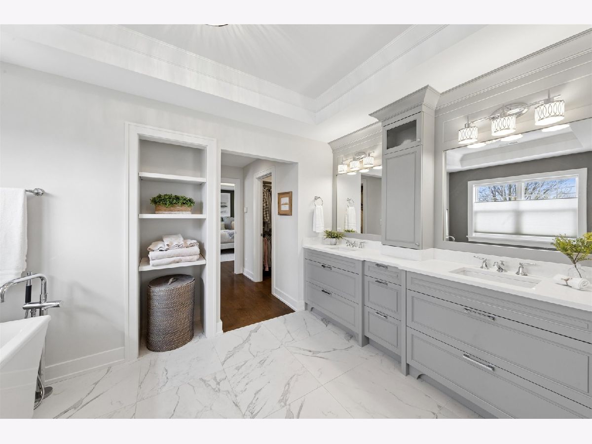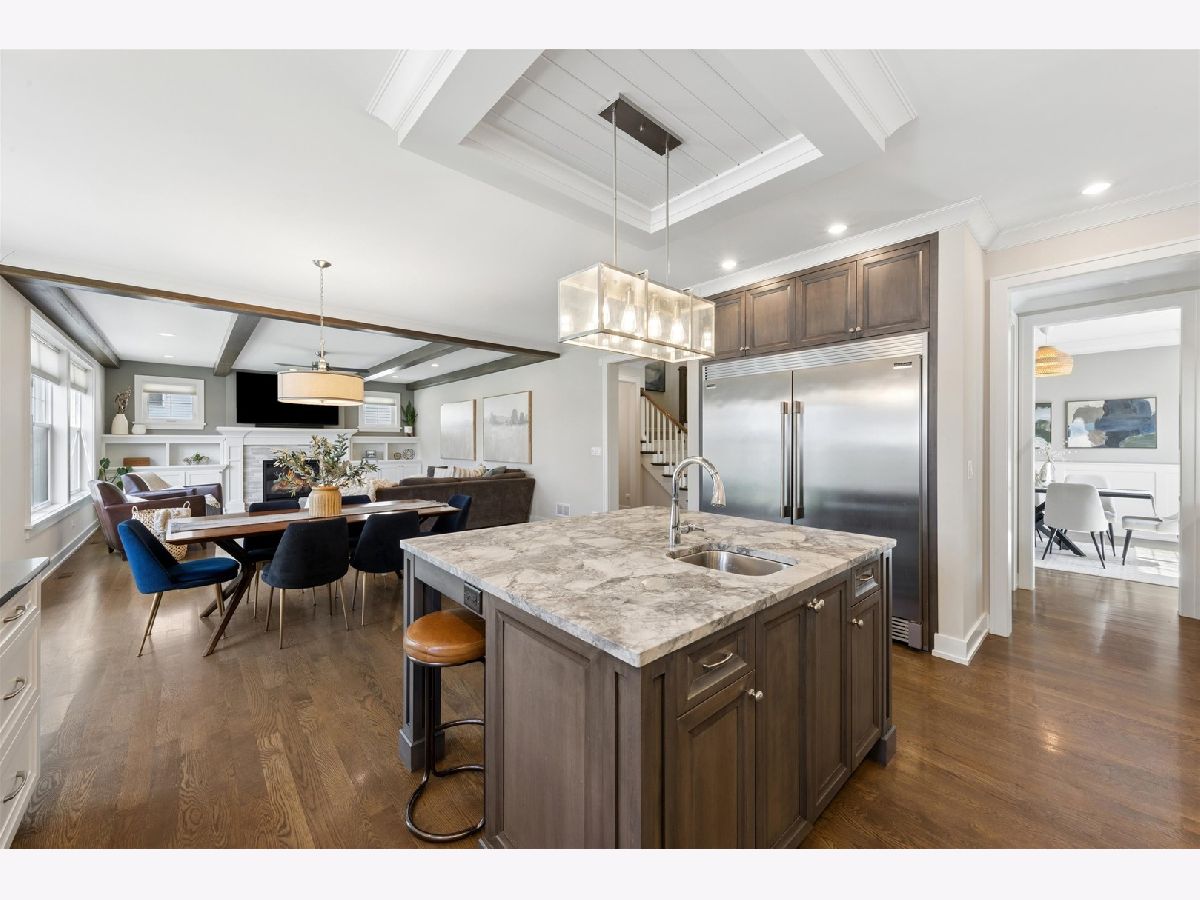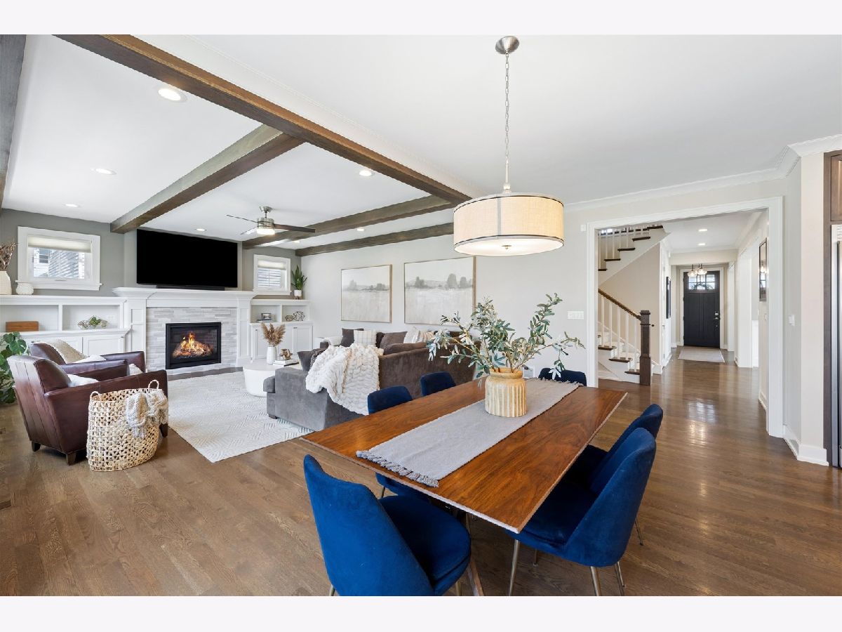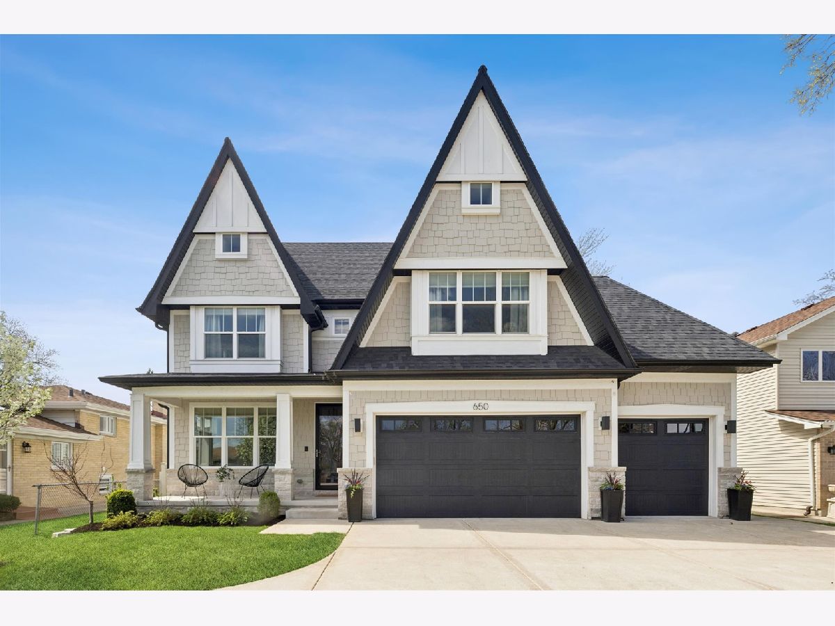 Custom built by one of Elmhurst's top builders, this exceptional home sits on a 60-foot-wide lot and offers a rare 3-car heated garage with epoxy floors, a circular driveway, and a covered front porch that creates unforgettable curb appeal. Inside, the home opens to a welcoming foyer and features a flexible front room perfect as a private office or cocktail lounge, along with a formal dining room designed for entertaining. The custom gourmet kitchen is the heart of the home, showcasing a large island, commercial-grade stainless steel appliances, bar area, and a walk-in pantry, all flowing into a spacious eating area. The family room is rich with character, featuring a fireplace, custom built-ins, and decorative beamed ceilings. The main level also includes a powder room and a beautifully designed custom mudroom. Upstairs, the second-floor landing is accented with decorative ceiling detail and leads to a luxurious primary suite with a vaulted ceiling, dual walk-in closets, and a spa-like bath with a soaking tub and oversized walk-in shower. Four additional spacious bedrooms, beautifully finished bathrooms, and a custom second-floor laundry room complete the upper level. The oversized backyard is built for enjoyment with a large patio, pergola, and plenty of space to play or relax. Additional highlights include custom window treatments throughout. All this in an outstanding location just a short walk to Berens Park with its playground, batting cages, mini golf, splash pad, sled hill, beach volleyball, and more