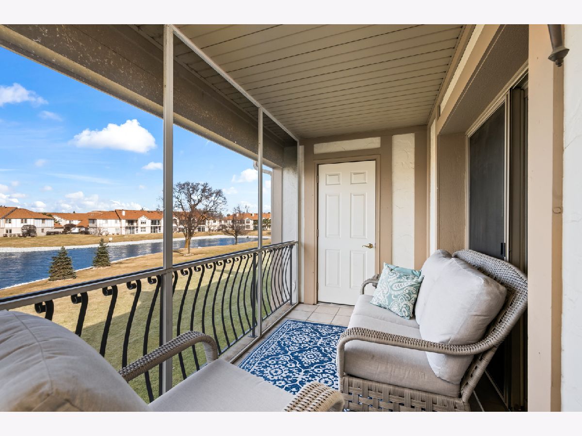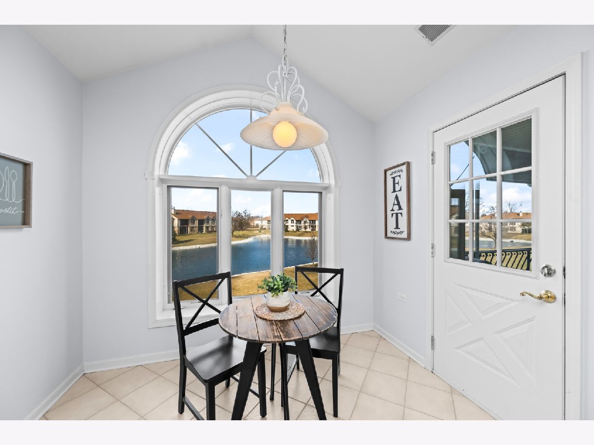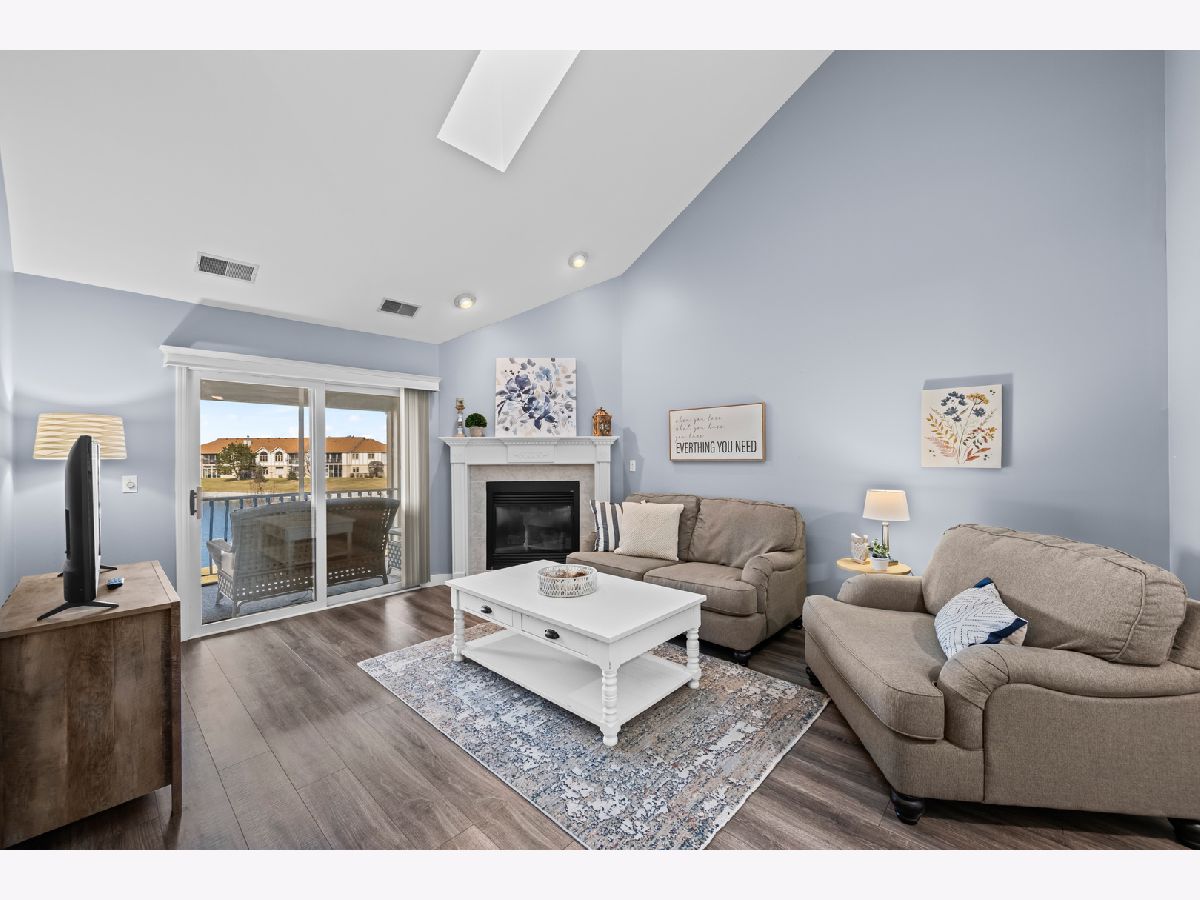 Light-filled and inviting condo in the highly sought-after The Pines subdivision of Tinley Park, a well-maintained 55+ adult community. (Note: The Pines allows up to one fifth of the units to be owned by individuals aged 18-54. This unit is available to an under 55 buyer!) Nestled in a quiet, close-knit community, this peaceful home offers serene pond views and a welcoming atmosphere throughout. Step inside to a spacious, open-concept living and dining area featuring vaulted ceilings and a gas fireplace-perfect for both everyday comfort and entertaining. The thoughtfully designed kitchen provides generous counter space and a tranquil eat-in area overlooking the pond, while the separate dining room easily accommodates dinner parties and gatherings. Enjoy outdoor relaxation on the large screened-in balcony, complete with an additional walk-in storage room. The sun-drenched primary suite is a true retreat, offering a large walk-in closet and a spa-like ensuite bath with abundant counter space, a separate shower, and a luxurious whirlpool tub. A spacious second bedroom with ample closet space and an additional full bath ensures comfort for guests. Recent updates include brand-new carpeting in both bedrooms and fresh paint throughout the kitchen, bedrooms, and bathrooms in soothing, neutral tones. Additional highlights include an attached one-car garage with extra storage, driveway space, and plentiful guest parking just steps away. This quiet, safe, and beautifully kept community offers the perfect blend of comfort, convenience, and low-maintenance living. Home is part of an Estate and being offered AS-IS.