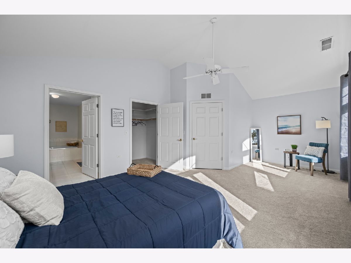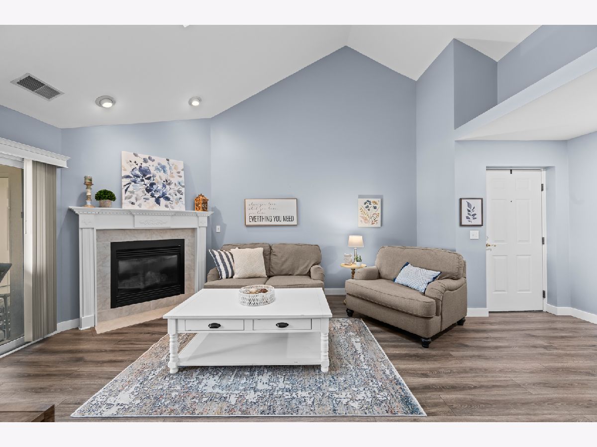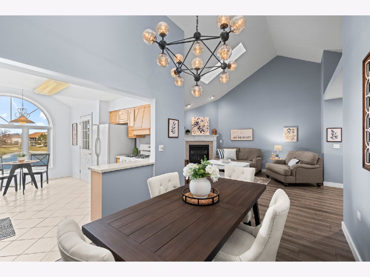 Light-filled and inviting condo in the highly sought-after The Pines subdivision of Tinley Park, a well-maintained 55+ adult community. (Note: The Pines allows up to one fifth of the units to be owned by individuals aged 18-54. This unit is available to an under 55 buyer!) Nestled in a quiet, close-knit community, this peaceful home offers serene pond views and a welcoming atmosphere throughout. Step inside to a spacious, open-concept living and dining area featuring vaulted ceilings and a gas fireplace-perfect for both everyday comfort and entertaining. The thoughtfully designed kitchen provides generous counter space and a tranquil eat-in area overlooking the pond, while the separate dining room easily accommodates dinner parties and gatherings. Enjoy outdoor relaxation on the large screened-in balcony, complete with an additional walk-in storage room. The sun-drenched primary suite is a true retreat, offering a large walk-in closet and a spa-like ensuite bath with abundant counter space, a separate shower, and a luxurious whirlpool tub. A spacious second bedroom with ample closet space and an additional full bath ensures comfort for guests. Recent updates include brand-new carpeting in both bedrooms and fresh paint throughout the kitchen, bedrooms, and bathrooms in soothing, neutral tones. Additional highlights include an attached one-car garage with extra storage, driveway space, and plentiful guest parking just steps away. This quiet, safe, and beautifully kept community offers the perfect blend of comfort, convenience, and low-maintenance living. Home is part of an Estate and being offered AS-IS.