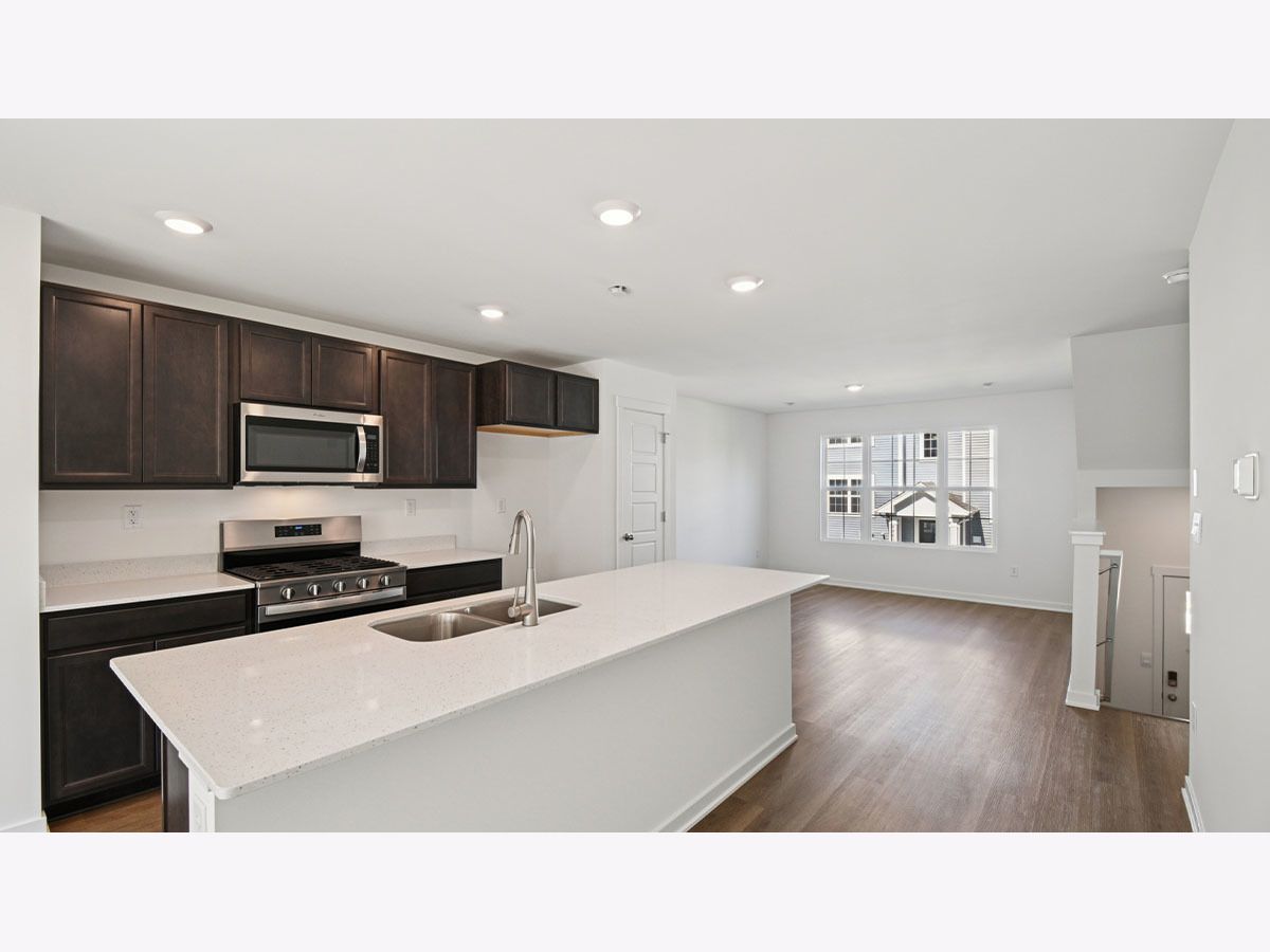 Welcome home to 6510 Linden Trail - Unit D, a beautiful end-unit Garfield townhome for sale in Wonder Lake's Stonewater community that will be ready for a spring move-in! This home offers the ease of a fully sodded and landscaped yard with year-round maintenance and winter snow removal. With 1,758 sq. ft. of living space, this home features 3 bedrooms, 2.5 baths, and a finished flex room. From the two-car garage, step into your versatile flex space. Just perfect for a home office, playroom, or cozy den. Upstairs, the main level invites you into an open-concept layout designed for gatherings and everyday living. The expansive kitchen flows into the dining and great room areas, and the private balcony is the perfect spot for morning coffee or evening relaxation. Designer cabinetry, soft-close drawers, quartz countertops, a spacious island, and pantry bring both style and function to the kitchen. Upstairs, retreat to your private primary suite complete with walk-in closet and spa-like bath featuring dual quartz vanities. Two additional bedrooms, a full bath, laundry, and linen closet round out the second floor. Luxury vinyl plank flooring throughout the kitchen, baths, and laundry adds durability and style. Energy-efficient features include an ERV furnace system and tankless water heater. Every Chicago home comes equipped with America's Smart Home Technology. Photos are of similar home and model home. Actual home built may vary.