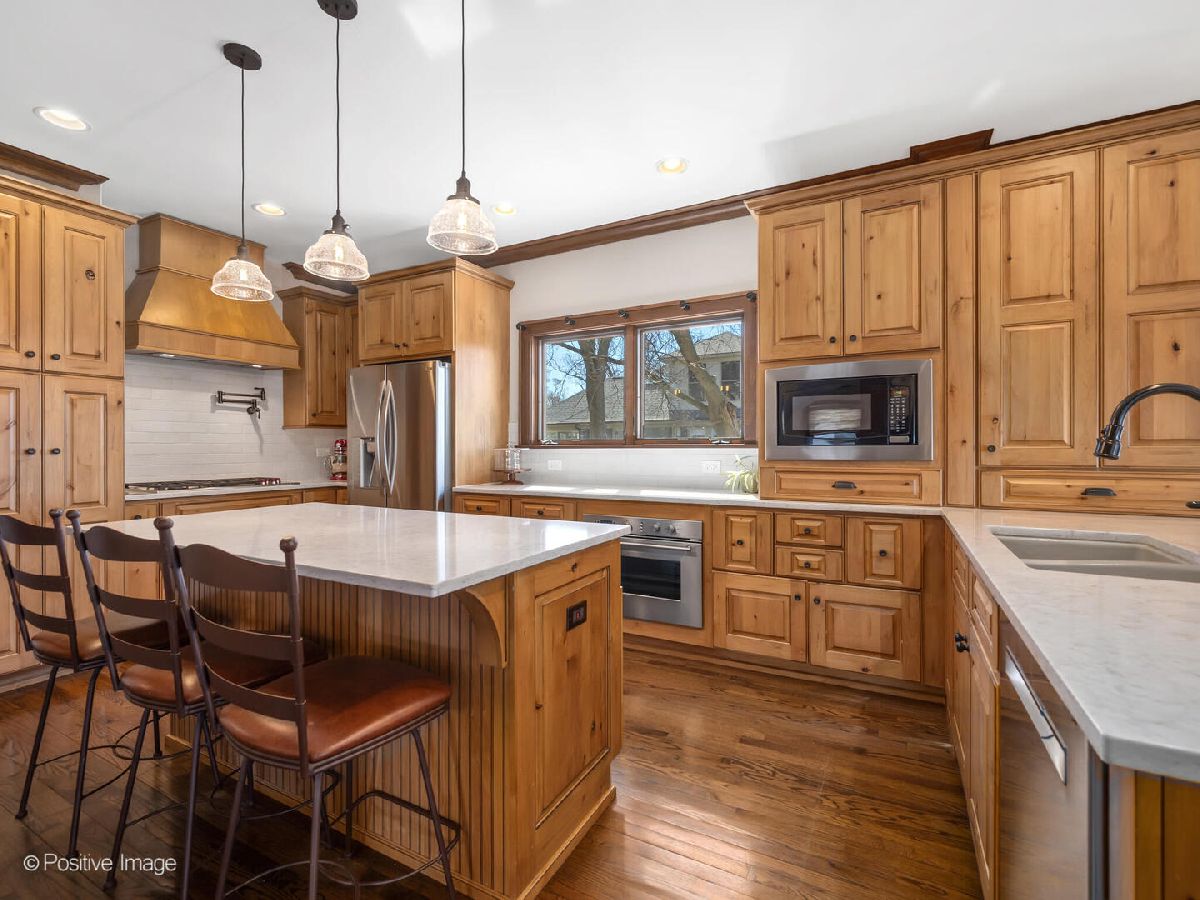 Welcome home! Stunning expanded bungalow in the sought-after Lincoln Elementary / Bryan Middle School District, thoughtfully blends classic charm with modern updates and a functional open floor plan. Situated on an impressive 64x140 lot, this spacious residence offers 6 bedrooms and 4 full bathrooms, including a main level office or 5th bedroom. The 4,063sf of sun-filled living spaces showcase warm wood details, hardwood floors, large windows, and a stone fireplace anchoring the family room. The updated kitchen is designed for both everyday living and entertaining, featuring gorgeous custom alder cabinetry, new quartz countertops, double ovens plus Wolf, Bosch and GE stainless steel appliances, pot filler, and expansive windows. A wet bar complete with a wine fridge and a beverage fridge, leathered granite countertops adds to the home's thoughtful design. Formal living and dining rooms provide additional space for gathering. Upstairs, four generously sized bedrooms include a massive primary suite with a large walk-in closet and a beautifully updated ensuite bath complete with double sinks, quartz countertops, jacuzzi tub, separate custom tiled shower, private water closet, and dedicated makeup area. Huge bedrooms with oversized walk-in closets, and a second-floor laundry room adds everyday convenience. The finished basement includes a rec room, 6th bedroom, and the gorgeous newly renovated full bath is ideal for guests. The backyard is perfect, and the custom brick paver patio creates a perfect setting for outdoor entertaining. Long list of additional highlights includes dual zone heating and cooling, sprinkler system, generator, abundant natural light, and a prime location within highly desirable Elmhurst 205 school district.