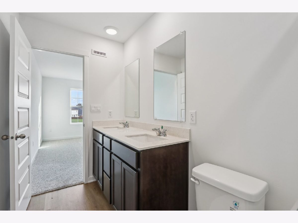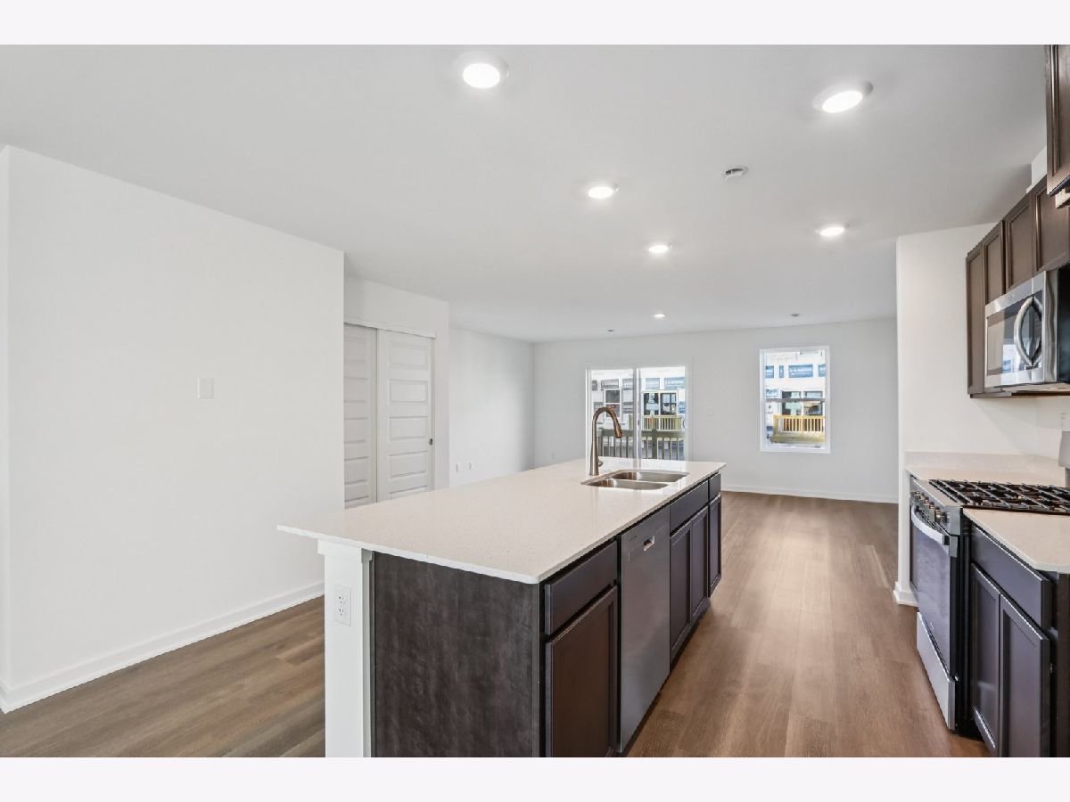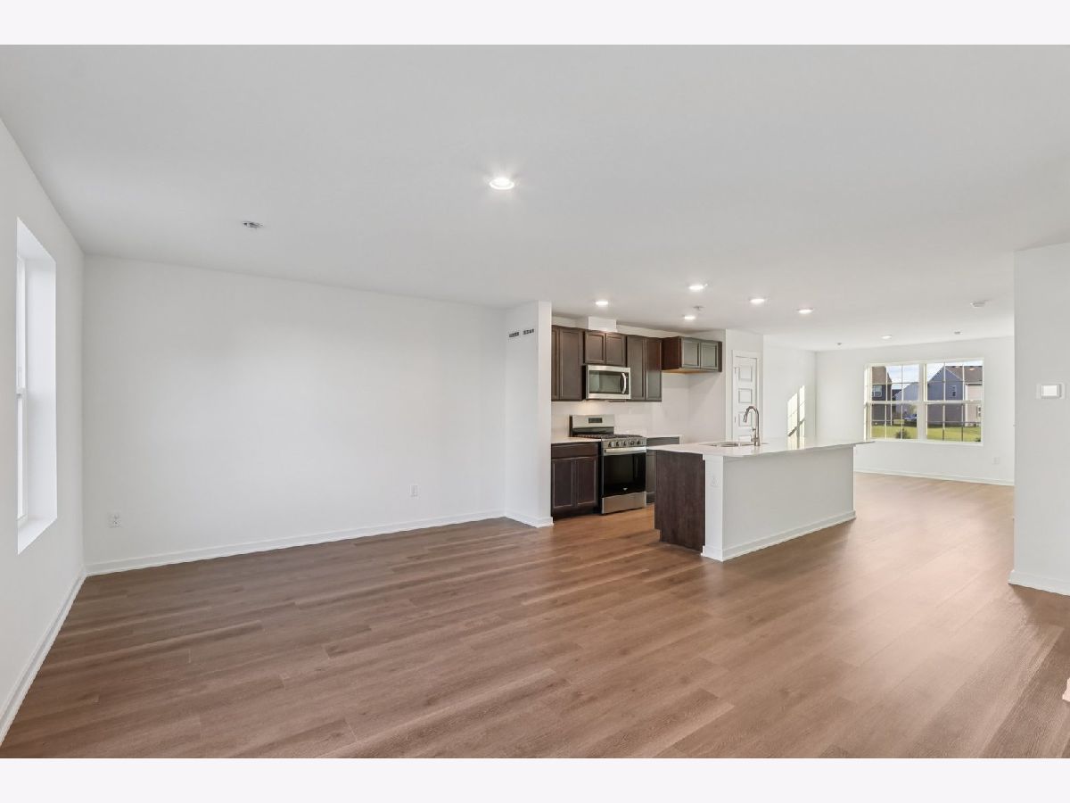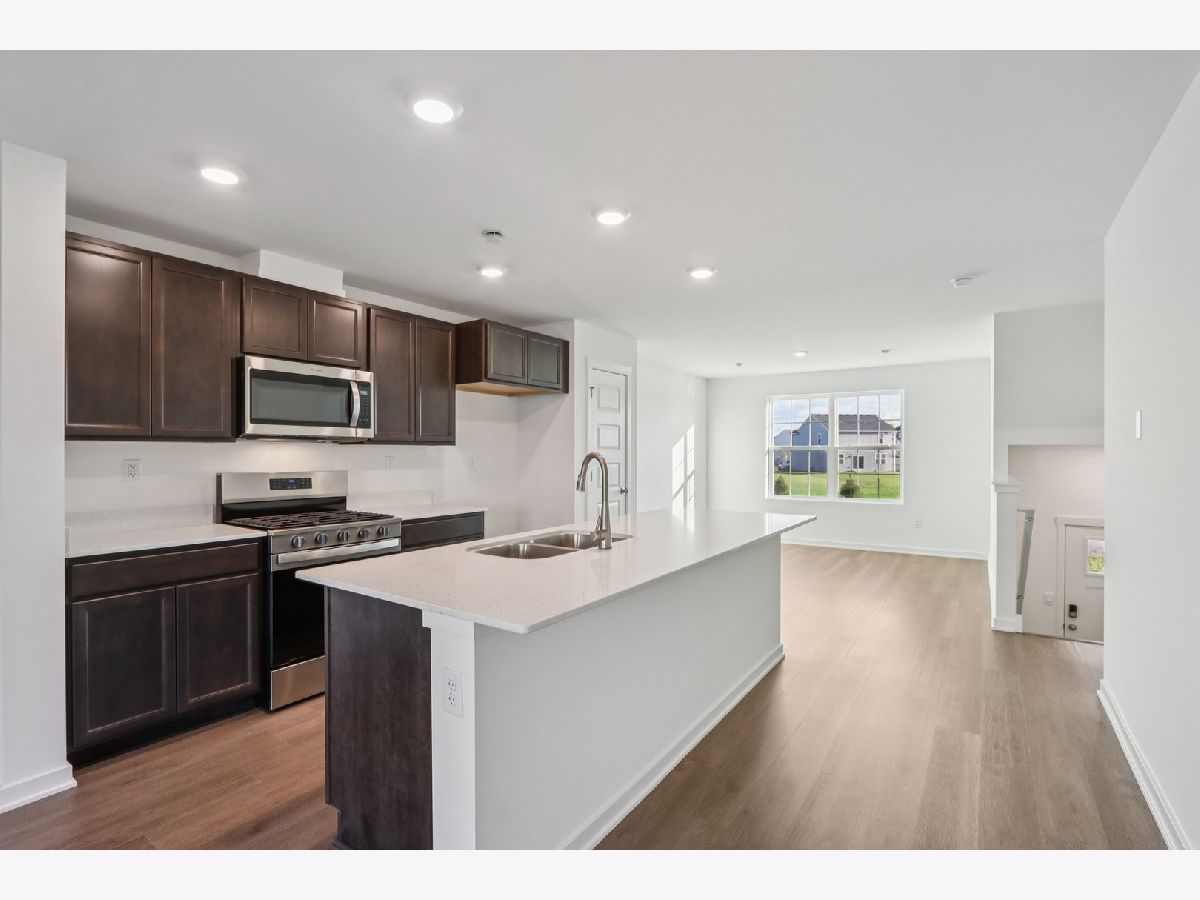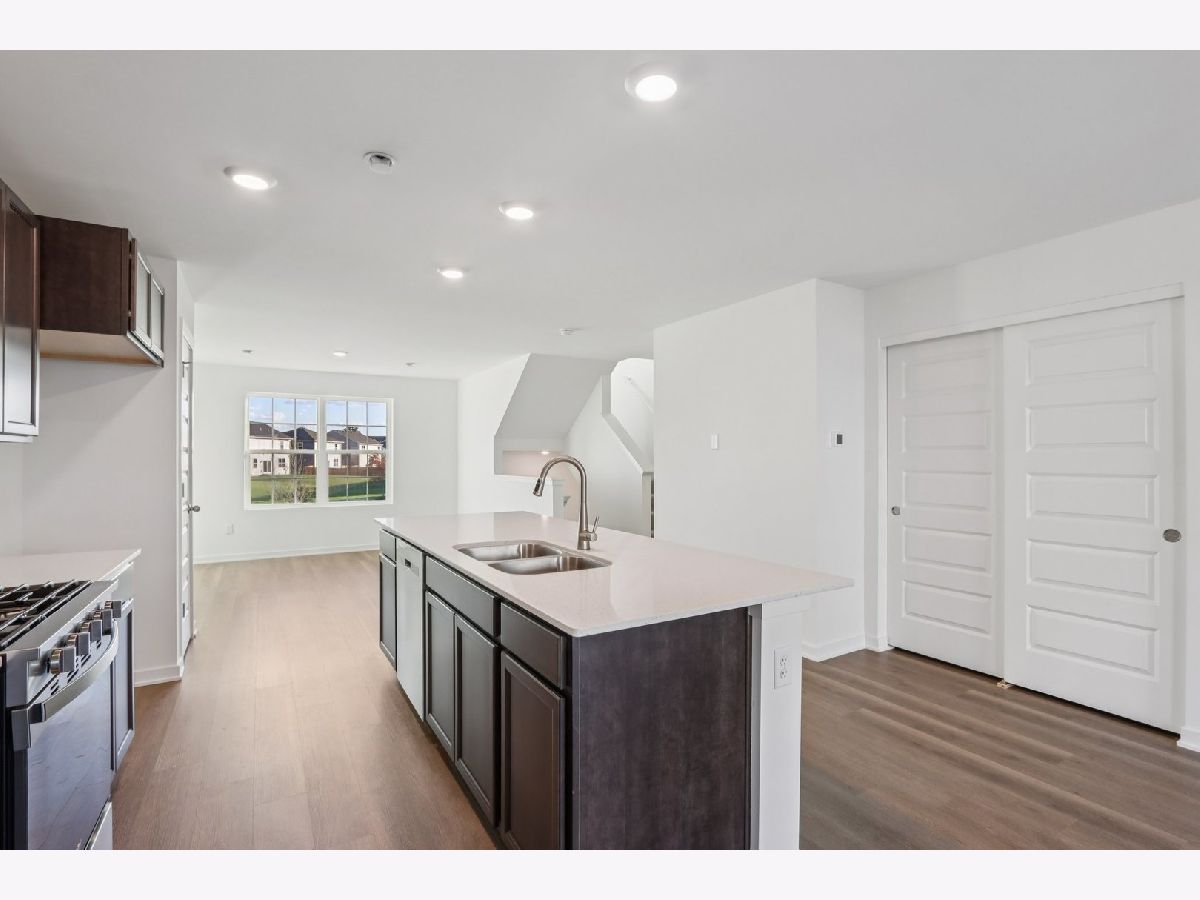 Welcome home to 6520 Linden Trail - Unit E, a beautiful end-unit Garfield townhome in Wonder Lake's Stonewater community. Home will be ready just in time for the holidays, this home offers the ease of a fully sodded and landscaped yard with year-round maintenance and winter snow removal. With 1,758 sq. ft. of living space, this home features 3 bedrooms, 2.5 baths, and a finished flex room. From the two-car garage, step into your versatile flex space. Just perfect for a home office, playroom, or cozy den. Upstairs, the main level invites you into an open-concept layout designed for gatherings and everyday living. The expansive kitchen flows into the dining and great room areas, and the private balcony is the perfect spot for morning coffee or evening relaxation. Designer cabinetry, soft-close drawers, quartz countertops, a spacious island, and pantry bring both style and function to the kitchen. Upstairs, retreat to your private primary suite complete with walk-in closet and spa-like bath featuring dual quartz vanities. Two additional bedrooms, a full bath, laundry, and linen closet round out the second floor. Luxury vinyl plank flooring throughout the kitchen, baths, and laundry adds durability and style. Energy-efficient features include an ERV furnace system and tankless water heater. Our Chicago homes come equipped with America's Smart Home Technology video doorbell, smart thermostat, door lock, light switches, and more making daily living convenient and connected.