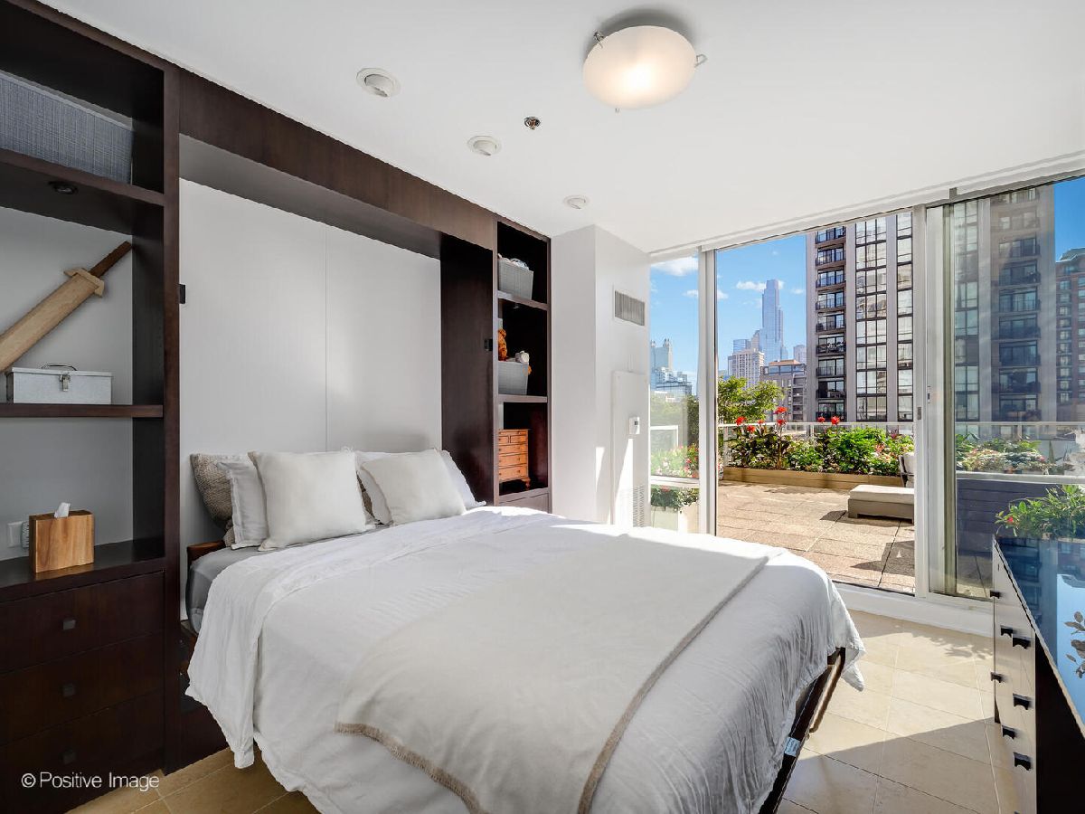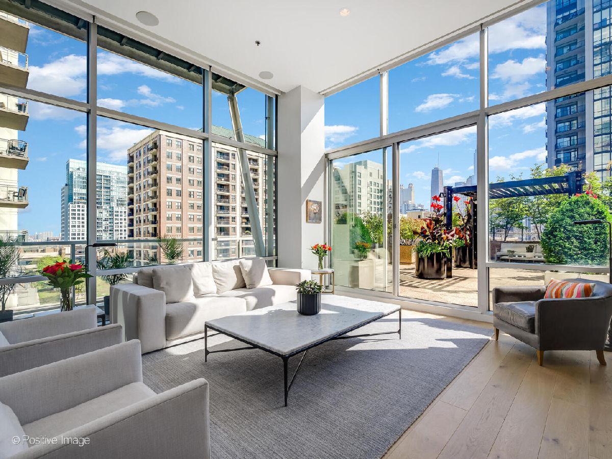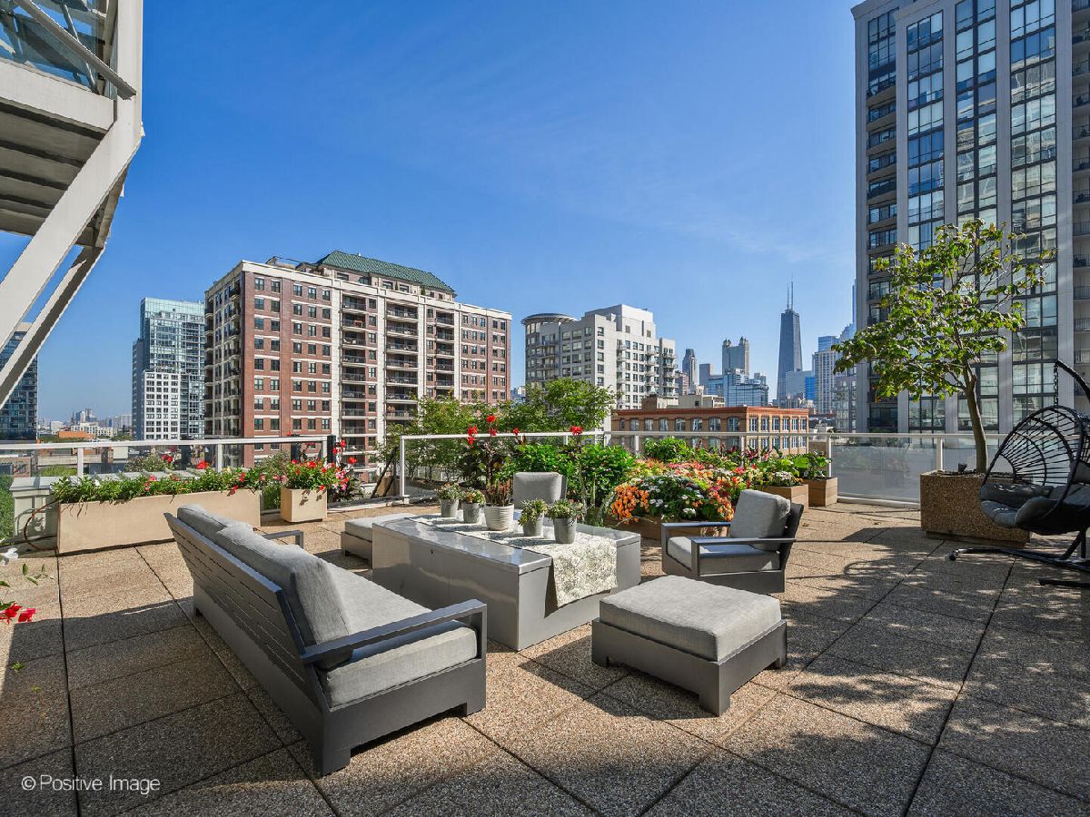 Stunning and sleek 3 bedroom, 3 full bath residence offers an extraordinary indoor-outdoor lifestyle, highlighted by a spectacular private 2,600-square-foot cascading terrace-a true urban oasis rarely found in the city. Take in this one-of-a-kind outdoor sanctuary under the stars with incredible views of the city features a mature, thoughtfully designed garden complete with pergola, custom planters, space for trees, flowers, vegetables, and herbs plus huge outdoor living area with firepit. Inside, this home showcases a clean-lined modern aesthetic with dramatic 13-foot ceilings, floor-to-ceiling windows, motorized shades and seamless garden views by day with twinkling, iconic Chicago skyline vistas by night. Exceptional finishes throughout include wide-plank luxury flooring, elegant stone tile baths, and a spacious great room and guest suite designed for both comfort and style. Substantial custom upgrades elevate the home, including modern millwork and built-ins, refined wall paneling, a concealed bar and pantry, custom guest suite cabinetry, office desk, bookshelves, and a Murphy bed-all delivering a sophisticated, contemporary aesthetic with exceptional functionality. The clean lined open kitchen is outfitted with bulthaup custom cabinetry, granite countertops, Sub-Zero refrigerator, Miele dishwasher, and dual wine and beverage refrigerators, thoughtfully positioned within the pantry and bar area for effortless entertaining. Unit includes 2 Car garage parking spaces along with an additional storage cage. Building has 24 hour doorstaff, fitness room, bike storage and receiving room. Ideally located within the highly regarded Ogden Elementary School boundaries, the building is steps from two dog parks, East Bank Club, and major expressways -this is city living at its finest! A truly remarkable residence that blends architectural sophistication, luxurious finishes, and unparalleled outdoor living-a rare urban sanctuary unlike any other.