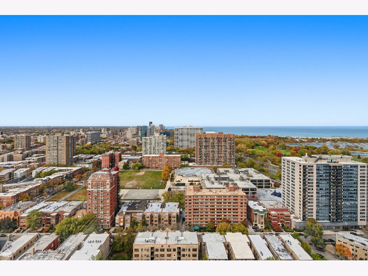 Bright & spacious true, corner 1 bedroom at popular Park Place Tower in East Lakeview, with garage parking and expansive views! Everyday is like resort living in this full amenity, elevator building, which features outdoor pool, sundeck, grills, basketball court, theater & party room, plus 24 hour door staff, and dry cleaners! This north west corner unit features expansive views of the city - from it's daily bustle to its evening tinkle with all the lights, plus views of the lake/harbor as well! The unit enjoys full bank of windows, for tons of light. Updated kitchen with cherry cabinets, granite counters & stainless steel appliances, which opens to your dining area, and large living room that can fit the largest of sectionals. This condo is a great place to call home, and also perfect as a in-town apartment or rental, as the building doesn't have a rental cap. 1 deeded parking space included in the price. Established, pet friendly building with strong reserves, where assessments include heat, a/c & basic cable. A+ location with tennis courts, golf course, bike/running path & lake shore drive 1 block away, plus this location's a breeze for commuter's with Express Bus. Very convenient to Whole Foods, Wrigley Field, Red Line, Target, dining/shopping & nightlife. Taxes do not include homeowners exemption. Live your best life and come home!