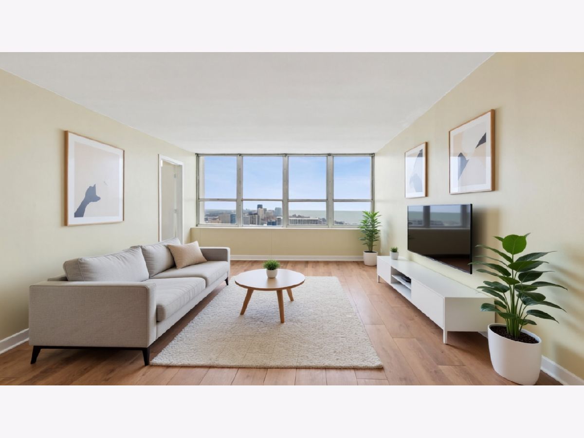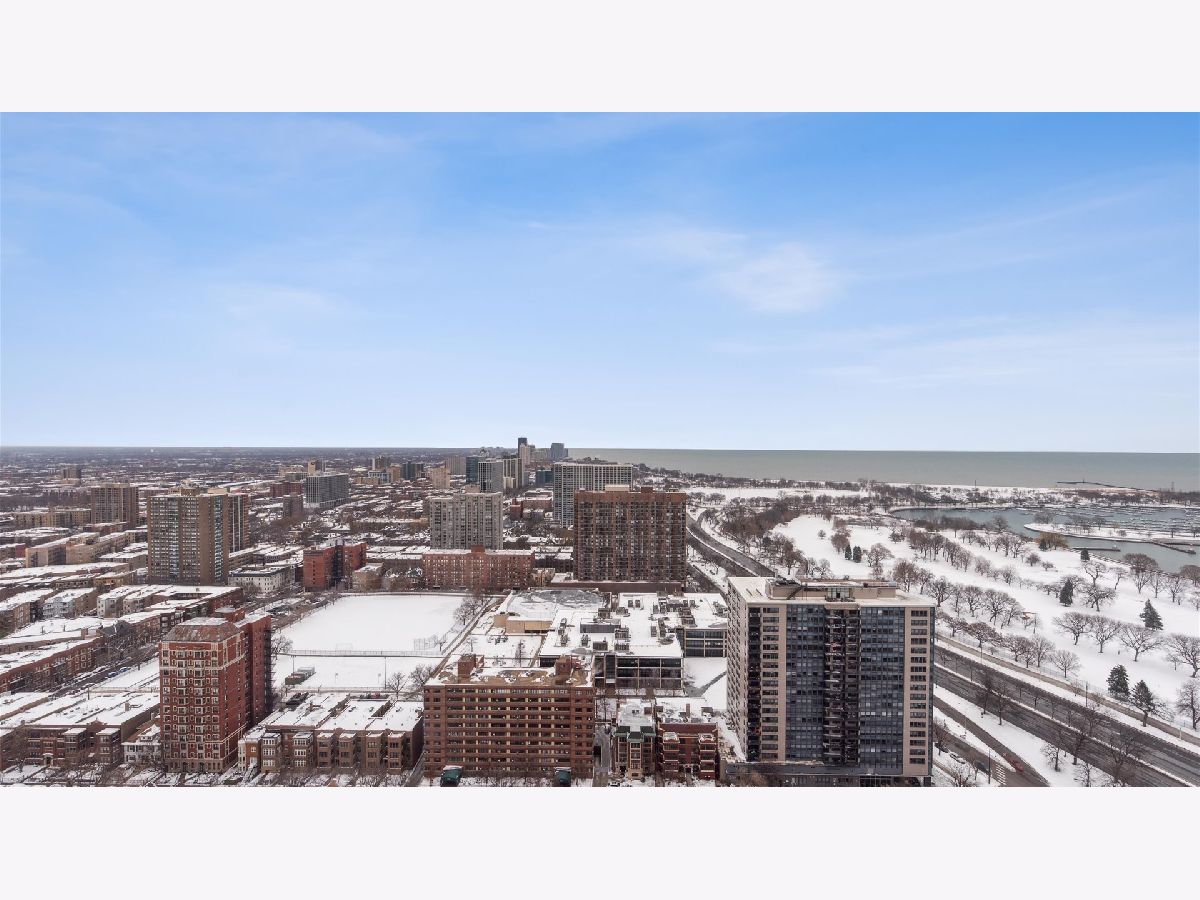 Welcome to Unit 3704 at 655 W Irving Park Rd-a rare Lakeview high-rise condo perched on the 37th floor with truly panoramic views of Lake Michigan and Montrose Harbor. This stylish two-bedroom, one-bath residence boasts approximately 840 sq ft of living space, where expansive windows flood each room with natural light and offer sweeping vistas that stretch over the water and city skyline. Located in the iconic Park Place Tower, a 56-story condominium with over 900 units, this full-amenity building provides unmatched convenience and lifestyle features, including a 24-hour doorman, fitness center, outdoor pool with sun deck and cabanas, media and theater rooms, party lounge, business center, dog run, grocery store, dry cleaner, and on-site bike trail access. Inside, timeless architectural details such as new modern floors and generous closet space provide a warm, sophisticated atmosphere. The open living area and well-proportioned kitchen bridging into living/dining space are perfect for both relaxation and entertaining. The large master bedroom accommodates a king bed with room to spare, and second bedroom adds flexible usable space. Convenience is key: you're just two blocks from the Sheridan Red Line station, with express buses to the Loop at your doorstep. Within walking distance is everything from the lakefront to Wrigley Field, Whole Foods, Jewel, and a vibrant array of restaurants and nightlife in Lakeview and Wrigleyville. Utilities like heat, A/C, basic cable, and internet are included in the HOA dues, as are access to the building's amenities. Valet garage parking is available for an additional expense. There is garage parking available for purchase if you would like to have your own parking spot. With its unbeatable combination of views, amenities, transit access, and prime corner location, this unit represents a rare opportunity at Park Place Tower. If you're seeking elevated city living with skyline and lake vistas, seamless access to transit, and urban conveniences at your doorstep, Unit 3704 blends all these elements into an exceptional Lakeview offering. Owners are allowed to rent their condos. SELLER IS PAYING THE SPECIAL ASSESSMENT