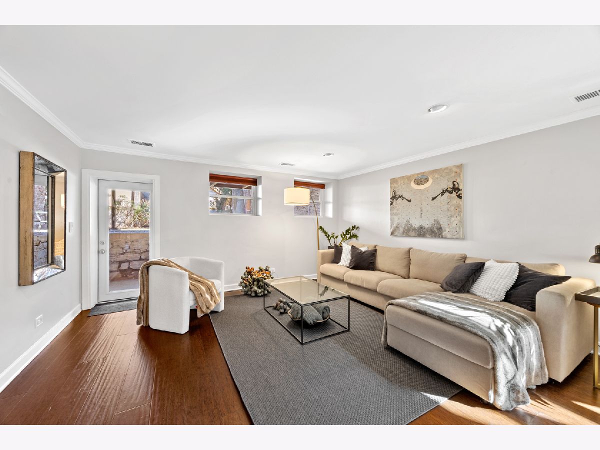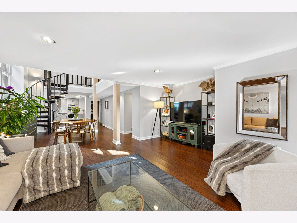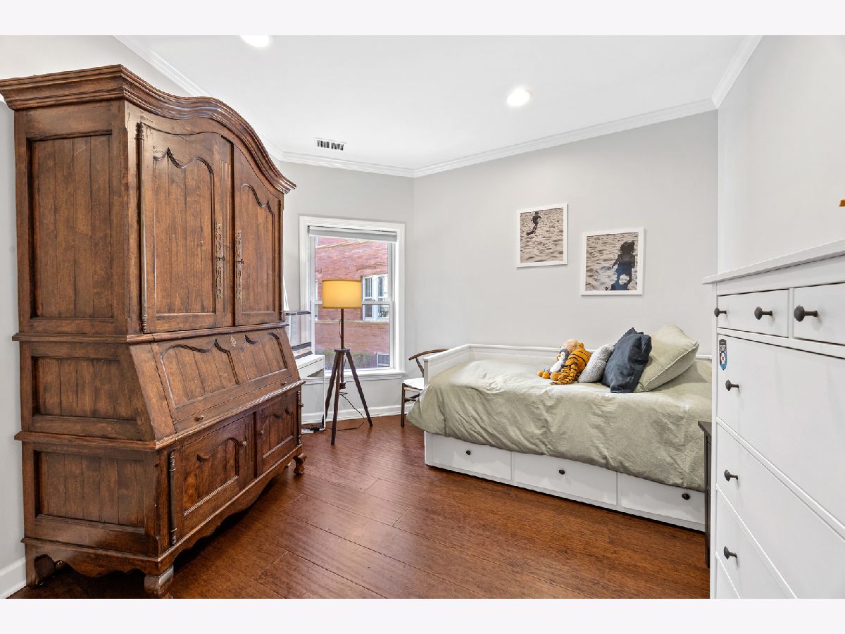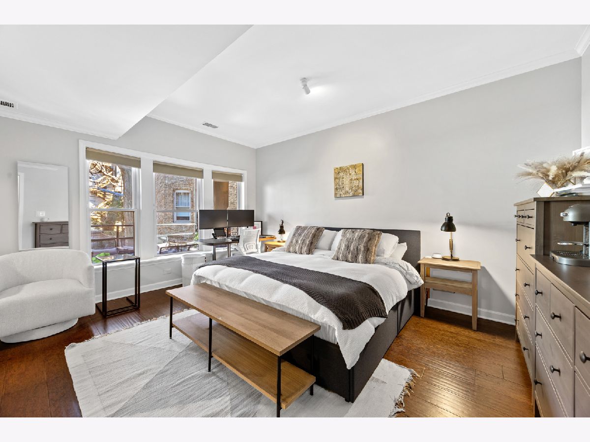 Sunny and unique duplex down in East Lakeview! With a flipped floor plan, this home has all three spacious and bright bedrooms on the first floor with the kitchen and living areas located below. The sellers removed the previously space inhibiting staircase and replaced with a practical (and climbable) spiral staircase to maximize both living space and light. They added crown molding throughout, replaced the railings and encapsulated the support beams with classic natural wood. The large kitchen boasts a double oven, pantry, brand new wine fridge, newer refrigerator, and excellent cabinet storage and counter space. In addition to the sellers adding a window to the back door, a newer east facing Anderson picture window lets a ton of light into the lower level. With a dining and living room, you will have plenty of space to spread out. Washer/dryer is also newer. All three bathrooms have been updated with new vanities, hardware, and light fixtures. The downstairs powder room is especially roomy and convenient. This home has a generous private deck off the primary bedroom which opens onto the enormous, rare to the city, communal backyard! Storage cage and bike room included. Located just a block from the cherished Nettelhorst school and steps from fantastic restaurants, public transportation, the lakefront, and retail. This is a stellar home in a stellar East Lakeview location. Zoned street parking or rental options nearby. NO DOG building.