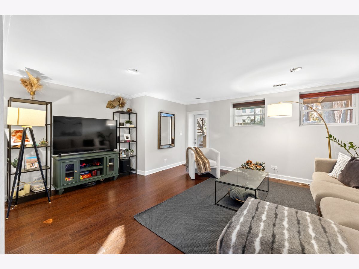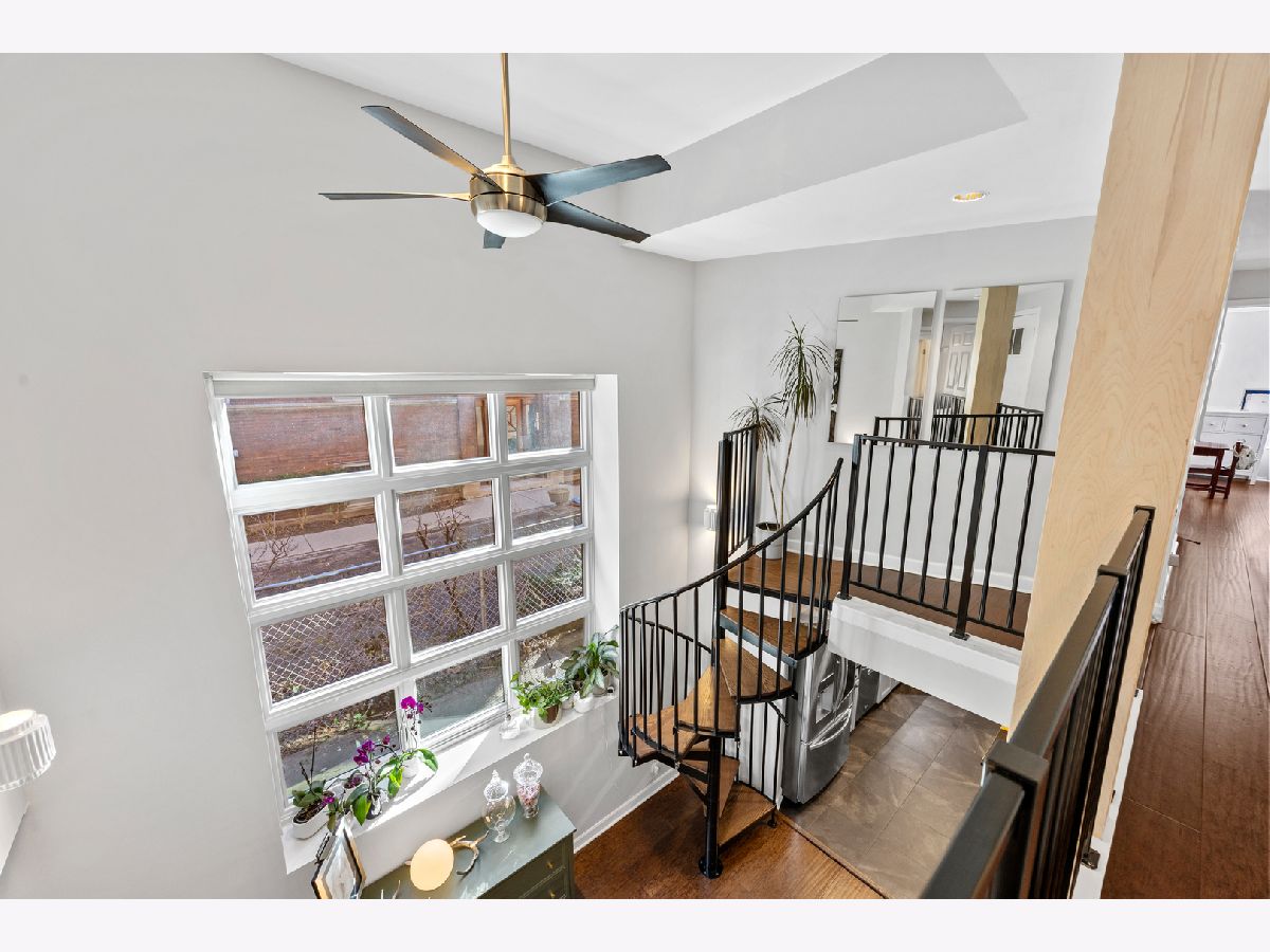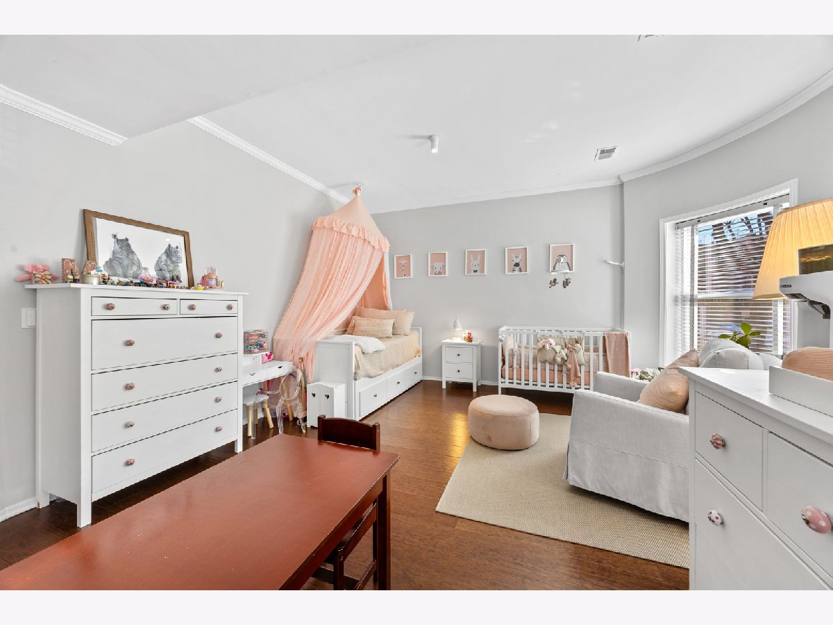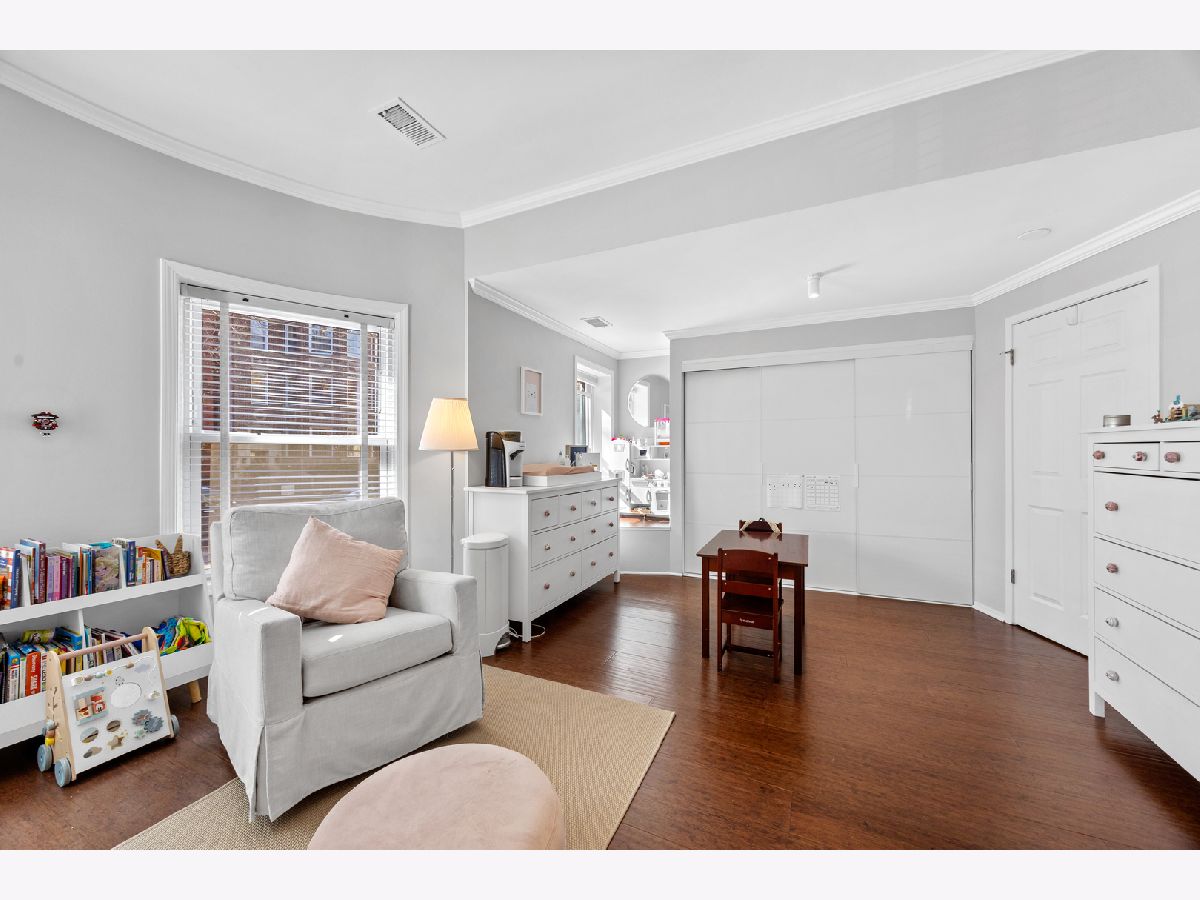 Sunny and unique duplex down in East Lakeview! With a flipped floor plan, this home has all three spacious and bright bedrooms on the first floor with the kitchen and living areas located below. The sellers removed the previously space inhibiting staircase and replaced with a practical (and climbable) spiral staircase to maximize both living space and light. They added crown molding throughout, replaced the railings and encapsulated the support beams with classic natural wood. The large kitchen boasts a double oven, pantry, brand new wine fridge, newer refrigerator, and excellent cabinet storage and counter space. In addition to the sellers adding a window to the back door, a newer east facing Anderson picture window lets a ton of light into the lower level. With a dining and living room, you will have plenty of space to spread out. Washer/dryer is also newer. All three bathrooms have been updated with new vanities, hardware, and light fixtures. The downstairs powder room is especially roomy and convenient. This home has a generous private deck off the primary bedroom which opens onto the enormous, rare to the city, communal backyard! Storage cage and bike room included. Located just a block from the cherished Nettelhorst school and steps from fantastic restaurants, public transportation, the lakefront, and retail. This is a stellar home in a stellar East Lakeview location. Zoned street parking or rental options nearby. NO DOG building.