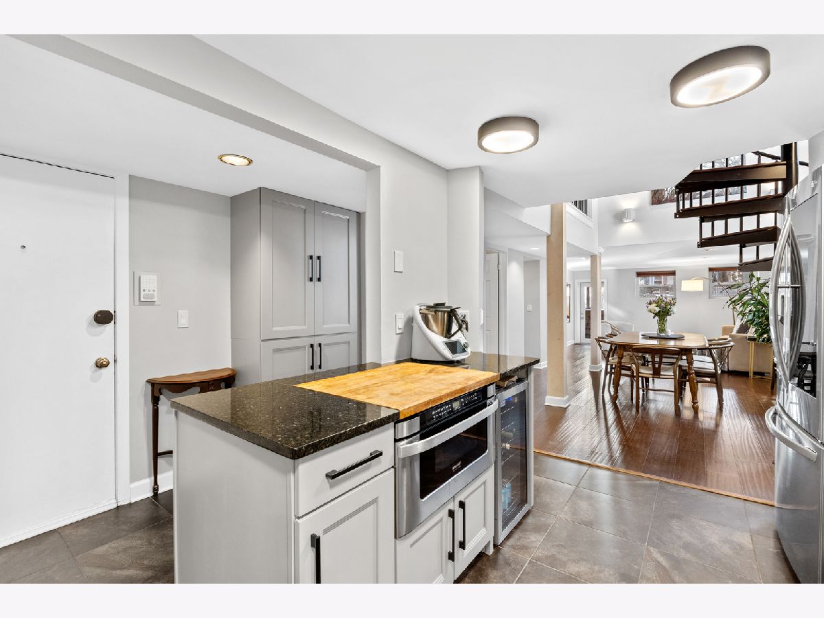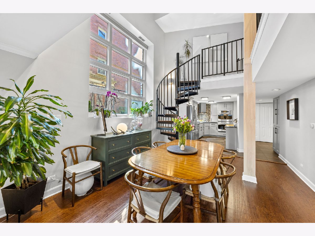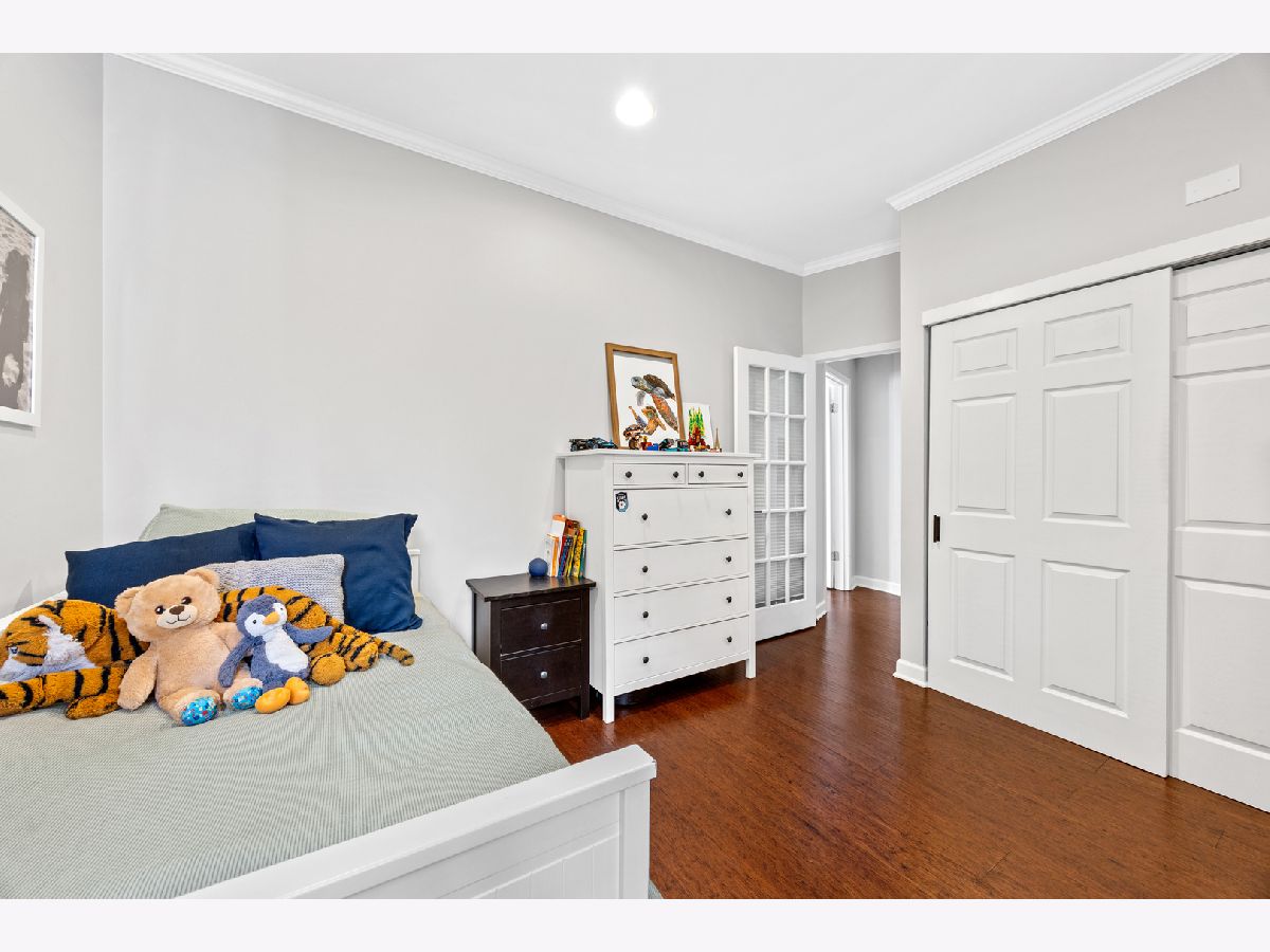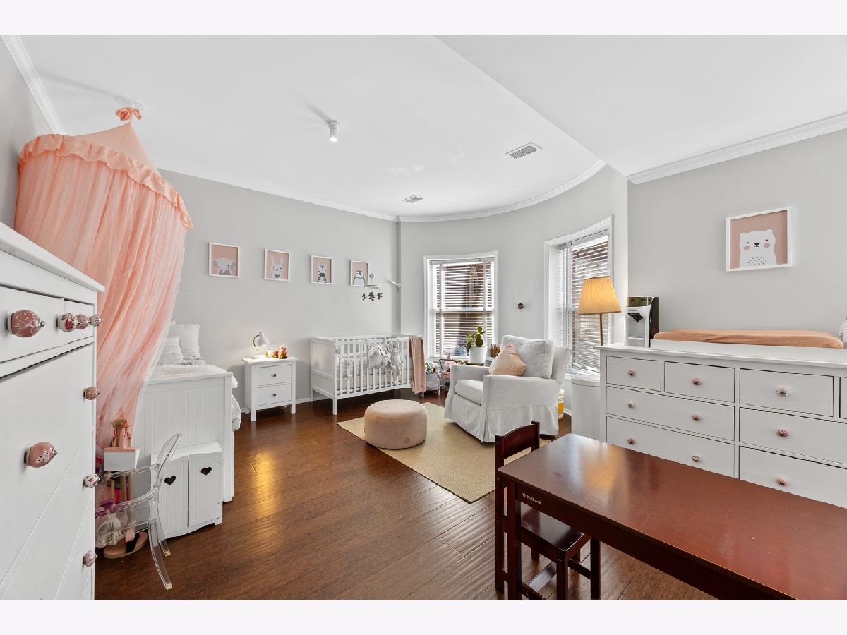 Sunny and unique duplex down in East Lakeview! With a flipped floor plan, this home has all three spacious and bright bedrooms on the first floor with the kitchen and living areas located below. The sellers removed the previously space inhibiting staircase and replaced with a practical (and climbable) spiral staircase to maximize both living space and light. They added crown molding throughout, replaced the railings and encapsulated the support beams with classic natural wood. The large kitchen boasts a double oven, pantry, brand new wine fridge, newer refrigerator, and excellent cabinet storage and counter space. In addition to the sellers adding a window to the back door, a newer east facing Anderson picture window lets a ton of light into the lower level. With a dining and living room, you will have plenty of space to spread out. Washer/dryer is also newer. All three bathrooms have been updated with new vanities, hardware, and light fixtures. The downstairs powder room is especially roomy and convenient. This home has a generous private deck off the primary bedroom which opens onto the enormous, rare to the city, communal backyard! Storage cage and bike room included. Located just a block from the cherished Nettelhorst school and steps from fantastic restaurants, public transportation, the lakefront, and retail. This is a stellar home in a stellar East Lakeview location. Zoned street parking or rental options nearby. NO DOG building.