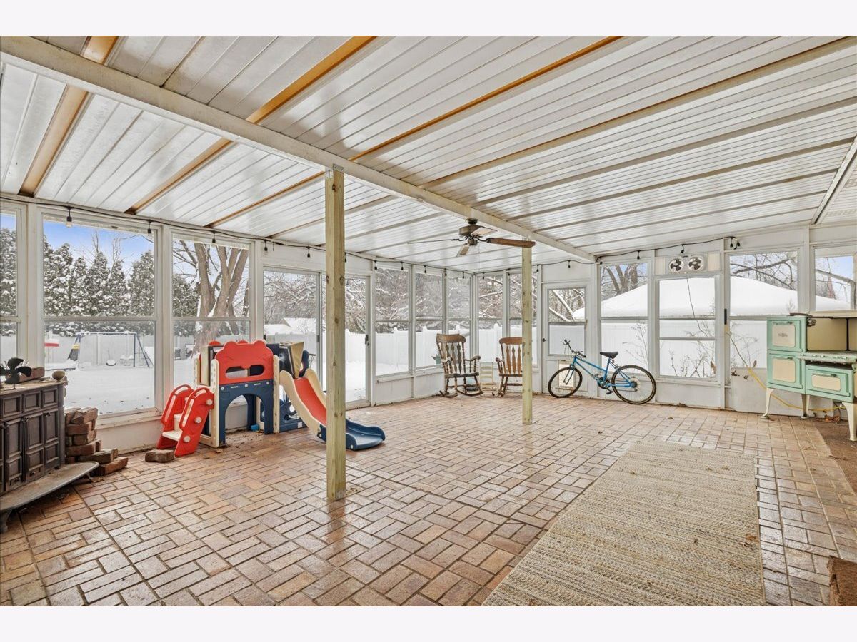 Mid-Century Modern Charmer ranch in the Heart of Woodstock! Just 0.6 miles from Historic Woodstock Square, this well-maintained home offers incredible convenience to shopping, dining, festivals, and everyday amenities. Step inside to a light-filled living room featuring hardwood flooring and crown molding. The freshly painted kitchen includes a ceramic tile backsplash and a functional layout. A standout of the home is the spacious three-season sunroom, offering direct access to the expanded patio-an ideal spot to enjoy the outdoors in comfort. The fully fenced backyard feels like a private oasis with fresh landscaping and plenty of space to relax or entertain. An oversized shed with a concrete floor and electricity provides excellent additional storage or hobby space. The lower-level living area adds another comfortable zone to spread out, features a laundry room and abundant storage. Warm, inviting, and close to everything Woodstock has to offer-this home is a must-see!
