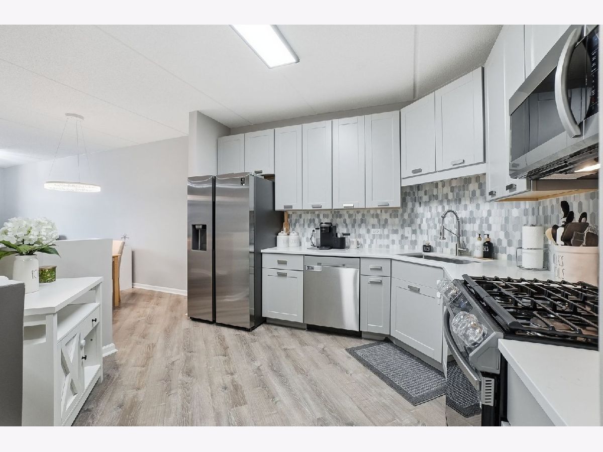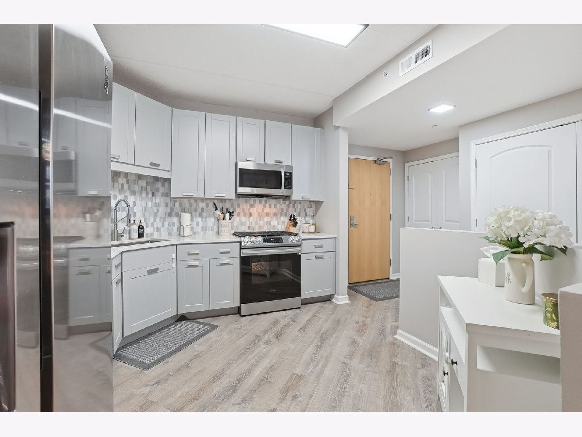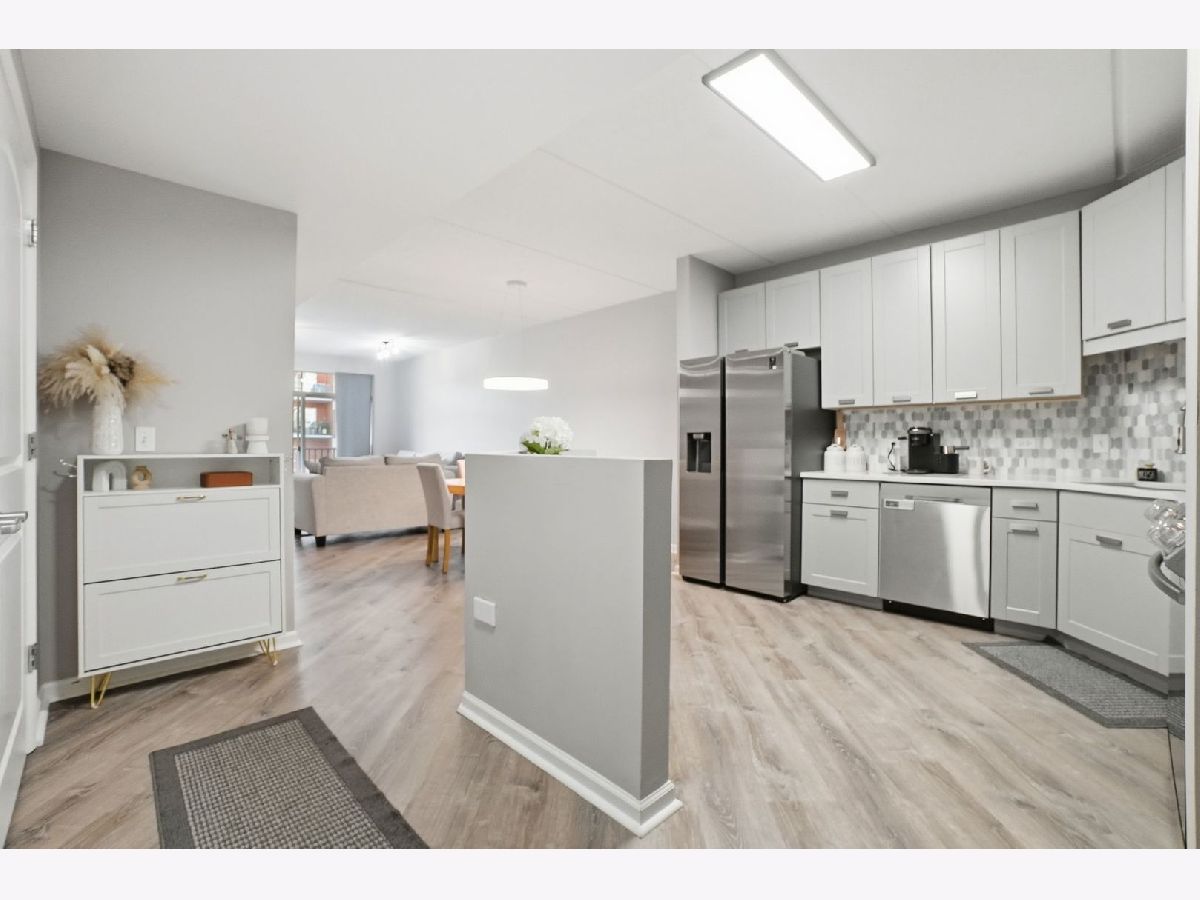Perfectly located in the heart of downtown Des Plaines, this updated 2-bedroom/2-bath condo features a modern kitchen with stainless steel appliances, sleek countertops, and ample cabinet space, along with renovated bathrooms and flooring throughout. Enjoy your private terrace-the largest in the building-perfect for relaxing or entertaining. Additional highlights include in-unit laundry, heated garage parking (Space #51), and extra storage (Unit 7). Assessments include heat, water and gas. This well-maintained building has secure entry, elevators, bike room, dog run, party room and professional management. This unbeatable location is just steps to the Metra, with easy access to restaurants, shopping, parks, the library, the Des Plaines Theatre, I-294, and O'Hare. Great opportunity for homeowners or investors-schedule your showing today!