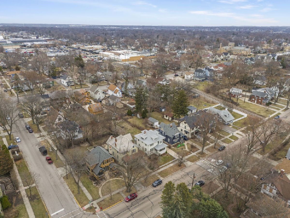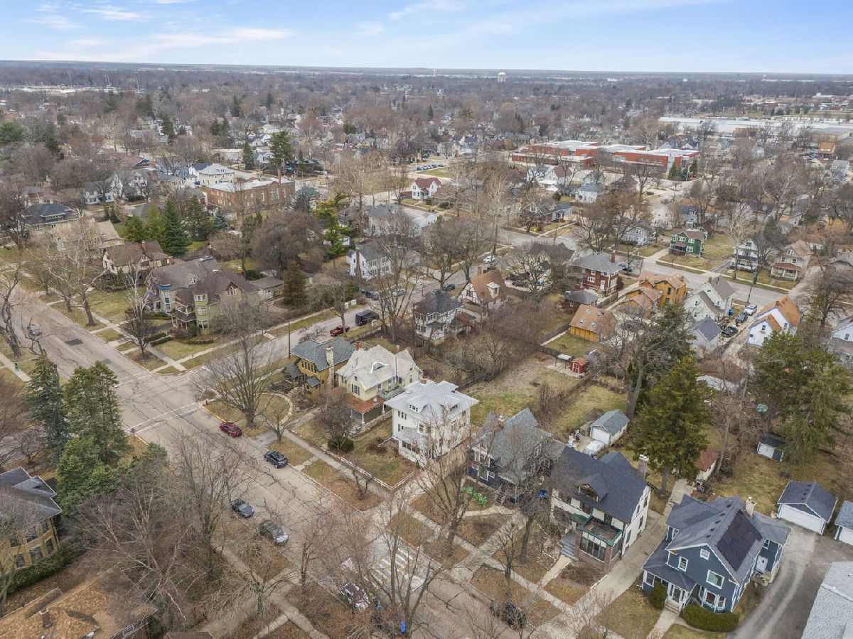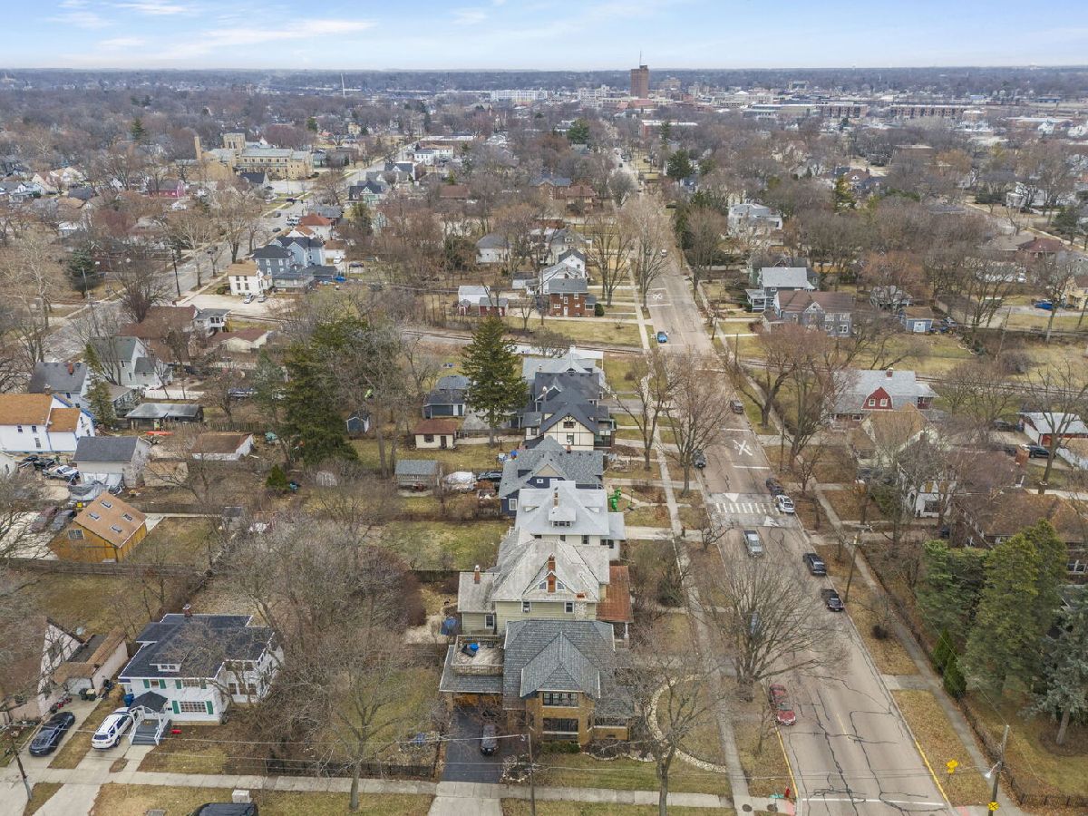 Ready to be impressed? Step inside this charming four square that has been renovated and restyled from top to bottom located in Aurora's prestigious Boulevard District. Located just 1.5 miles to the Metra with express trains to the city in 46 minutes and all that Downtown Aurora has to offer. Set on a deep 50x198 lot, you will love the big backyard that has plenty of room for a pool and a large garden. Upon entering, you will find an amazing screened in front porch, a great space for sipping your coffee in the sun of the southern exposure. The entire house is a seamless mix of vintage charm meets modern style. The first floor boasts 9-foot ceilings, a great office, a spacious living room with a new fireplace facade (2022), a formal dining room with coffered ceiling and leaded glass windows, an updated kitchen (2025) with a vintage design and farmhouse sink and an enclosed back porch. Both bathrooms were updated in 2020. Upstairs you will find 4 large bedrooms (1 has a deck overlooking the yard), a spacious hallway and stairs to the unfinished attic with expandable living space. Don't miss the new roof (2023), new fireplace chimney (2024), full exterior of home repainted (2025), stucco repaired (2020), all new electric (2020), new washer (2025), new dryer (2020) and new weights and sashes for the vintage windows (2020). There is no garage but plenty of space to add a 2-3 car garage on the preexisting concrete pad. There is a 4-car driveway in the front of the home. The unfinished basement is ready to be finished! Located just blocks to Lincoln Park dog park, Aurora University and plenty of restaurants and shopping, this home is a MUST SEE! Welcome Home!