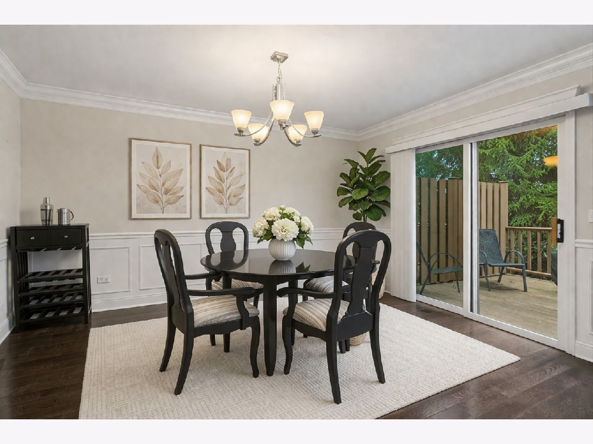 This home is impeccably maintained and move in ready! Highly sought after neighborhood, super convenient location, just a short distance to metra and downtown shops, farmers market, restaurants, stores, library and more! Beautiful mature trees surround the back to give you added privacy from your deck. Dramatic two story living room is showcased by the elegant brick fireplace and tall arch windows to enjoy the rear vista views. Tastefully decorated and updated with interior decorating consult, neutral colors, crown molding, wainscoting in dining room, updated kitchen with granite tops, breakfast bar, eat in area plus pantry. Classic yet charming and now ready for new homeowner. 1st level bedroom offers versatility for your lifestyle needs, and is currently being used as an office. Some photos virtually stages