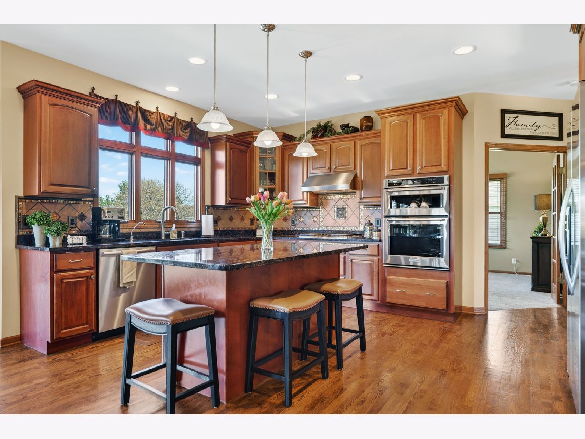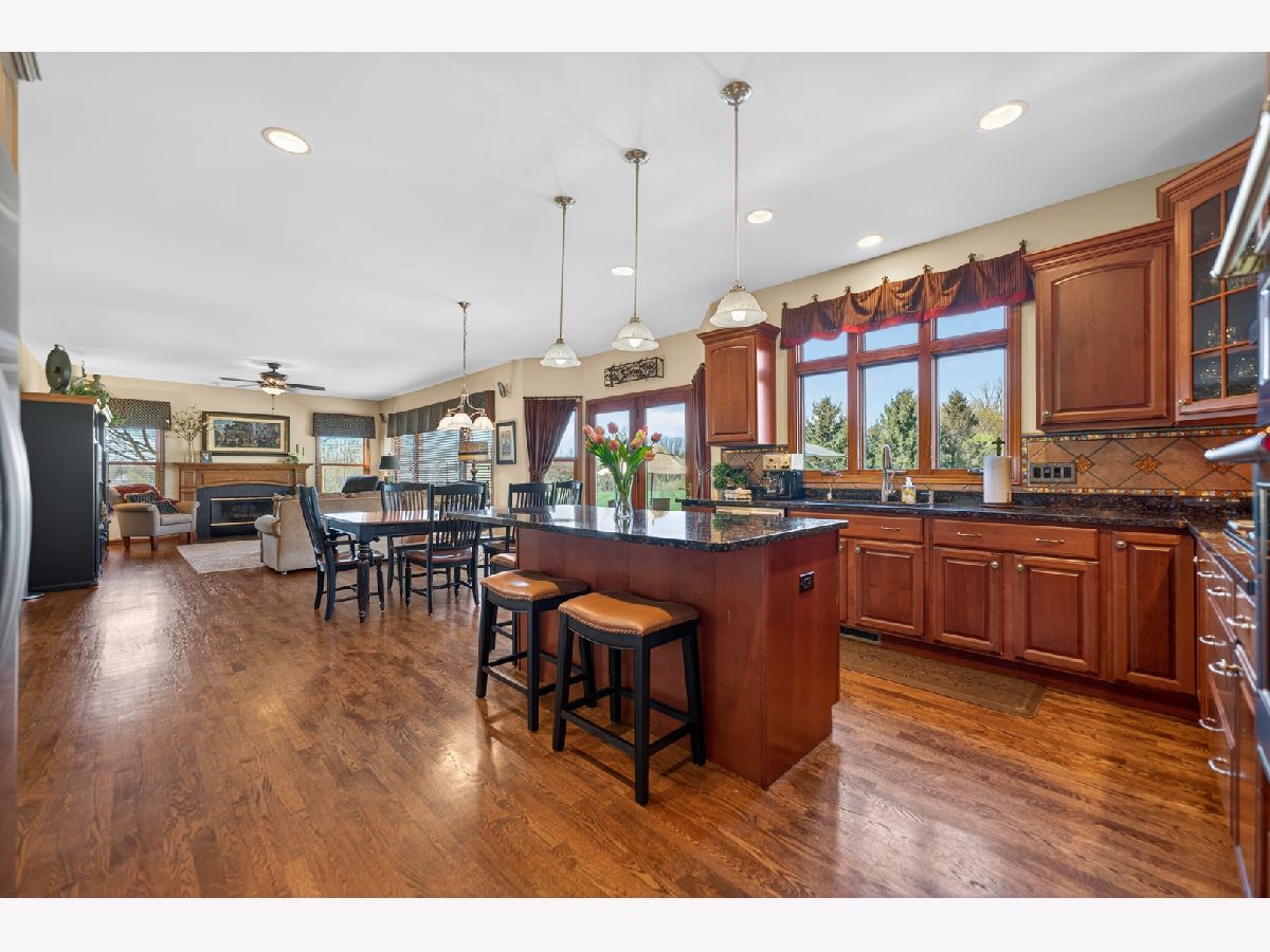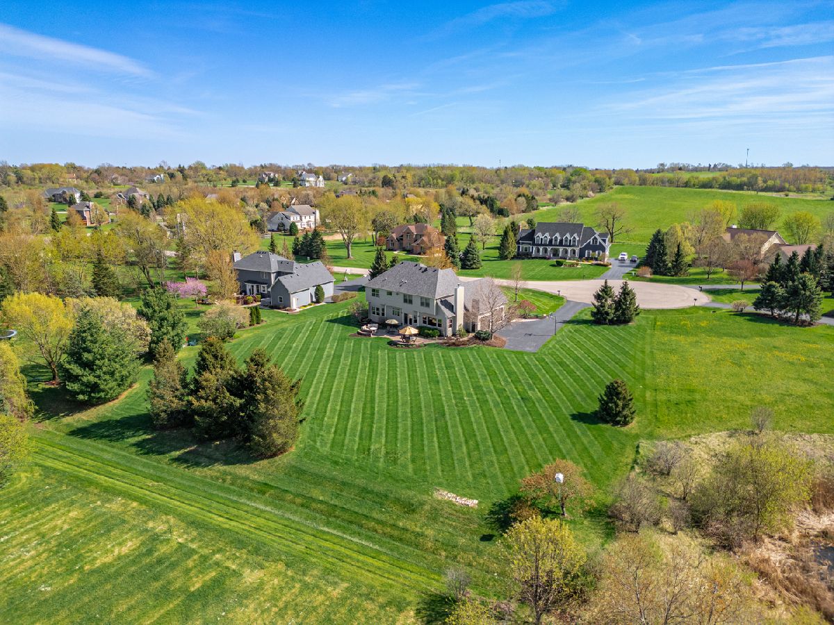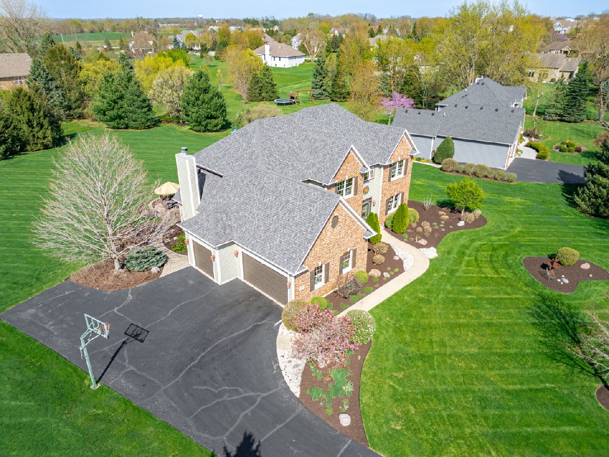 It's all in the numbers-1 acre, 2 fireplaces, 3-car garage, 4 bathrooms, and 5 bedrooms-but this home offers so much more than impressive stats. Step into the dramatic two-story foyer and immediately appreciate the craftsmanship, featuring 9' ceilings and rich hardwood floors throughout the majority of the first floor. The spacious kitchen is the heart of the home, showcasing granite countertops, a tile backsplash, and warm cherry cabinetry, all opening seamlessly to the inviting family room-ideal for both everyday living and entertaining. A butler's pantry connects to the formal dining room, where an elegant tray ceiling sets the tone for special gatherings. The main-floor office with French doors provides a quiet, private space perfect for working from home or study. Upstairs, the expansive primary suite offers a true retreat, complete with a generous walk-in closet and room to unwind. The finished basement adds exceptional flexibility, featuring a bar, game room, additional bedroom, and full bath-perfect for guests, entertaining, or extended living. Step outside to a brick patio overlooking the spacious backyard with open western views-perfect for enjoying wildlife watching and stunning sunsets. For added peace of mind, the roof was replaced and the exterior painted with top quality materials in 2025. Lovingly maintained by the original owners, this custom home is ready for its next chapter. Nestled on a quiet cul-de-sac, it offers the perfect blend of privacy and neighborhood charm.