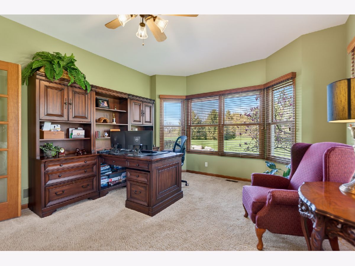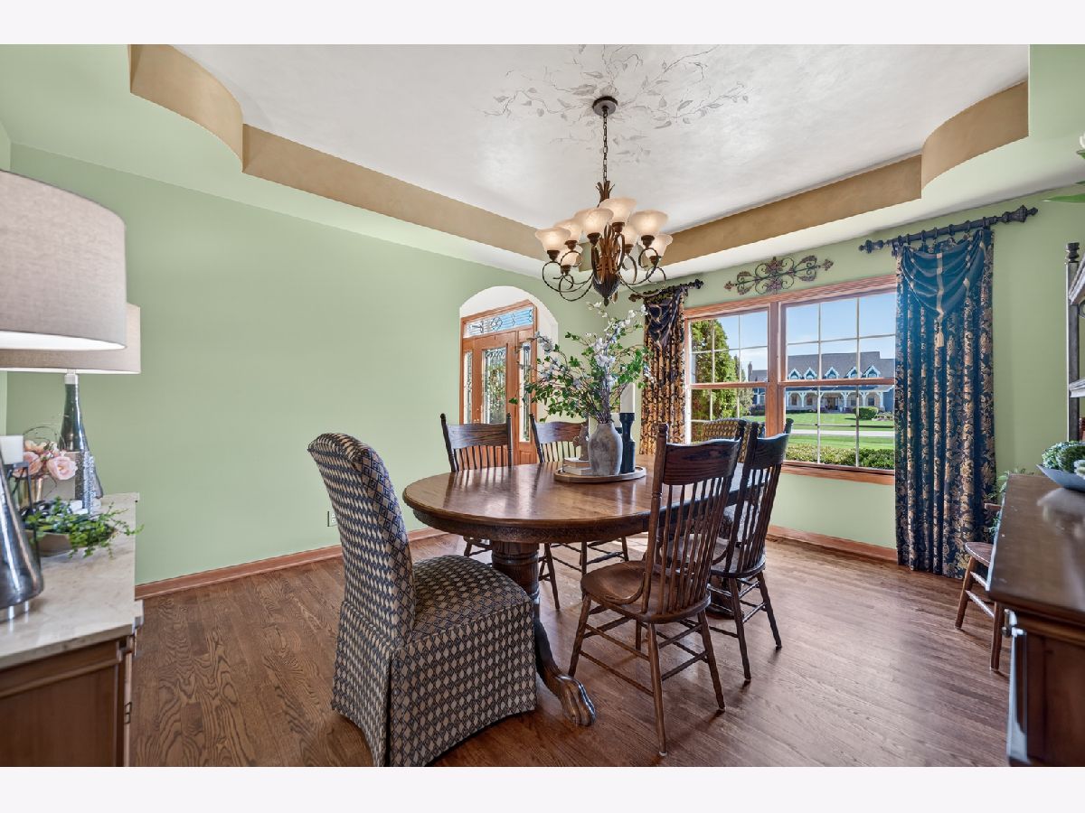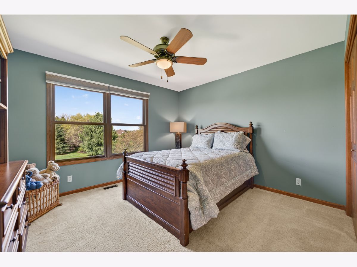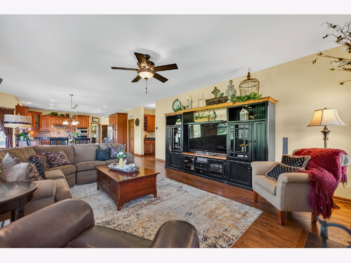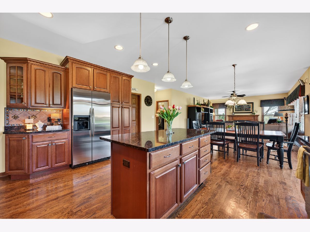 It's all in the numbers-1 acre, 2 fireplaces, 3-car garage, 4 bathrooms, and 5 bedrooms-but this home offers so much more than impressive stats. Step into the dramatic two-story foyer and immediately appreciate the craftsmanship, featuring 9' ceilings and rich hardwood floors throughout the majority of the first floor. The spacious kitchen is the heart of the home, showcasing granite countertops, a tile backsplash, and warm cherry cabinetry, all opening seamlessly to the inviting family room-ideal for both everyday living and entertaining. A butler's pantry connects to the formal dining room, where an elegant tray ceiling sets the tone for special gatherings. The main-floor office with French doors provides a quiet, private space perfect for working from home or study. Upstairs, the expansive primary suite offers a true retreat, complete with a generous walk-in closet and room to unwind. The finished basement adds exceptional flexibility, featuring a bar, game room, additional bedroom, and full bath-perfect for guests, entertaining, or extended living. Step outside to a brick patio overlooking the spacious backyard with open western views-perfect for enjoying wildlife watching and stunning sunsets. For added peace of mind, the roof was replaced and the exterior painted with top quality materials in 2025. Lovingly maintained by the original owners, this custom home is ready for its next chapter. Nestled on a quiet cul-de-sac, it offers the perfect blend of privacy and neighborhood charm.
