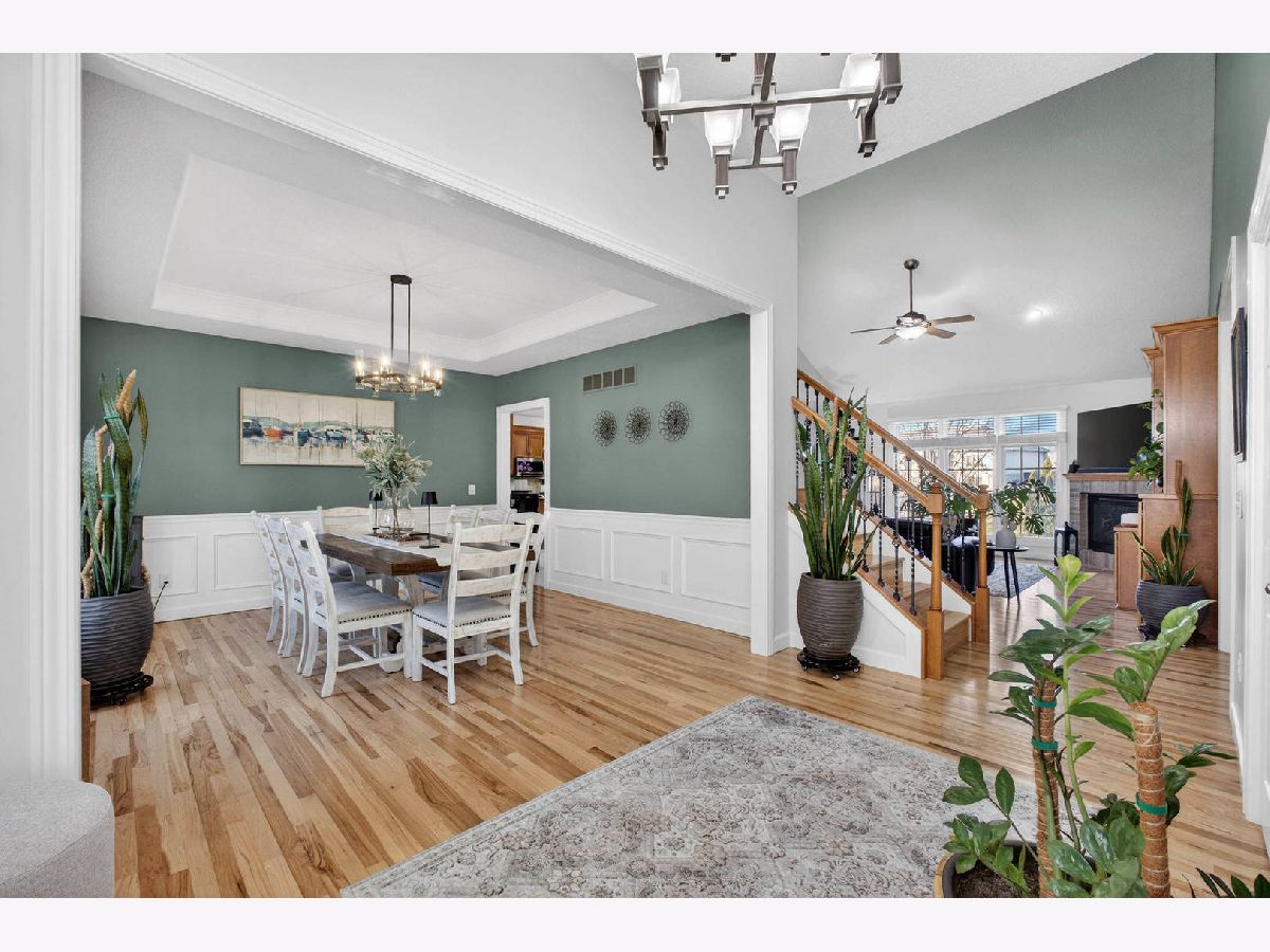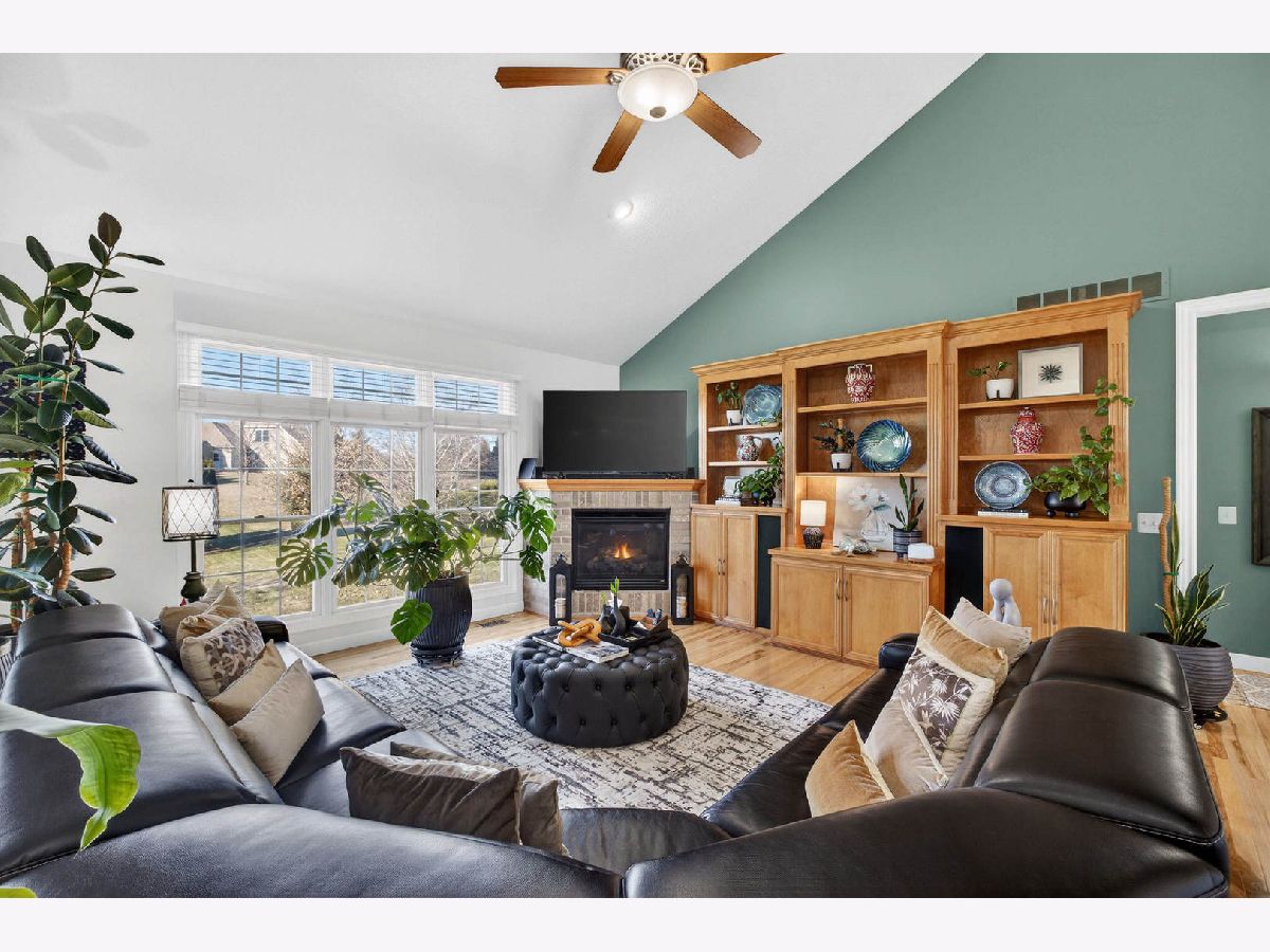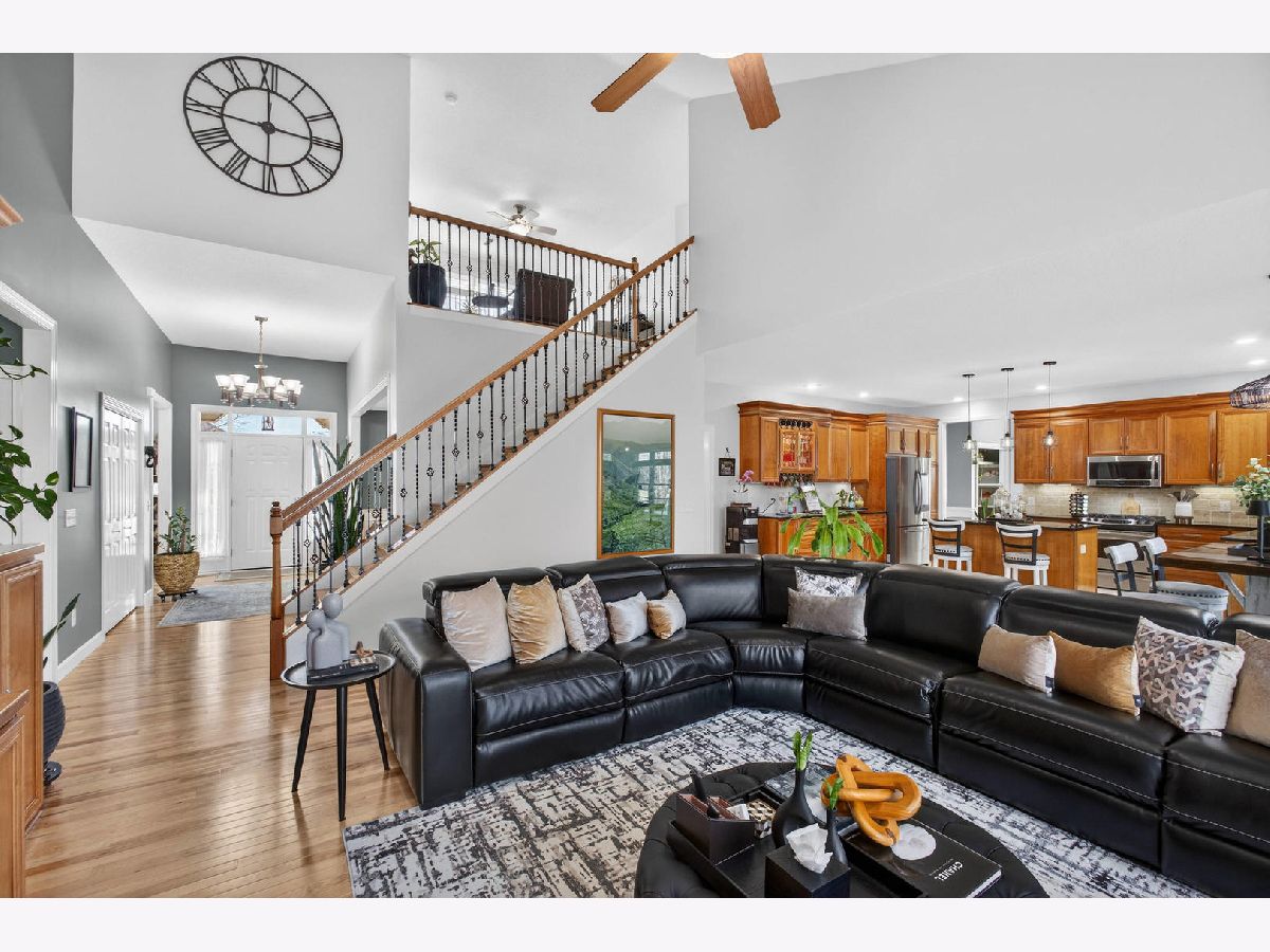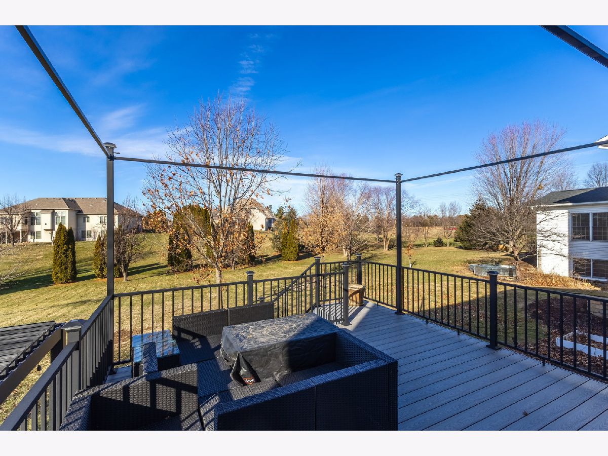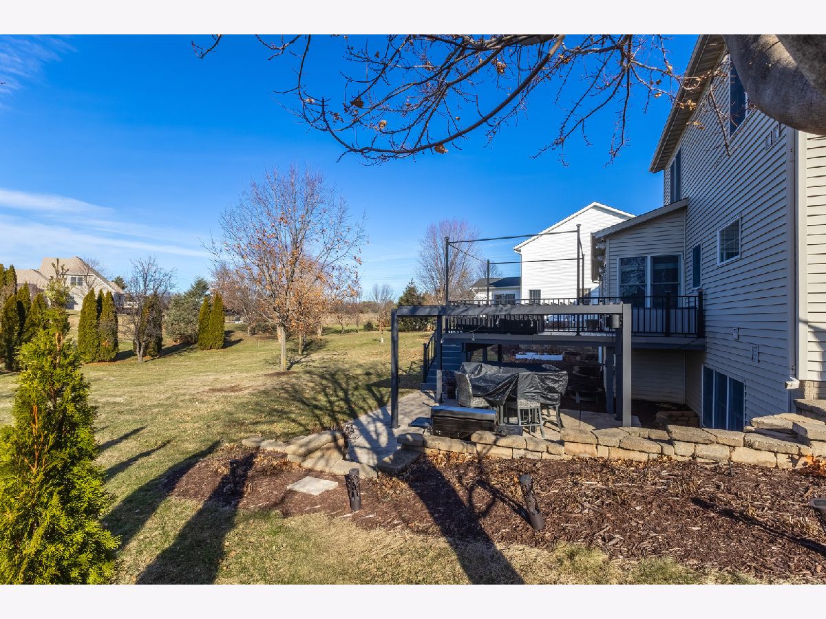 Nearly 4,000 SF of exquisitely finished living space defines the exceptional 1 1/2 story home, where refined craftsmanship meets timeless design. Thoughtfully curated to maximize light and openness, the home features custom built-ins, soaring 9 ft and vaulted ceilings, and rich hardwood flooring complemented by tile and vinyl plank throughout. A long list of high-quality updates underscores the meticulous care invested in the home, including a new deck floor and rail system '25, striking pergola '25, roof shingle replacement '20 and a fully refreshed lower level '24. Additional enhancements include replacement of all wood flooring, updated sink faucets and toilets, new tub fixtures in the basement and second floor baths, garbage disposal '22, custom solid shelving in the master closet '21 and a complete interior repaint, delivering a cohesive, move in ready experience. Outdoor living is equally impressive anchored by a newly updated composite deck floor'25, designed for both durability and style. Below, a stamped concrete patio beneath the new retractable pergola '25 creates an inviting setting for entertaining or quiet relaxation, while the adjacent koi pond adds a serene, resort like ambiance overlooking the expansive backyard. Inside, the custom finished lower level offers a spacious rec room with bar and game areas, perfect for hosting gatherings. The main level's open concept design provides seamless flow for entertaining, while the great room fireplace sets the tone for elegant yet comfortable evening at home. All appliances and security cameras are included, irrigation system and city park near by within the neighborhood, offering green space and recreational opportunities. From thoughtful updates to refined details throughout make this home a standout opportunity offering comfort, quality and elevated living.