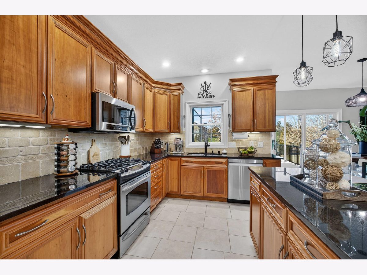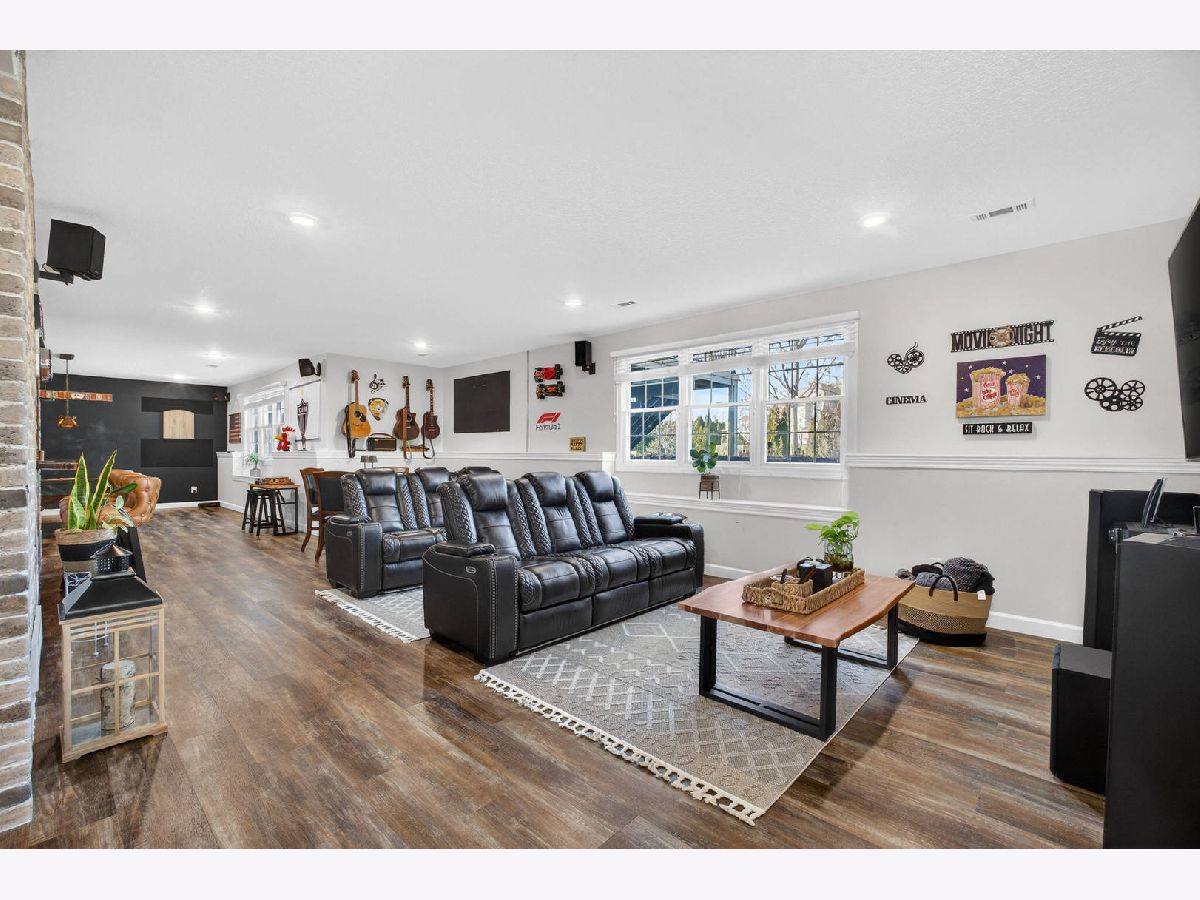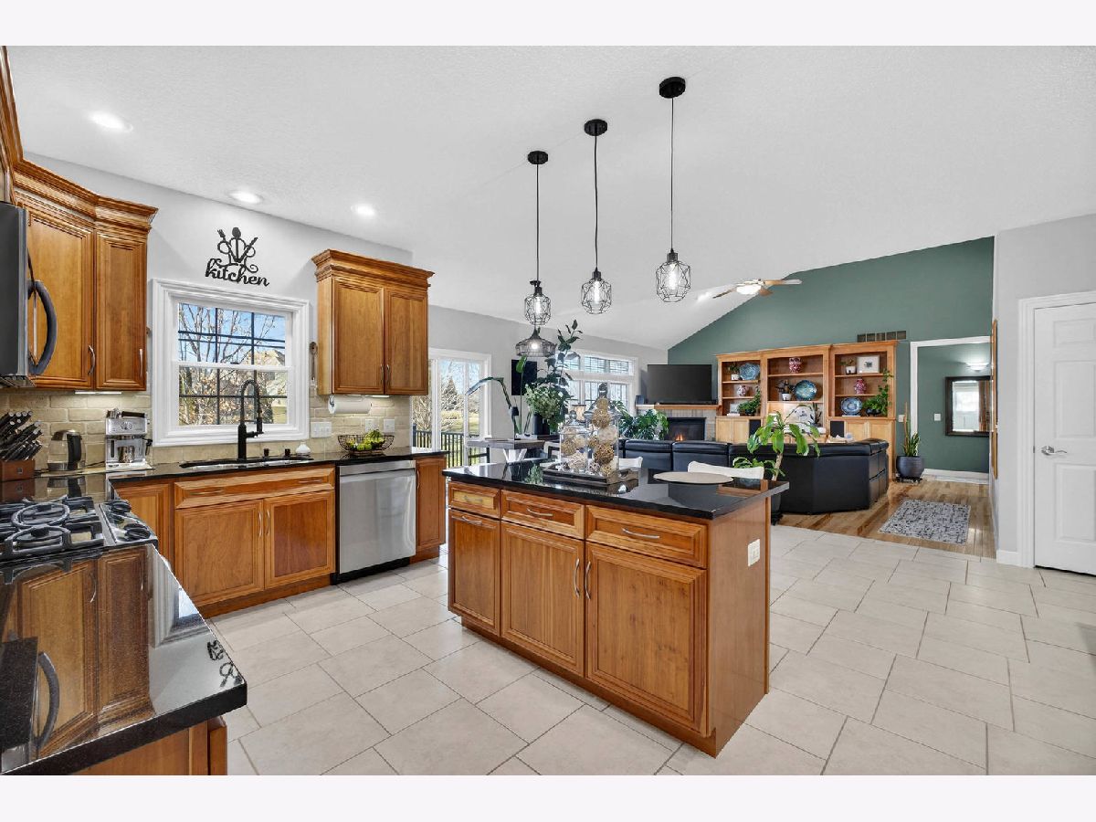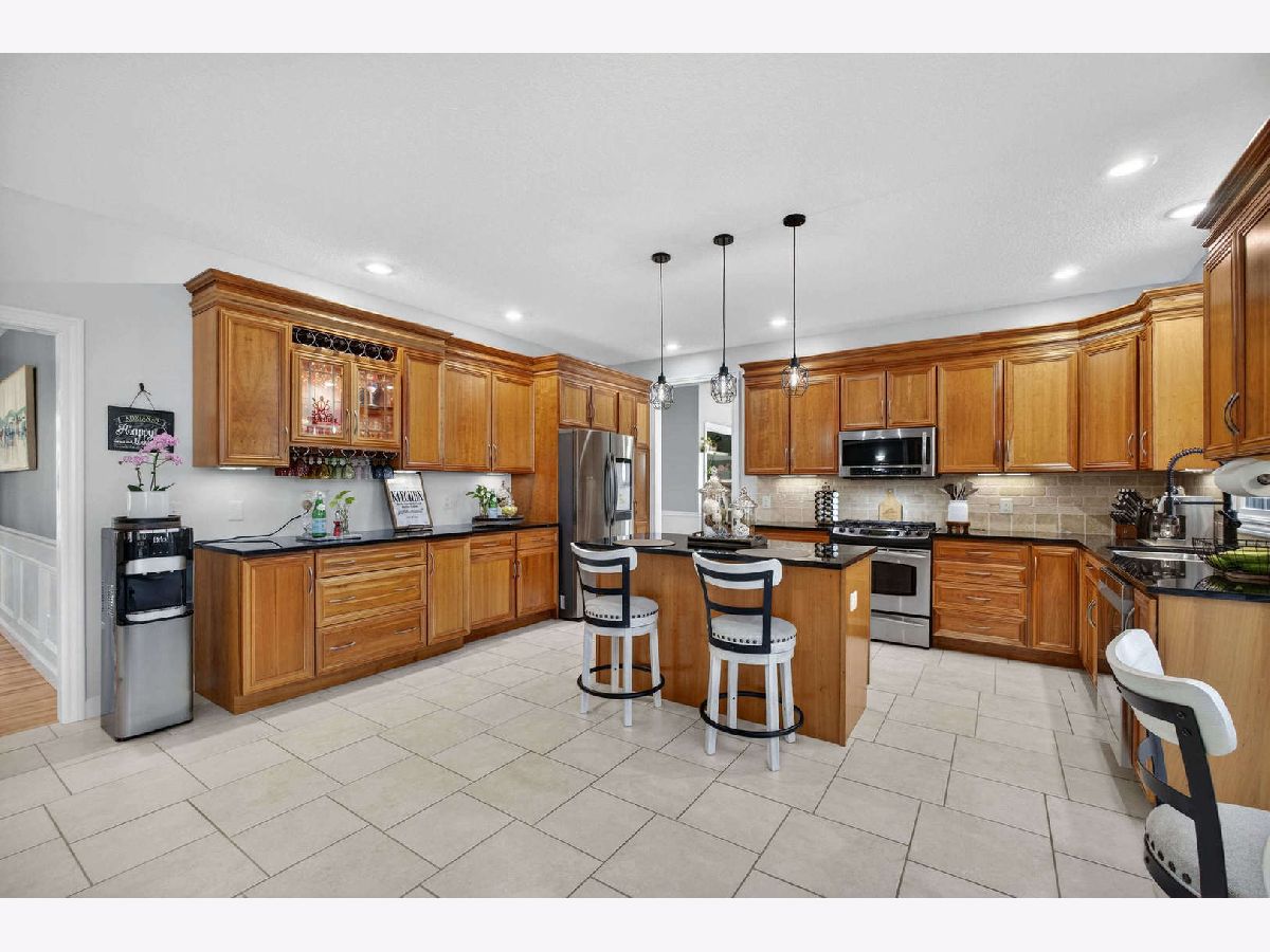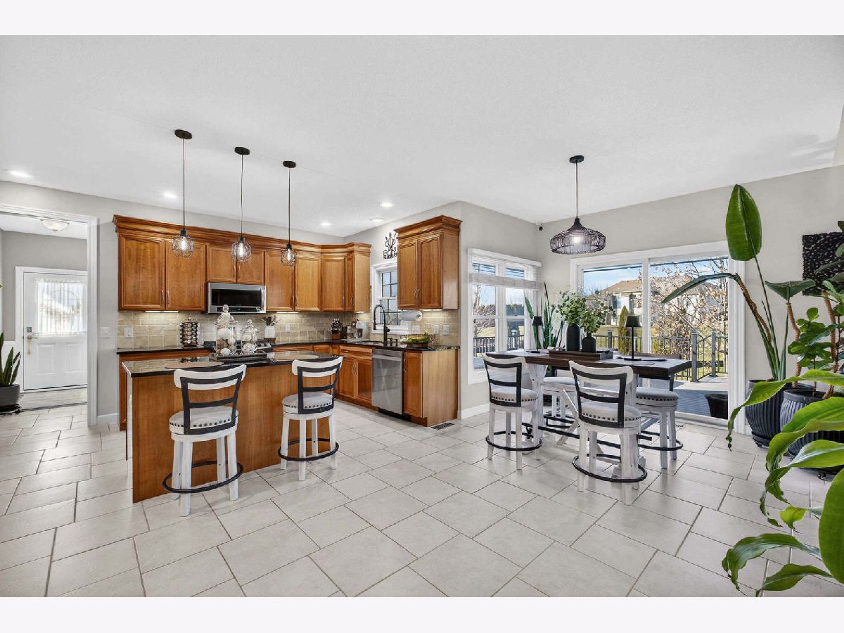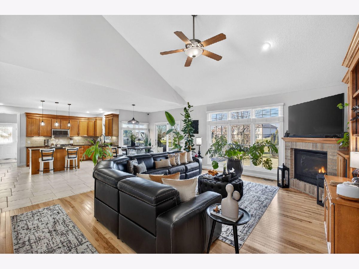 Nearly 4,000 SF of exquisitely finished living space defines the exceptional 1 1/2 story home, where refined craftsmanship meets timeless design. Thoughtfully curated to maximize light and openness, the home features custom built-ins, soaring 9 ft and vaulted ceilings, and rich hardwood flooring complemented by tile and vinyl plank throughout. A long list of high-quality updates underscores the meticulous care invested in the home, including a new deck floor and rail system '25, striking pergola '25, roof shingle replacement '20 and a fully refreshed lower level '24. Additional enhancements include replacement of all wood flooring, updated sink faucets and toilets, new tub fixtures in the basement and second floor baths, garbage disposal '22, custom solid shelving in the master closet '21 and a complete interior repaint, delivering a cohesive, move in ready experience. Outdoor living is equally impressive anchored by a newly updated composite deck floor'25, designed for both durability and style. Below, a stamped concrete patio beneath the new retractable pergola '25 creates an inviting setting for entertaining or quiet relaxation, while the adjacent koi pond adds a serene, resort like ambiance overlooking the expansive backyard. Inside, the custom finished lower level offers a spacious rec room with bar and game areas, perfect for hosting gatherings. The main level's open concept design provides seamless flow for entertaining, while the great room fireplace sets the tone for elegant yet comfortable evening at home. All appliances and security cameras are included, irrigation system and city park near by within the neighborhood, offering green space and recreational opportunities. From thoughtful updates to refined details throughout make this home a standout opportunity offering comfort, quality and elevated living.