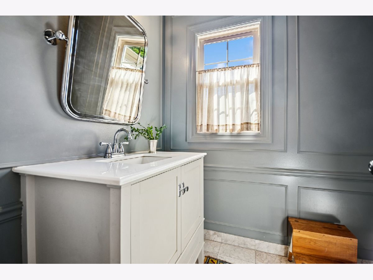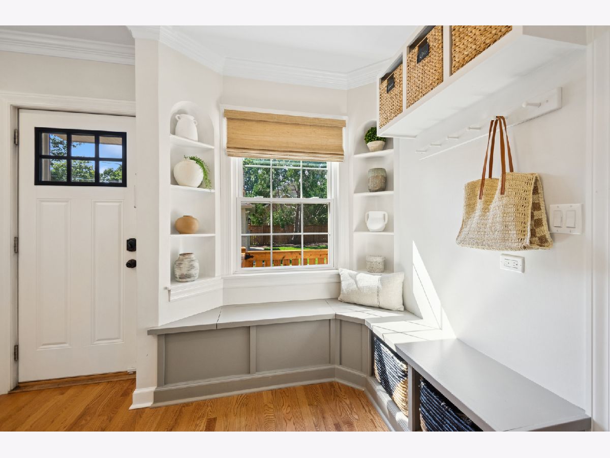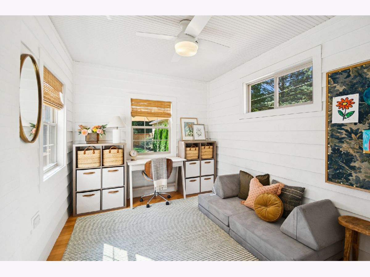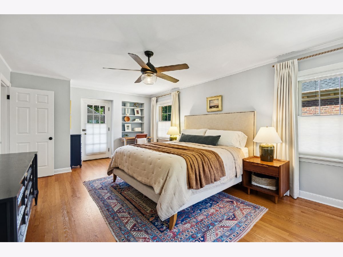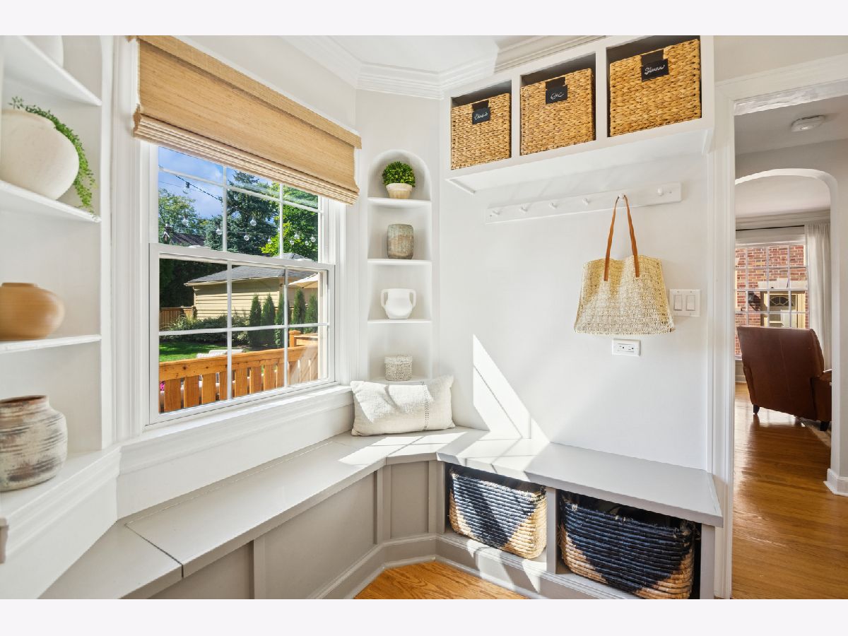 This Stately 1940s Brick Colonial tastefully combines vintage charm with a fresh and sophisticated interior for a contemporary lifestyle. The entire first floor has warm hardwood floors, oversized windows with elegant crown molding and arched doorways. The inviting LR is centered by a WB fireplace. A unique glass barn style door separates a light filled space perfect for an office. There is a large and sophisticated open concept kitchen and dining area. The kitchen has been tastefully updated and includes a unique and cozy corner seating area with views of the lovely backyard. There is also a convenient half bath on the first floor. A classic staircase takes you upstairs to the primary bedroom and 2 good sized bedrooms all light-filled from oversized windows. The beautifully updated bathroom has double sinks and a relaxing soaking tub. The finished basement has a welcoming and comfy family room, complete with a second WB fireplace and a second full bath with a walk-in shower. The oversized lot has large grassy area and brick paver patio with italian lights for outdoor entertaining plus a new 2-car garage. Recent updates: 2025 New 2-car garage, new basement ejector pump, 2024 Fireplace flue and firebox repaired & relined, 2022 New energy efficient furnace and humidifier installed, 2021 perimeter cedar fence installed, 2018 full kitchen remodel and expansion, touch screen, whole house security system installed, 2014 updated main floor half-bath. Fabulous location on a tree-lined street, just walking distance to everything Edgebrook, including the Edgebrook School, Metra, shops, and restaurants with easy access to 90/94, downtown and O'Hare. Stunning home in the heart of Edgebrook.