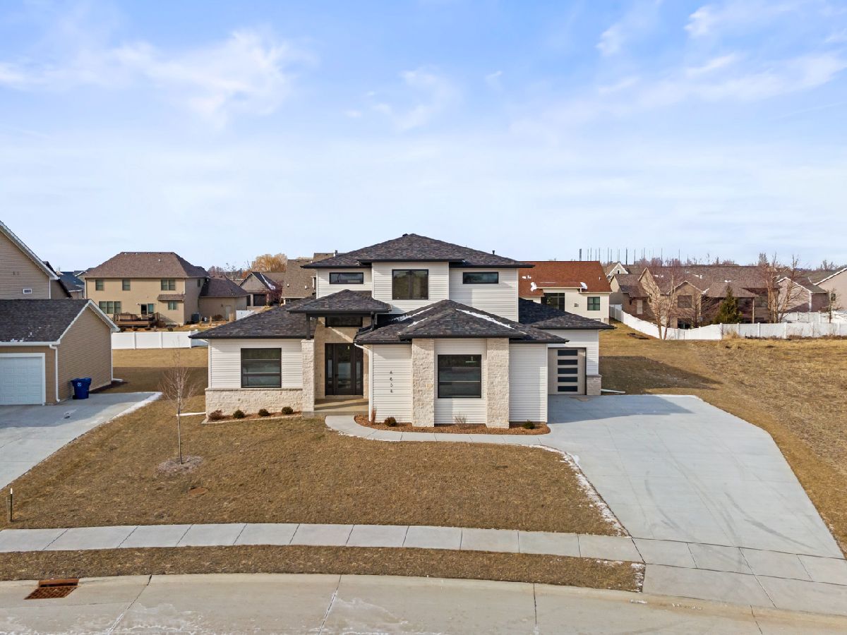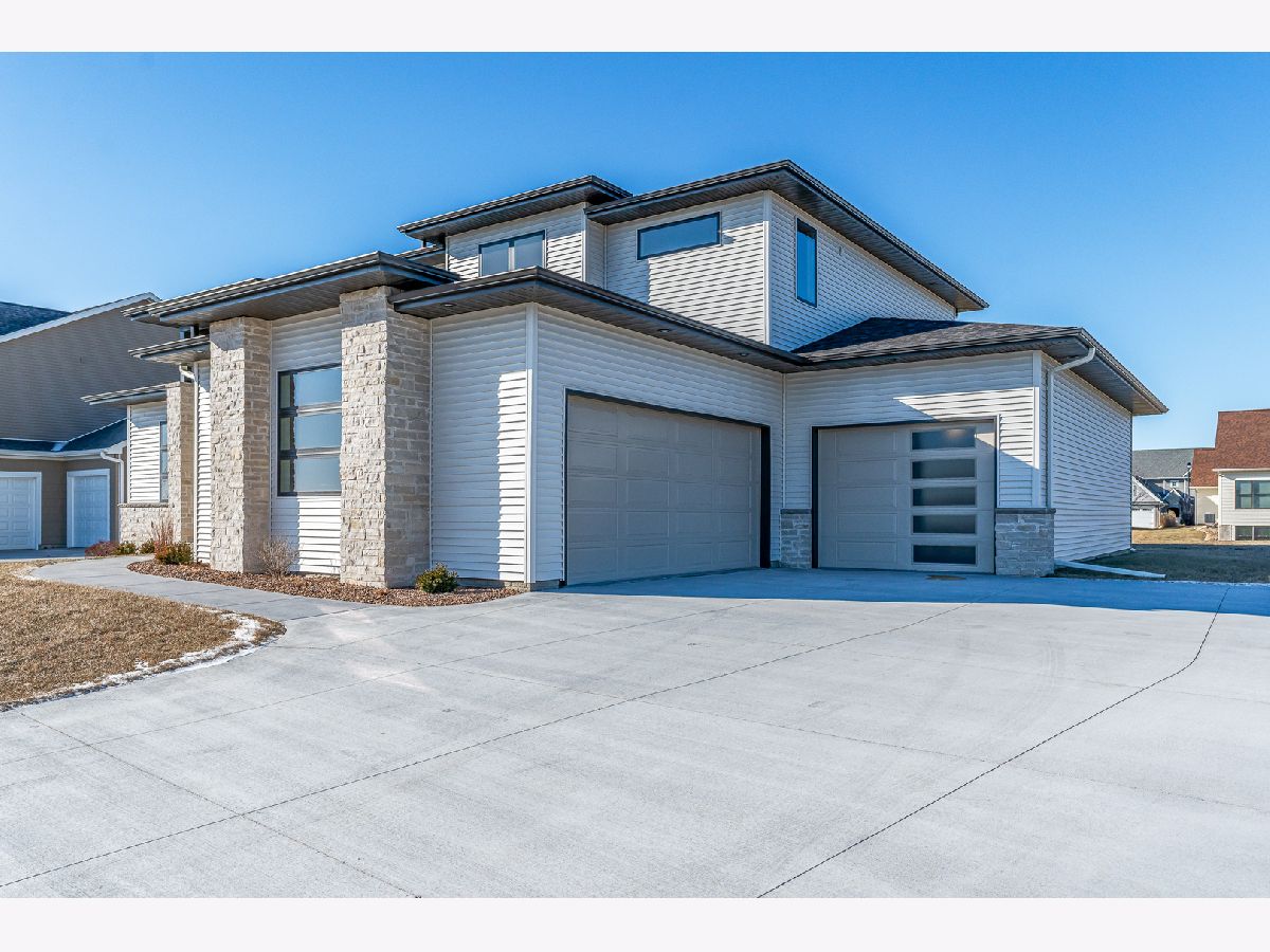 Welcome to your new home, which offers a stunning modern and organic design. This exclusively curated beauty is perfectly positioned in one of Bettendorf's most up-and-coming neighborhoods: Forest Green Addition, just minutes from the newest restaurants, shopping, sports facilities, and everyday conveniences Bettendorf has to offer. From the moment you arrive, you'll be captivated by the home's thoughtful craftsmanship and cutting edge curb appeal. Inside you'll be greeted with the warmth and modern feel of custom woodwork, a marriage of white, grays and browns, and chic touches of luxurious flair. Near the foyer, a mirrored barn door creates a private office retreat for work or relaxation. Continue inside and you'll be in awe! The heart of the home features a bright, open floor plan with soaring 20' ceilings in the great room that frames a magnificent floor-to-ceiling fireplace, while expansive windows flood the space with natural light and create an incredible sense of openness. The custom arch is a focal point for conversation - a very unique feature inspired by European travel! The adjoining kitchen is both stylish and functional, featuring a large waterfall island with a culinary work sink, seamless quartz countertops and backsplash, cabinetry to the ceiling, and a hidden walk-in pantry for effortless organization. Even the laundry and mudroom are elevated with built-in lockers and unique designs to keep everyday life running smoothly. This open plan flows seamlessly into a grand covered outdoor patio-ideal for entertaining or relaxing outdoors in those warmer months. One of the other standout features of this home is the main-floor primary suite, designed with comfort and relaxation in mind. This private sanctuary includes an elegant tray ceiling, a spa-inspired 5-fixture bath with gorgeous cabinets and hardware, a generous walk-in closet, and more! A loft at the top of the stairs leads to three additional spacious bedrooms and a well-designed hall bath with dual sinks and a separate shower/ toilet area for added convenience. Practicality meets luxury with a 3-car heated garage, mudroom/drop zone with built-in lockers which are conveniently located next to a powder bath and laundry room. But that's not all - the garage has a separate entrance into the basement!! Convenient for so many uses. Come and see it all for yourself! New construction - ready for you to move into today!