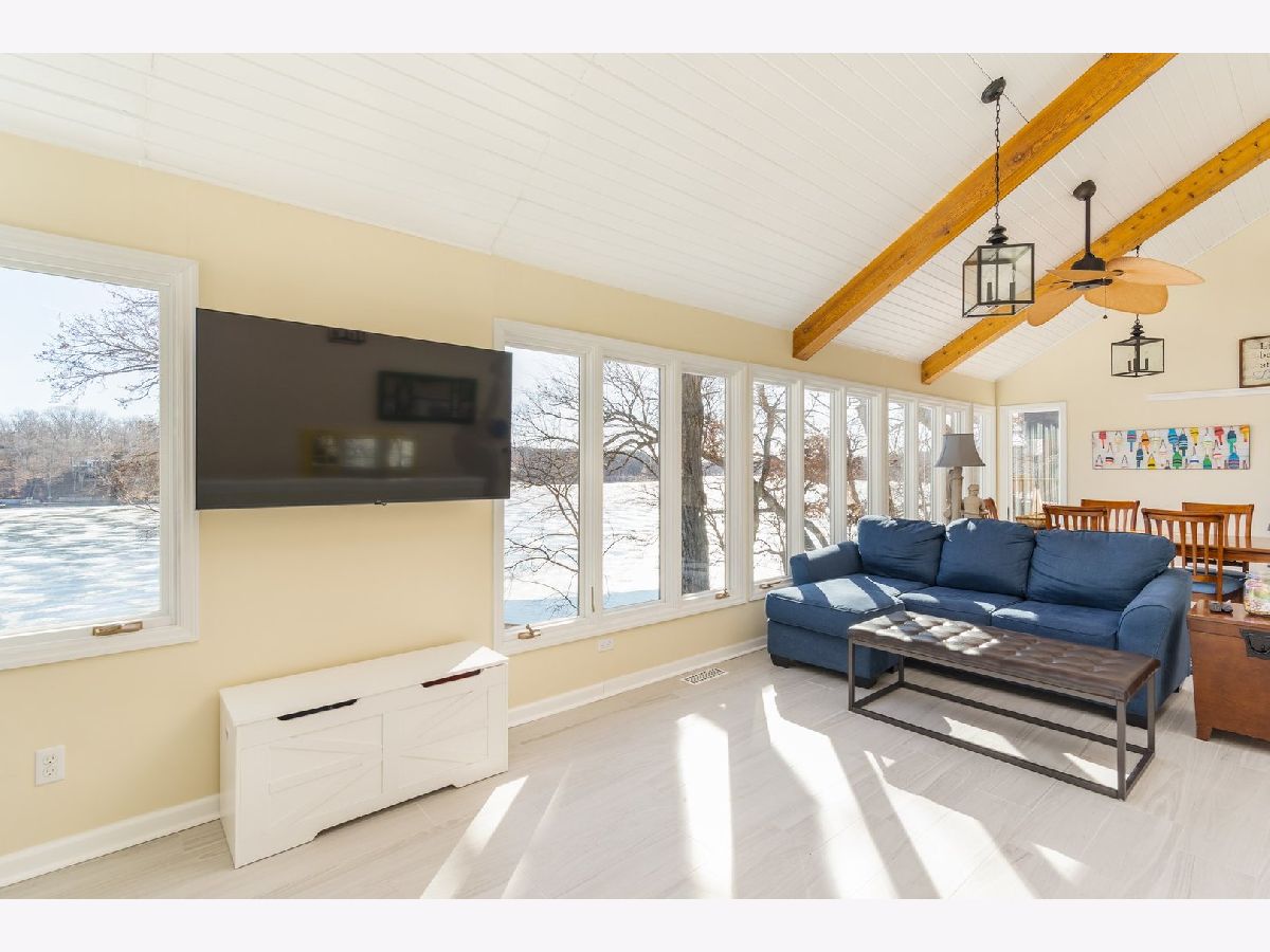 Nestled on the water in the gated Lake Wildwood community, this 3-bedroom, 3-full-bath lakefront cottage offers truly breathtaking views from nearly every angle. Perched above the shoreline, the home features expansive decking that cascades down toward the lake-perfect for entertaining, relaxing, or soaking in the scenery year-round. Two lakeside sheds provide ample storage for water toys, tools, and lake essentials. Inside, the light-filled living space is framed by walls of windows overlooking the lake, creating a stunning backdrop for everyday living. Vaulted ceilings with exposed beams add warmth and character, while the open layout flows seamlessly into the dining area-ideal for gatherings with family and friends. The kitchen was beautifully updated in 2025 with quartz countertops and high-end appliances, blending modern finishes with timeless lake-house charm. Three comfortable bedrooms and three full baths offer plenty of space for guests or weekend getaways, while the peaceful setting makes it easy to unwind. Enjoy all that Lake Wildwood has to offer, including two lakes perfect for boating and fishing, two beaches, marina, clubhouse, pool, multiple parks, pickleball and tennis courts, basketball courts, and more-all from your own slice of lakefront paradise. This is the kind of view you won't want to leave. All offers subject to Lake Wildwood rules, covenants, and right of first refusal.