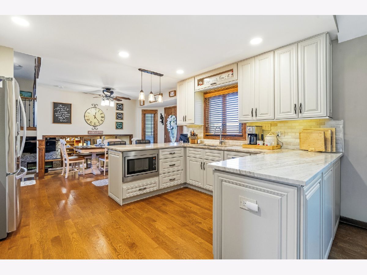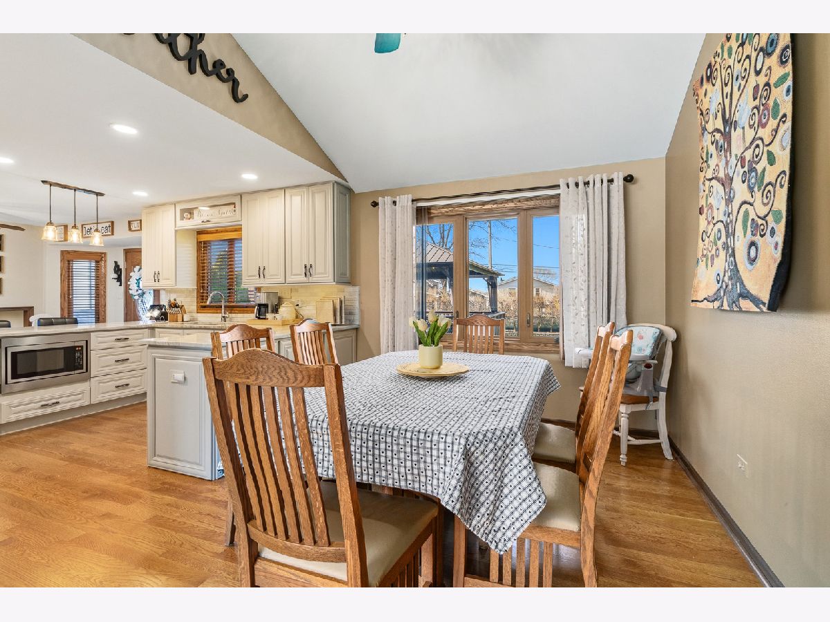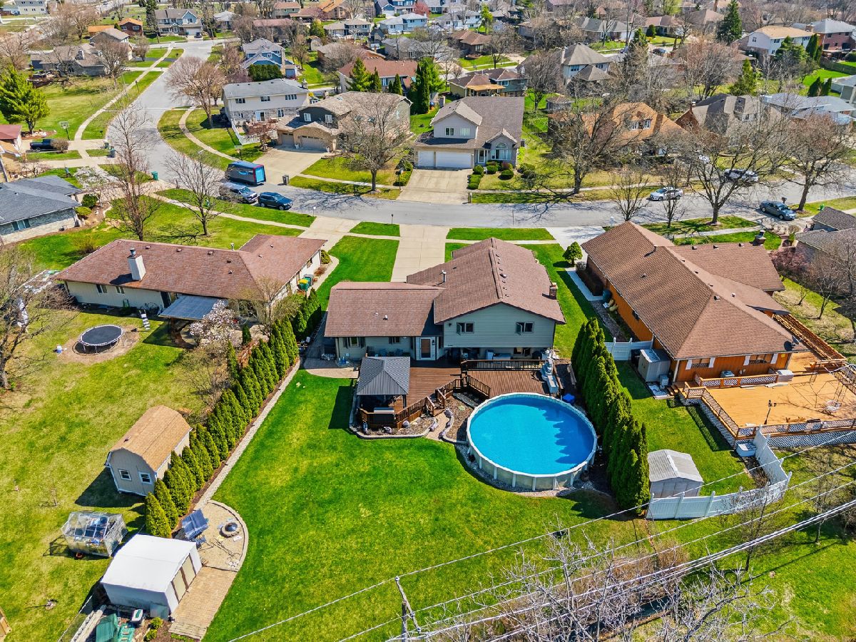 MULTIPLE OFFERS RECEIVED, HIGHEST AND BEST DUE BACK APRIL 9TH BY 8PM. Welcome to this beautifully updated 4-bedroom, 3 full bathroom quad-level home nestled in the heart of Lemont! From the moment you step inside, you'll be impressed by the soaring vaulted ceilings and rich hardwood floors that flow seamlessly throughout the entire main level. The stunning eat-in kitchen is truly the centerpiece of the home, featuring an updated backsplash, stainless steel appliances, granite countertops, 42-inch off-white cabinetry, a 5-burner cooktop, and canned lighting-perfect for both everyday living and entertaining. Just a few steps down, the inviting lower level offers a spacious family room complete with a beautifully tiled electric fireplace. This level also boasts a massive built-in buffet with granite countertops and a convenient dry bar area, making it ideal for hosting gatherings. You'll also find the fourth bedroom and a recently remodeled full bathroom featuring a beautifully done stand-up shower and luxurious radiant heated floors. Upstairs, you'll discover three generously sized bedrooms, including the primary suite with vaulted ceilings and three ample closets. The shared full bathroom includes a whirlpool tub and a double sink vanity, offering both comfort and convenience. The sub-basement is an entertainer's dream, featuring a large 16x24 recreational space perfect for a game room, home gym, or media area, along with a spacious storage room. In addition, the basement includes a beautifully done stand-up shower, adding both style and functionality to the space. Step outside to your private backyard oasis, which is fully fenced and designed for relaxation and fun. Enjoy the recently redone oversized deck with a charming gazebo, an above-ground pool, and a shed for additional storage. Additional updates include a brand new attic fan and insulation, newer windows throughout, and a fully renovated main level and kitchen completed in 2022. Ideally located within walking distance to Lemont High School, as well as parks, shopping, and dining, this home truly has it all. Don't miss your chance to make it yours!