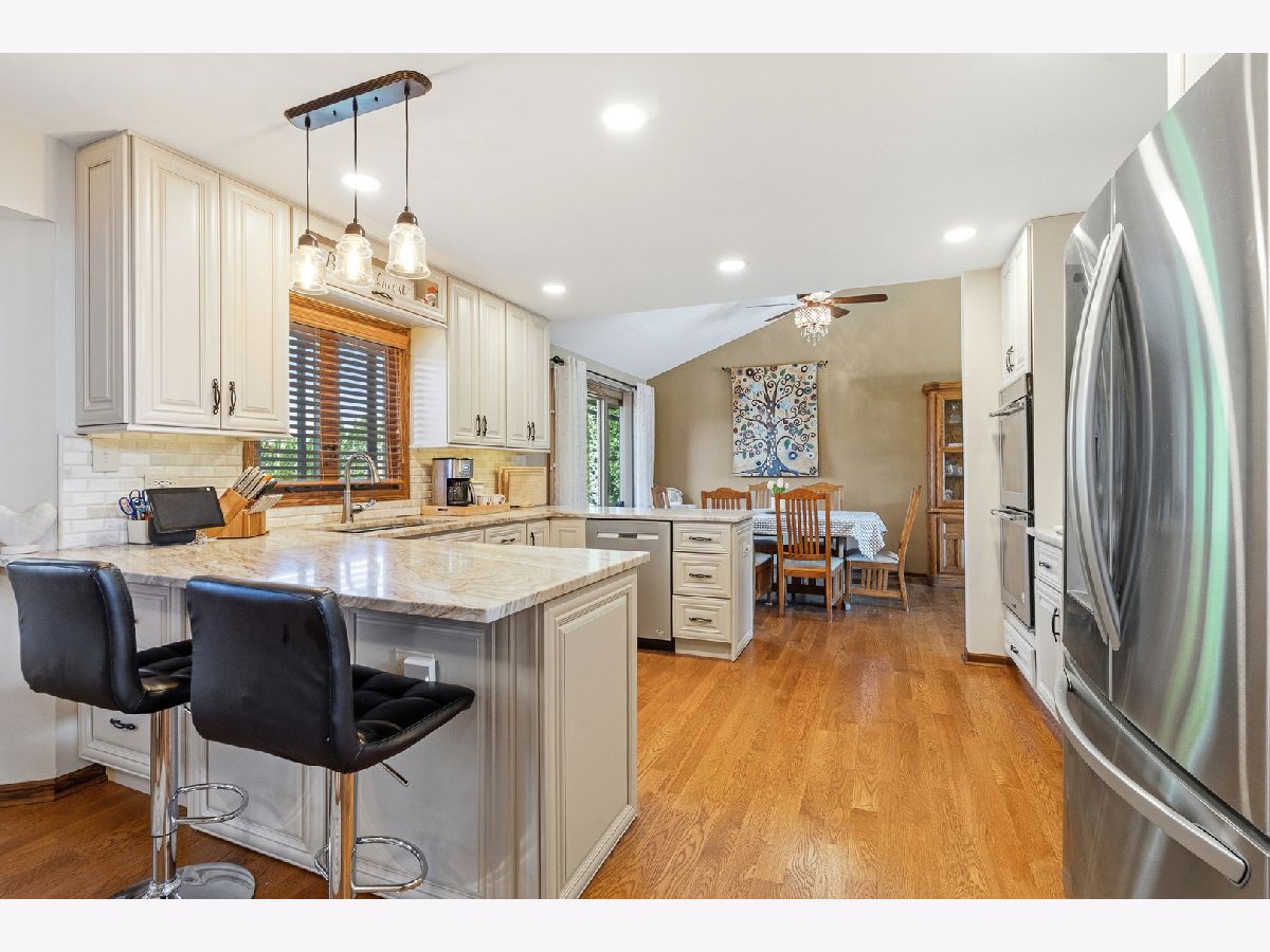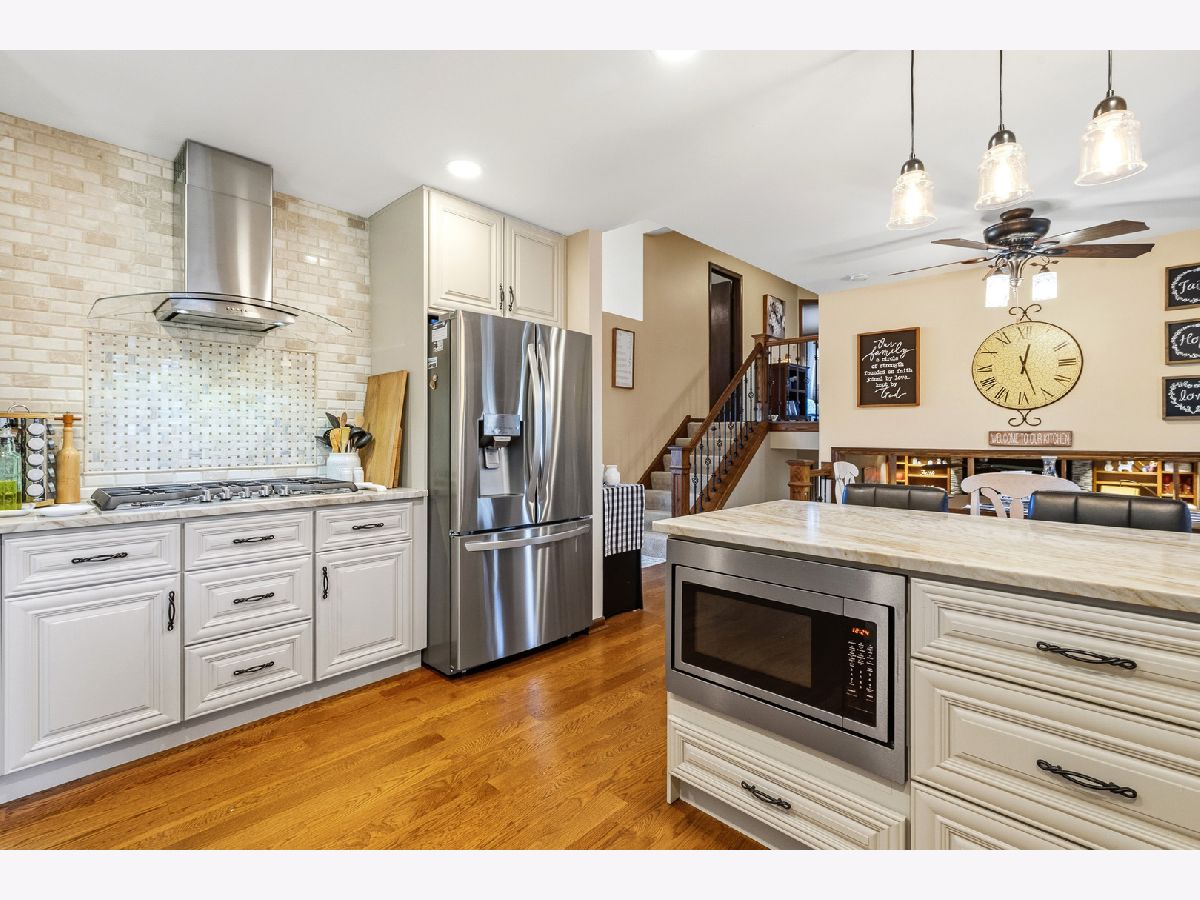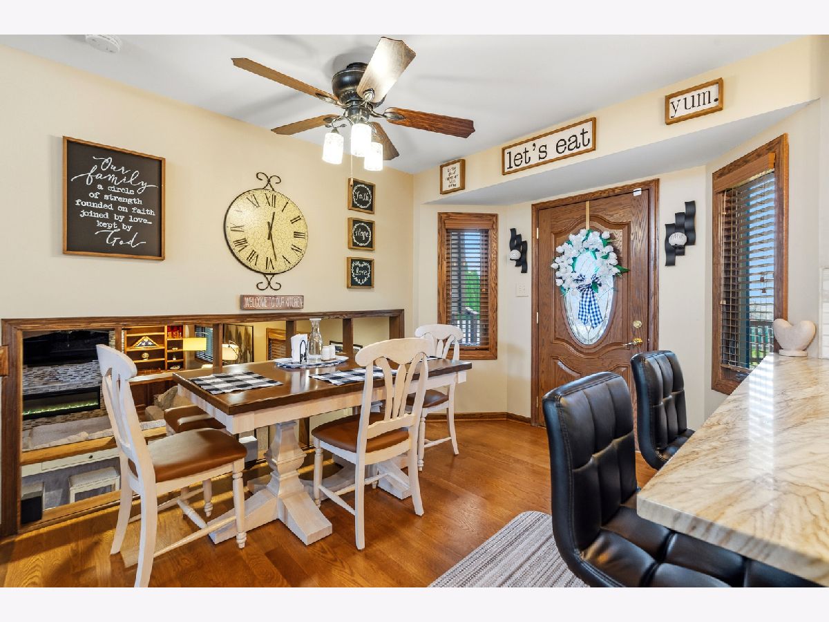 MULTIPLE OFFERS RECEIVED, HIGHEST AND BEST DUE BACK APRIL 9TH BY 8PM. Welcome to this beautifully updated 4-bedroom, 3 full bathroom quad-level home nestled in the heart of Lemont! From the moment you step inside, you'll be impressed by the soaring vaulted ceilings and rich hardwood floors that flow seamlessly throughout the entire main level. The stunning eat-in kitchen is truly the centerpiece of the home, featuring an updated backsplash, stainless steel appliances, granite countertops, 42-inch off-white cabinetry, a 5-burner cooktop, and canned lighting-perfect for both everyday living and entertaining. Just a few steps down, the inviting lower level offers a spacious family room complete with a beautifully tiled electric fireplace. This level also boasts a massive built-in buffet with granite countertops and a convenient dry bar area, making it ideal for hosting gatherings. You'll also find the fourth bedroom and a recently remodeled full bathroom featuring a beautifully done stand-up shower and luxurious radiant heated floors. Upstairs, you'll discover three generously sized bedrooms, including the primary suite with vaulted ceilings and three ample closets. The shared full bathroom includes a whirlpool tub and a double sink vanity, offering both comfort and convenience. The sub-basement is an entertainer's dream, featuring a large 16x24 recreational space perfect for a game room, home gym, or media area, along with a spacious storage room. In addition, the basement includes a beautifully done stand-up shower, adding both style and functionality to the space. Step outside to your private backyard oasis, which is fully fenced and designed for relaxation and fun. Enjoy the recently redone oversized deck with a charming gazebo, an above-ground pool, and a shed for additional storage. Additional updates include a brand new attic fan and insulation, newer windows throughout, and a fully renovated main level and kitchen completed in 2022. Ideally located within walking distance to Lemont High School, as well as parks, shopping, and dining, this home truly has it all. Don't miss your chance to make it yours!