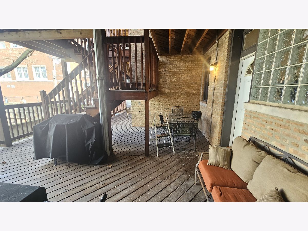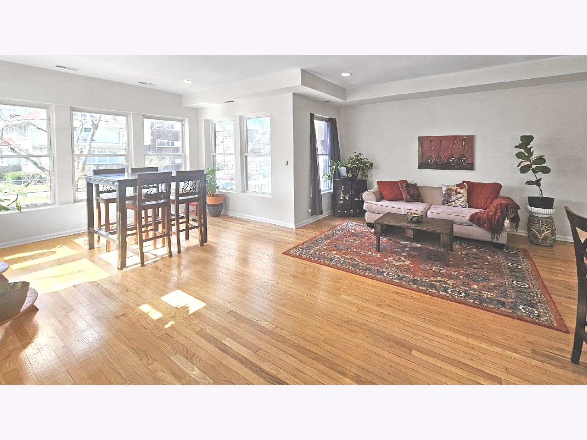 Sun-filled, spacious 2 bed / 2 bath + office + sunroom! This large open floor plan offers abundant natural light and beautiful finishes throughout. The kitchen features ample granite countertop space, stunning 42" maple cabinets, stainless steel appliances, and a large island with breakfast bar-perfect for cooking and entertaining. The king-sized primary suite includes a walk-in closet and a luxurious bath with a grand real wood vanity and jetted tub. The queen-sized second bedroom is conveniently located near a full guest bath. An additional open office/den space in the rear provides the perfect work-from-home setup. Enjoy gleaming hardwood floors, recessed lighting, and the convenience of an in-unit washer and dryer. Step outside to the massive deck, ideal for relaxing, grilling, and entertaining. Additional highlights include a storage unit in the basement, a common bike storage area, and 1 assigned parking space. Street parking is plentiful thanks to school parking across the street, providing easy evening, weekend, and holiday parking for a second car or guests. Ideally located within walking distance to Lake Michigan beaches, parks, restaurants, shops, a movie theater, and the library, and just a 10-minute stroll to Loyola University, the Red Line, and Metra stations. The well-run, pet-friendly association is proactive with maintenance and has never levied a special assessment.