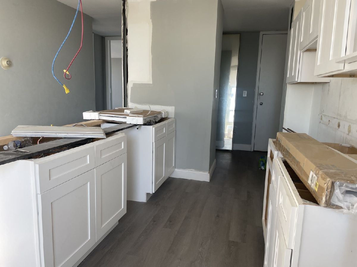 This bright, corner 2bed/2bath residence offers sweeping northwest views of Lake Michigan and the surrounding city skyline from every room with a balcony. This unit is free of past specials unlike other comps in the building. The property is being sold as is. Cash offers or renovation loans needed. Natural light fills the space through walls of windows, creating an inviting setting that blends lakefront tranquility with urban energy. Located in a well-maintained high-rise with door staff, elevator, laundry room, parking, and an entry system that connects directly to your phone when staff is off duty, this building combines convenience and security. A fitness facility is also planned for future reopening, adding even more value for residents. The unit itself is being sold as-is & work will not be finished. a cash buyer or renovation loan. It has had a partial renovation including; new LVP flooring throughout, updated lighting, new tile and bathroom fixtures in bathrooms, washer / dryer hook up has been completed. Unit has a large balcony that is West facing. The unit is priced accordingly and priced to sell - a fantastic opportunity to finish the remaining updates and create your ideal home. The renovation is partially complete, with key projects still to be done, including installing kitchen counter-tops, cabinets, appliances, lighting, and mirrors in both bathrooms, as well as minor drywall and paint touch-ups. The building is perfectly positioned across from Lake Michigan and the South Shore Golf Course, this location provides access to scenic walking paths, beaches, and parkland, while also being just minutes from the South Shore Cultural Center, local shops, dining, and public transit options. Bring your vision to life in this bright, spacious lakeside home and enjoy all that South Shore living has to offer.