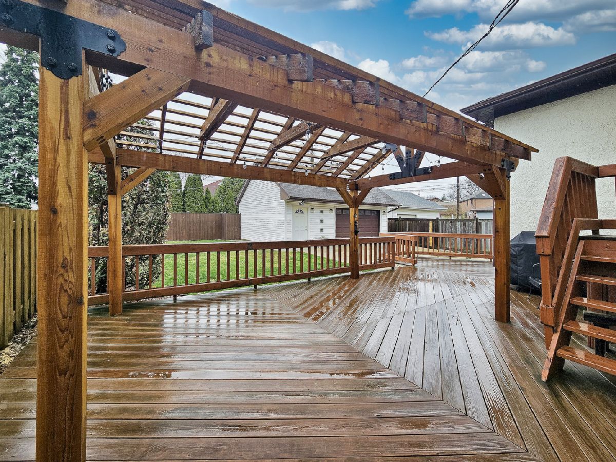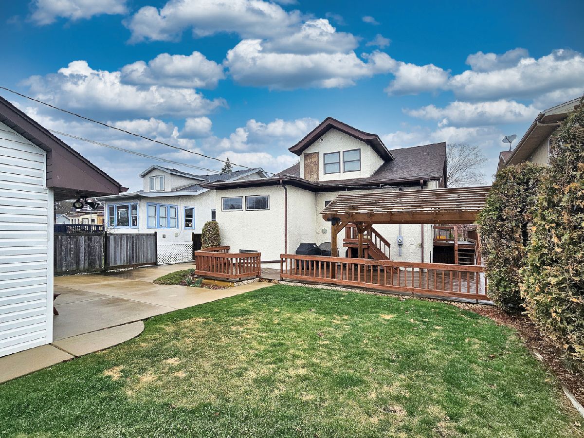 Heart of Norwood Park, stunning jumbo Arts and Crafts Queen Anne has almost 2800 square feet in a unique and desirable layout. The first floor has a large living room with a fireplace and a generous dining room with original woodwork throughout. Bright updated each it-kitchen, three large bedrooms, updated bath. The second floor has a private entrance to a huge loft-like space with bar/kitchen area, full bath with a steam shower, and a bedroom- space allows configuration to be altered to add more bedrooms. An enormous basement awaits you, with decorating ideas and bathroom plumbing in place to complete a full bath. Home has newer windows, all new copper plumbing, sprinkler system, oversized 2.5 car garage, with stairs to loft for storage or studio. Roof approximately 20 years old, Brand new heating system. Backyard has a large, beautiful raised patio deck with a slated pergola, perfect for entertaining. All this on an oversize lot with side drive, and two blocks to downtown Norwood Park and Norwood Metra. (Certain images have been digitally enhanced and/or modified using artificial intelligence (AI) to improve presentation, including removal of personal items or virtual staging. These images are for marketing purposes only and may not reflect current conditions. Buyers should independently verify all information.)