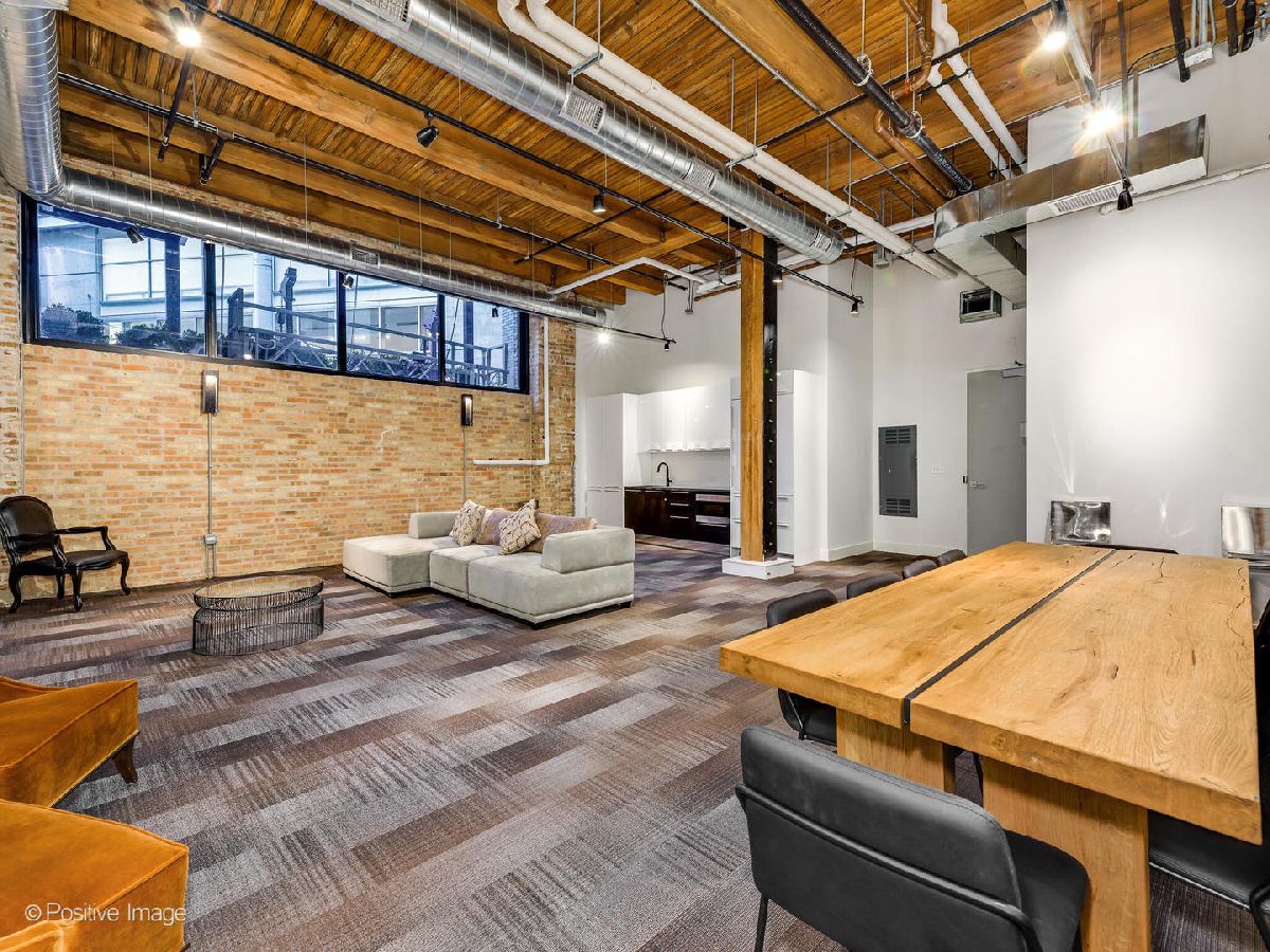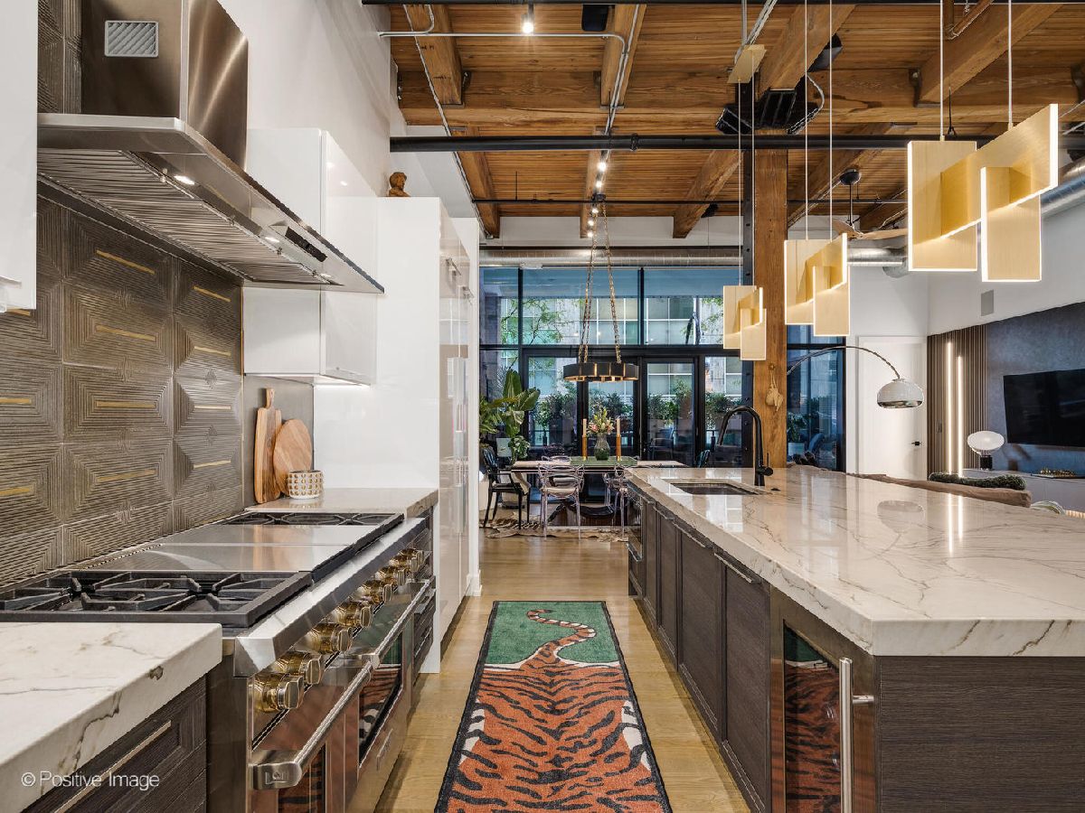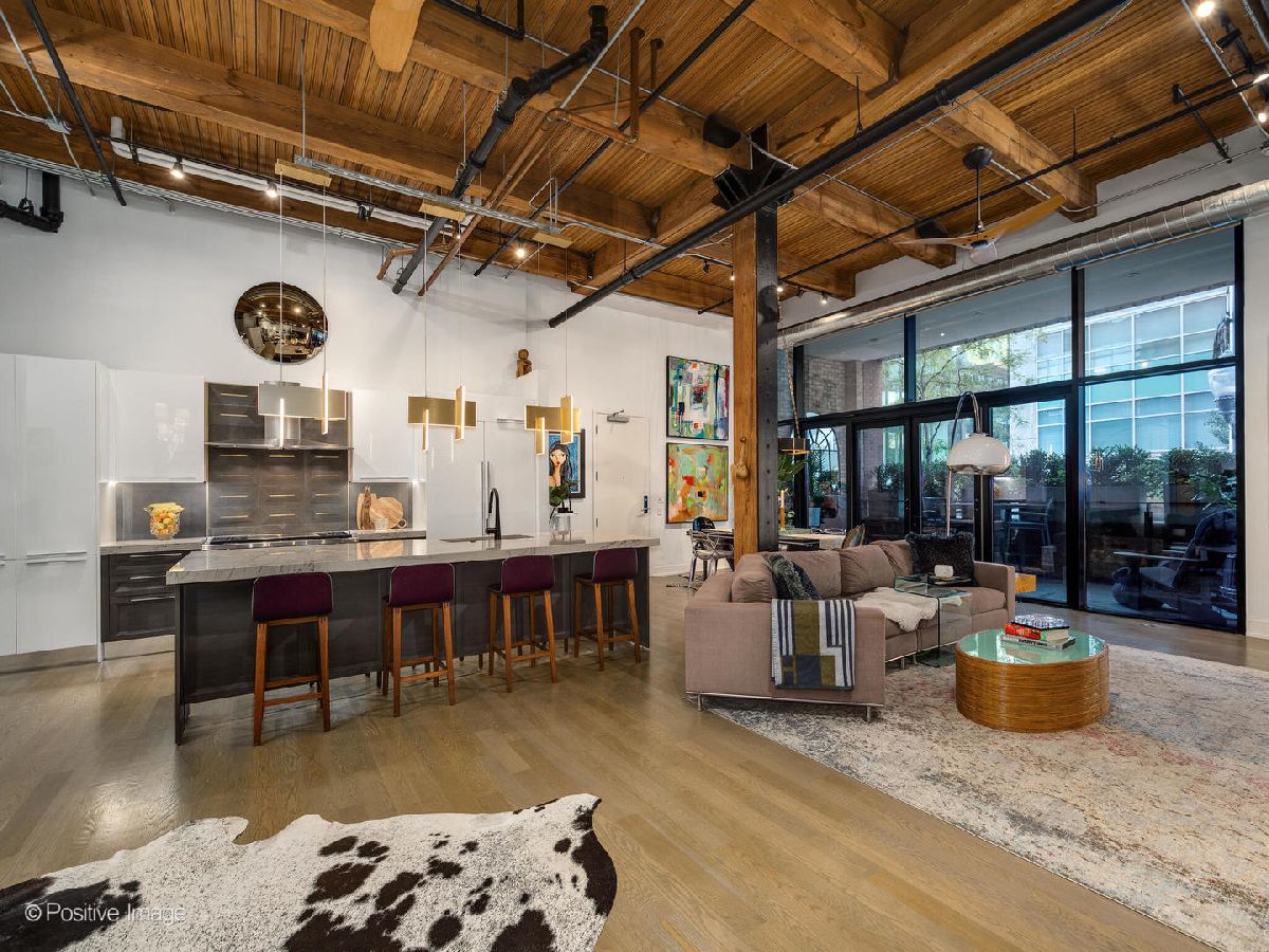 Experience elevated loft living at The Ronsley, one of River North's most sought-after luxury residences. This exceptional 3-bedroom, 3-bathroom home offers a perfect blend of industrial and modern feel, featuring soaring 15-foot timber ceilings, exposed brick, floor-to-ceiling windows, hardwood floors, custom lighting and automatic shades throughout. The open concept living and dining area is filled with natural light and anchored by a custom media wall, seamlessly flowing to a spacious private terrace. The chef's kitchen is outfitted with top-of-the-line Wolf appliances, a large island with polished quartz countertops, custom cabinetry, beverage refrigerator, pantry, and a custom designed built-in breakfast nook. A desirable split-bedroom floor plan offers convenience with each bedroom featuring a full en-suite bath. The luxurious primary suite includes oversized windows with blackout shades, a walk-in closet, and a spa-inspired bath with a steam shower, soaking tub, dual vanities, and updated mirrors. The generously sized second and third bedrooms each offer ample closet space and beautifully appointed en-suite baths. Additional features include a spacious laundry room with side-by-side washer/dryer, utility sink, and extensive cabinetry. The Ronsley is a full amenity building offering 24-hour door staff, fitness center, yoga room, resident lounge, an expansive landscaped courtyard with grilling stations, fire pit, and lounge seating and a private dog run. Ideally located near Montgomery Ward Park, the Chicago Riverwalk, Larrabee dog park, Health/Wellness Clubs such as East Bank Club and Bian, Target, groceries, top dining, nightlife, shopping, public transit and highway access. Price includes a premium deeded garage parking space with a lift accommodating two vehicles.