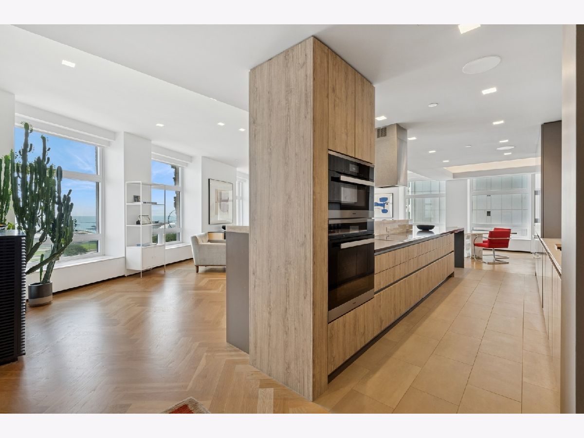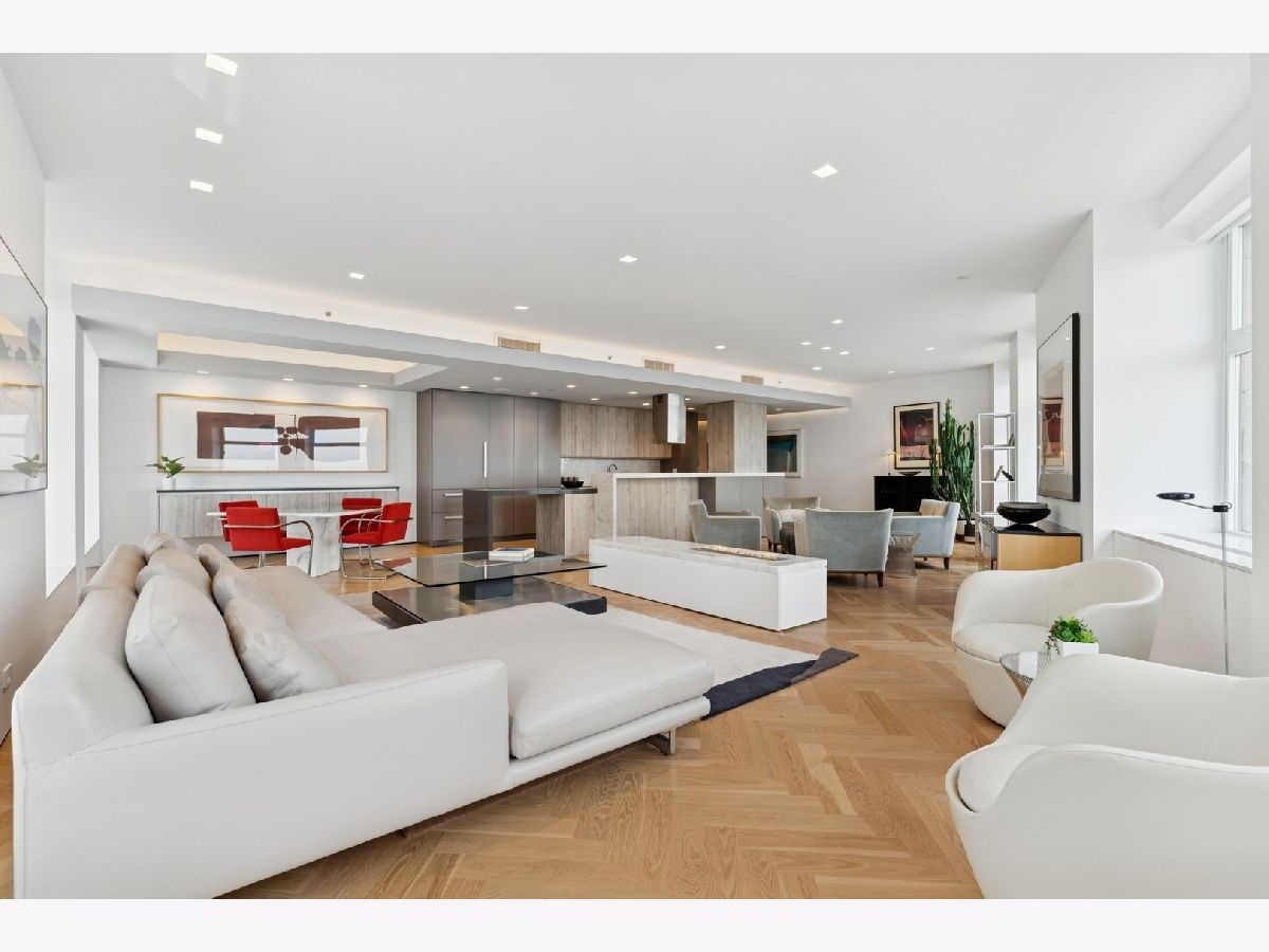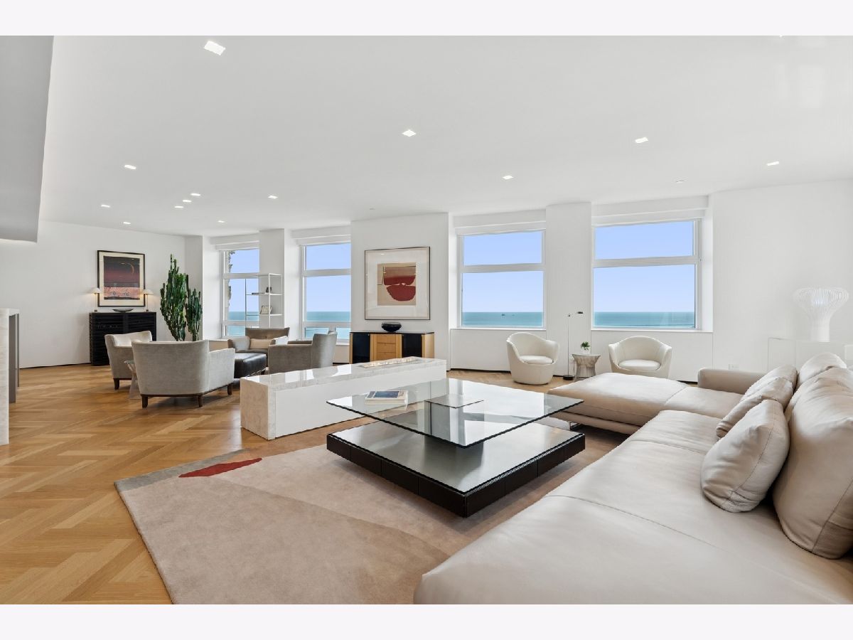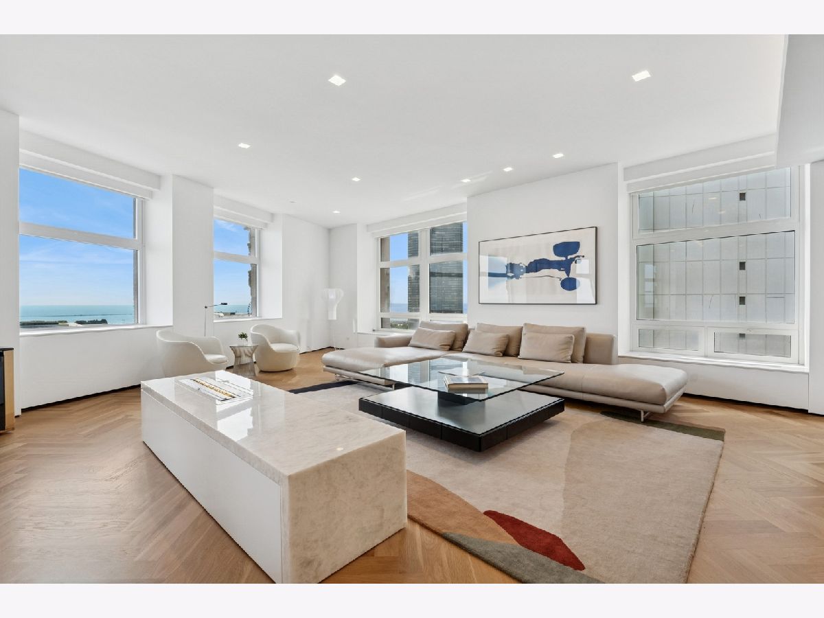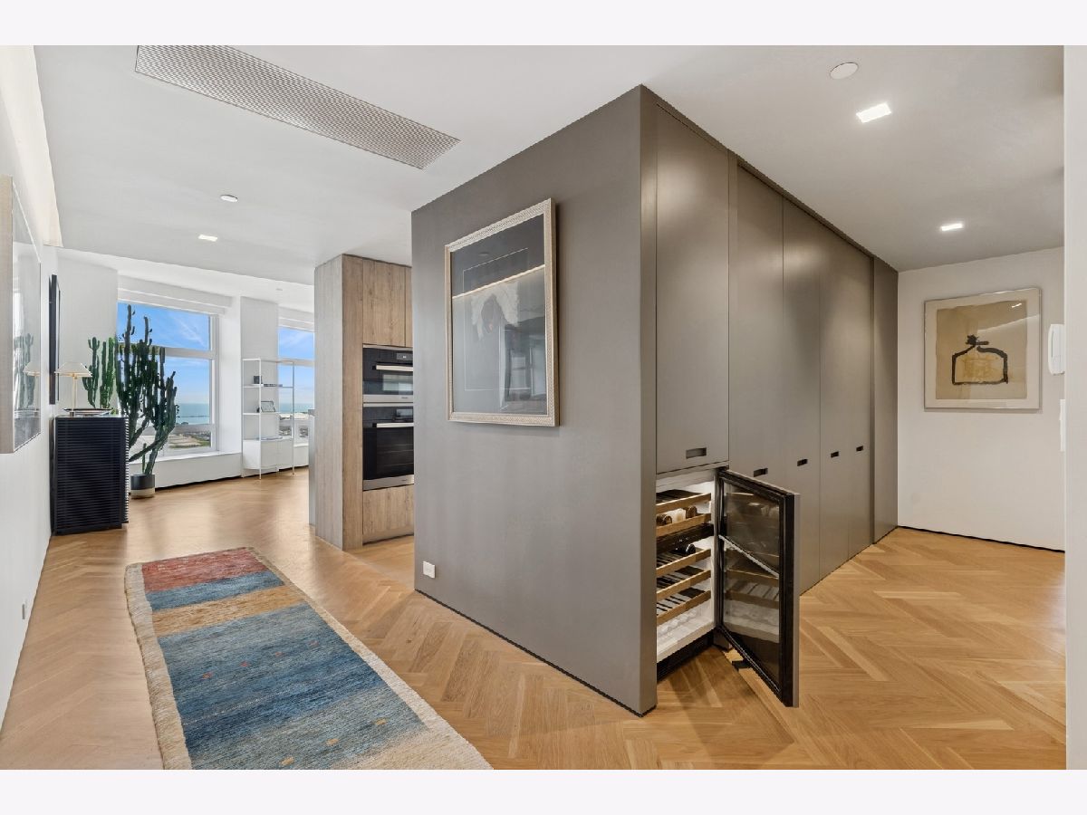 Stunning and Extraordinary 2,900 sq. ft. home featuring the finest quality finishes throughout. The pristine southeast corner space was reimagined to highlight spacious open living and features eleven large windows, each revealing fabulous unobstructed views of the Lake, Ohio St. Beach and Navy Pier. This architecturally impressive three bedroom, 2.5 bath home with its 10 ft. ceilings, features a very spacious open floor plan, a living room fireplace, and gorgeous white oak herringbone floors throughout. The living, dining and kitchen spaces are open to each other and join in sharing the east-facing windows. The kitchen appliances are dual Miele ovens, Sub Zero & Gaggenau, and the Italian contemporary-style cabinetry, called "Aster Cucine," is also featured throughout the rest of the home. The primary bedroom, a quiet and luxurious space, has a generous collection of built-in wood cabinets with hanging closets and drawers and a graceful coved ceiling with custom lighting. The adjacent spa like primary bath holds dual ALAPE rectangular sinks with quartz counters, rain and hand-held shower heads, jacuzzi tub, custom walk-in closet and heated floors. Of the two additional bedrooms each has ample closet space, while the third features a custom built-in cabinet and desk. The laundry room features a full-sized washer/dryer and deep sink. Building amenities include a newly renovated indoor pool, hot tub, exercise room, bike area, storage, 24 hour doorman. No Rental Cap.