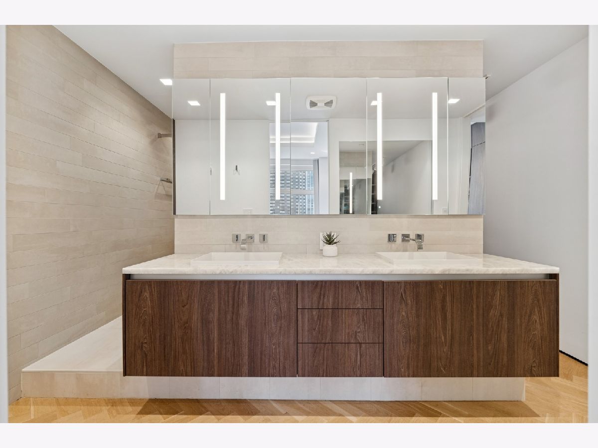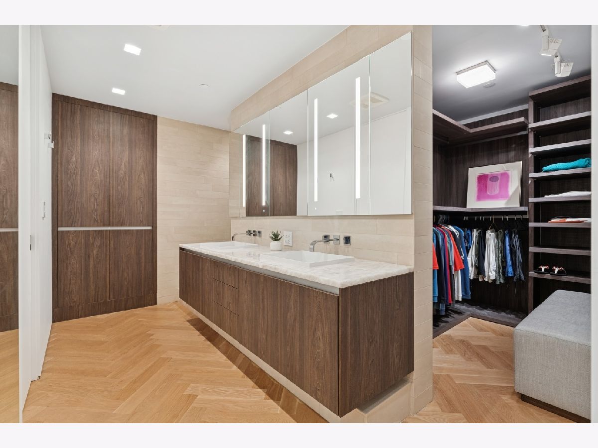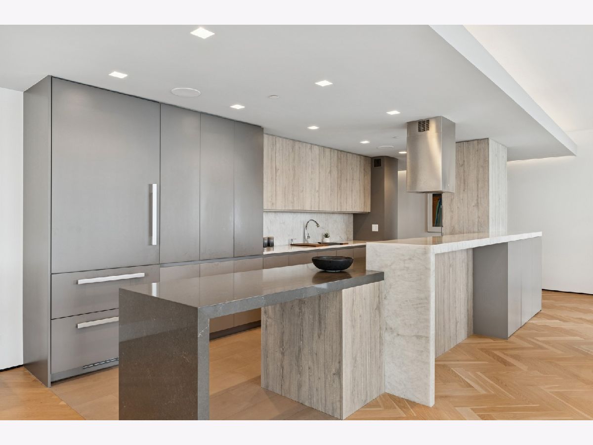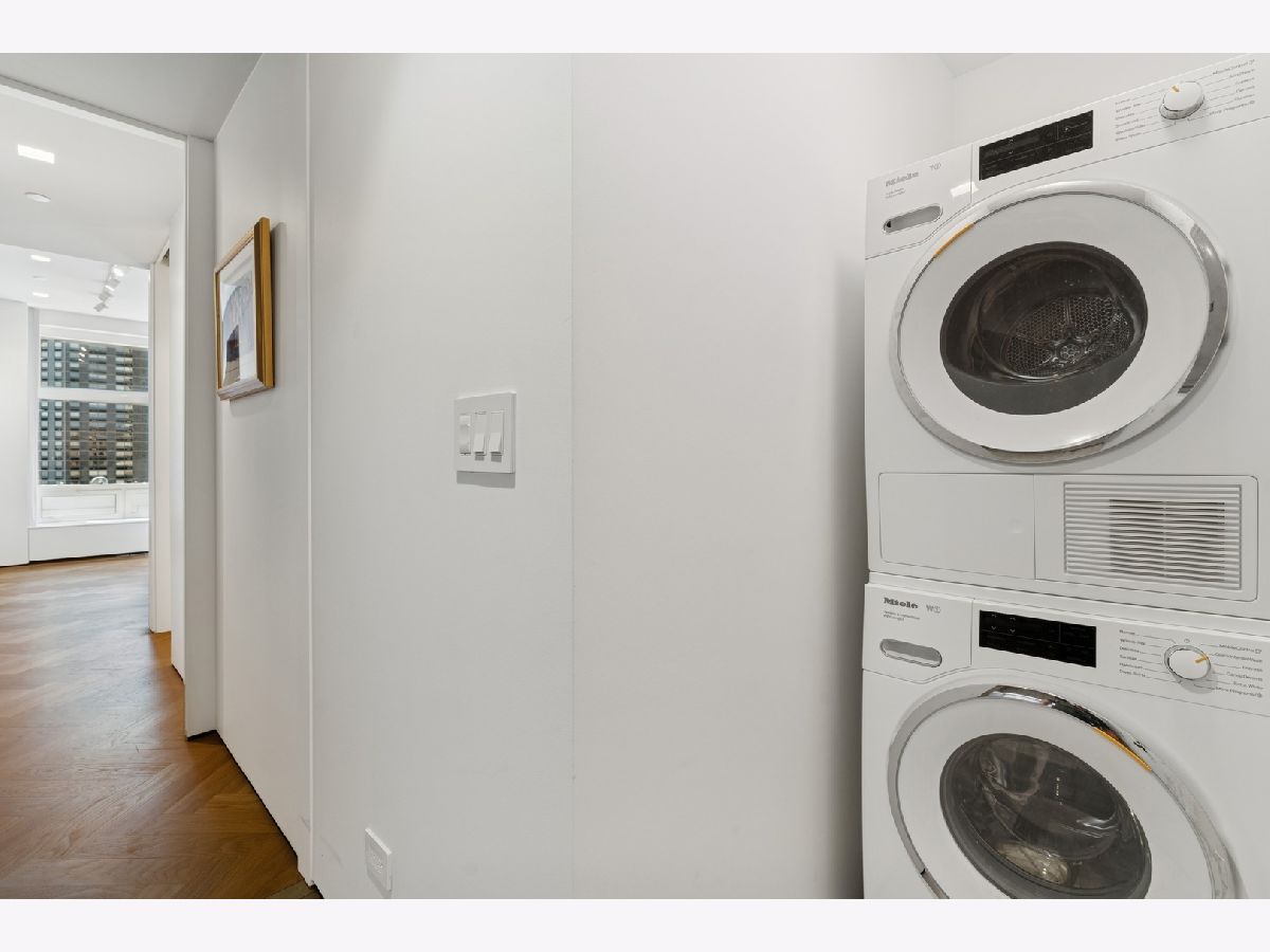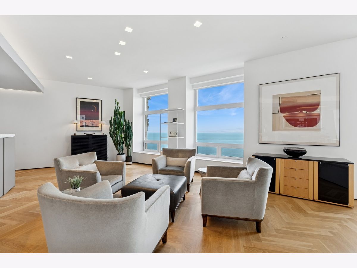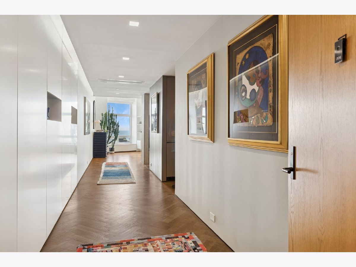 Stunning and Extraordinary 2,900 sq. ft. home featuring the finest quality finishes throughout. The pristine southeast corner space was reimagined to highlight spacious open living and features eleven large windows, each revealing fabulous unobstructed views of the Lake, Ohio St. Beach and Navy Pier. This architecturally impressive three bedroom, 2.5 bath home with its 10 ft. ceilings, features a very spacious open floor plan, a living room fireplace, and gorgeous white oak herringbone floors throughout. The living, dining and kitchen spaces are open to each other and join in sharing the east-facing windows. The kitchen appliances are dual Miele ovens, Sub Zero & Gaggenau, and the Italian contemporary-style cabinetry, called "Aster Cucine," is also featured throughout the rest of the home. The primary bedroom, a quiet and luxurious space, has a generous collection of built-in wood cabinets with hanging closets and drawers and a graceful coved ceiling with custom lighting. The adjacent spa like primary bath holds dual ALAPE rectangular sinks with quartz counters, rain and hand-held shower heads, jacuzzi tub, custom walk-in closet and heated floors. Of the two additional bedrooms each has ample closet space, while the third features a custom built-in cabinet and desk. The laundry room features a full-sized washer/dryer and deep sink. Building amenities include a newly renovated indoor pool, hot tub, exercise room, bike area, storage, 24 hour doorman. No Rental Cap.