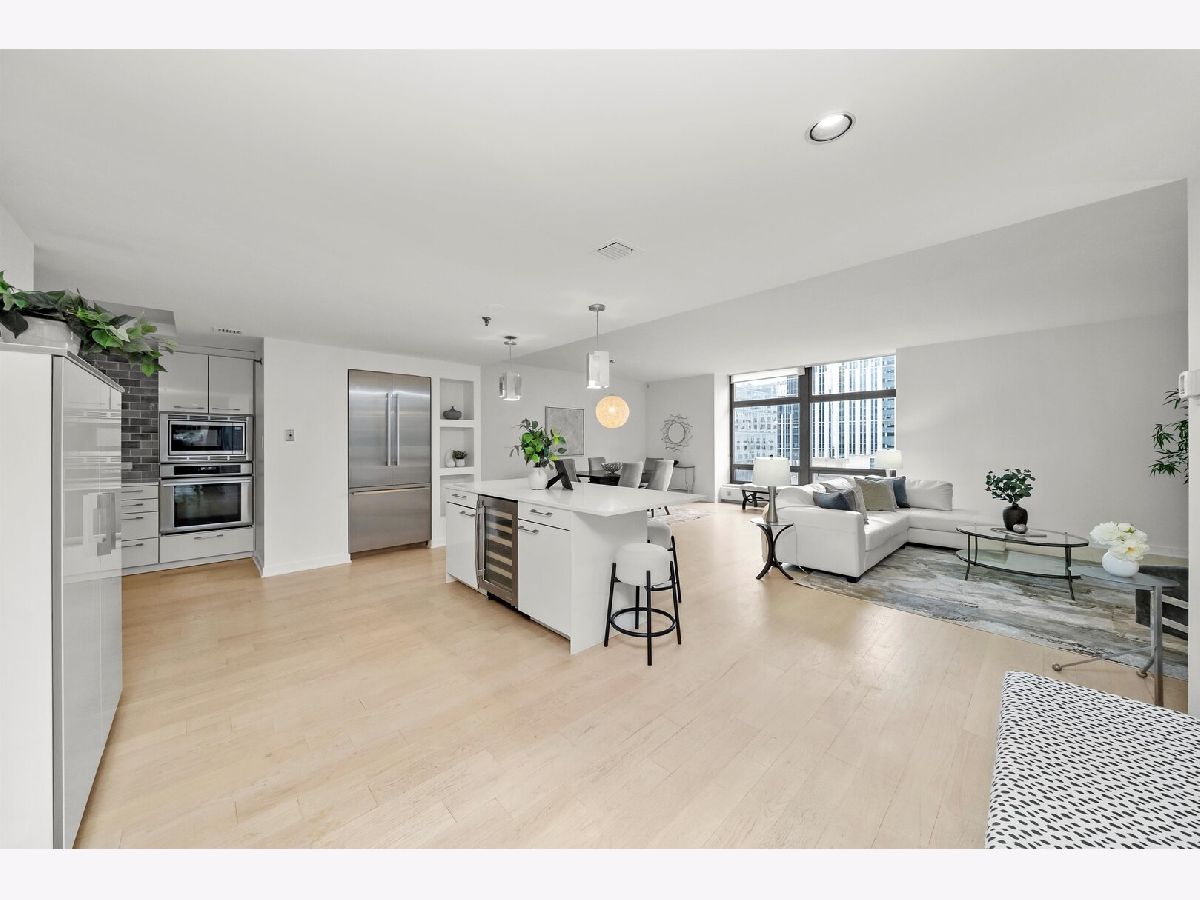 Welcome to a sophisticated reimagining of 2,100 square feet of elevated city living. This exceptional 2 bedroom, 2.5 bath residence blends the elegance of 1920's Gothic architecture with a clean, modern sensibility resulting in a truly one-of-a-kind home on iconic Lake Shore Drive. Once inside, ten foot ceilings and expansive picture windows frame striking city views and unforgettable sunsets, while a wide open floor plan offers the perfect backdrop for entertaining and everyday living. The thoughtfully designed chef's kitchen is anchored by quartz countertops and sleek custom cabinetry by Leicht, fully accessorized for maximum function and style. Seven inch white oak hardwood floors run throughout, and every bath has been renovated with custom cabinetry, quartz surfaces, and beautifully integrated lighting. The oversized primary suite stuns with a custom built walk-in closet and a luxe en suite bath. A generous laundry room offers a Bosch washer and dryer, additional cabinetry, and a practical work surface. Located just off the lakefront in the heart of Streeterville in a full service building offering newly outfitted fitness center, indoor pool with whirlpool, on site dry cleaner, valet parking and a casual restaurant. Additional storage, and a deeded private-access garage parking is included in the price. Truly a home that stands apart. Effortlessly refined. Undeniably rare.