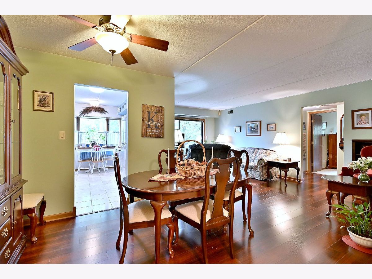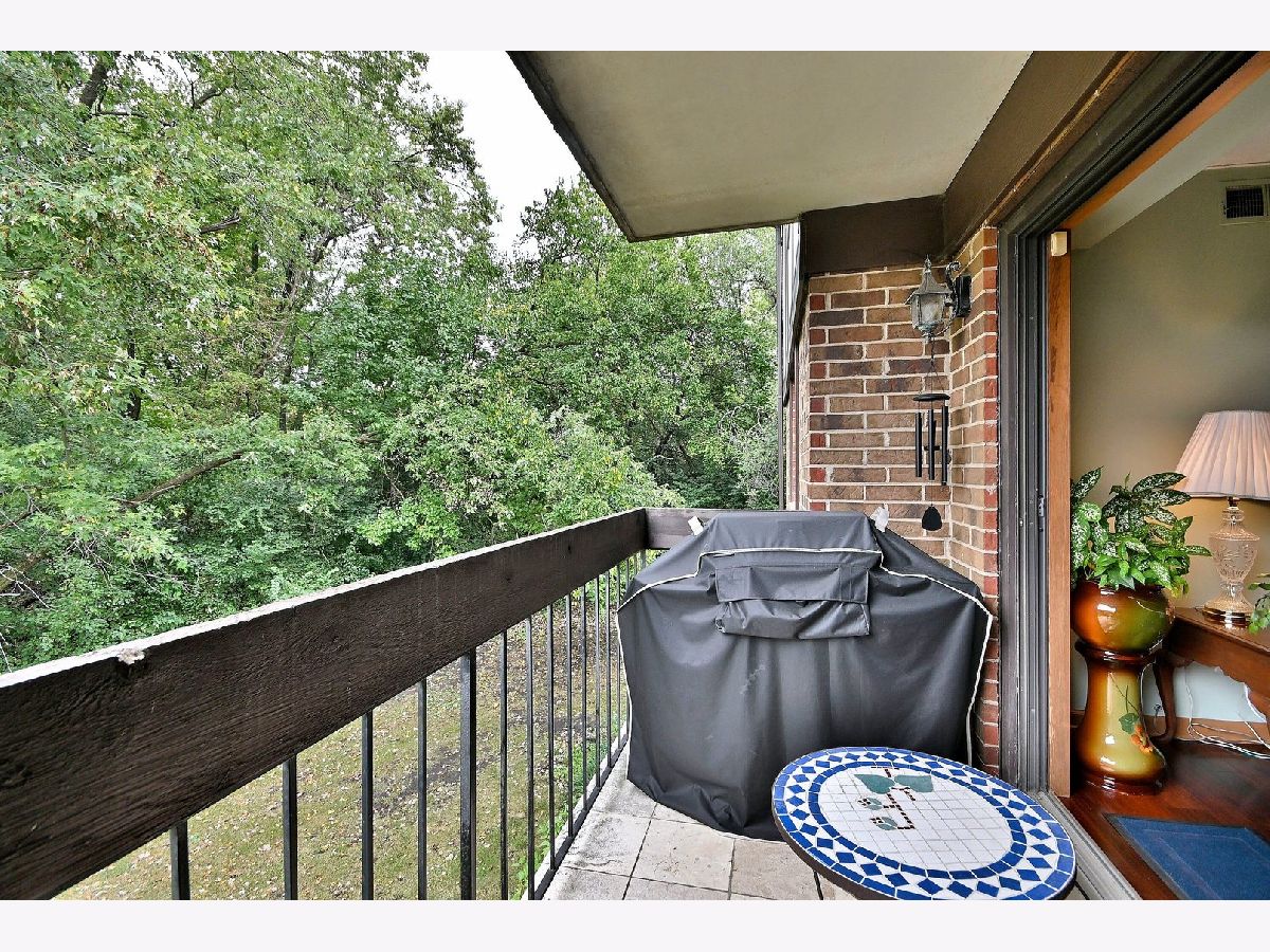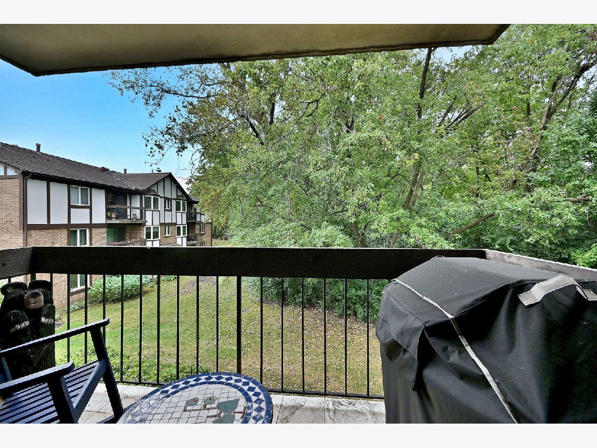 This desirable 2nd floor condo unit has 2 bedrooms with walk in closets, a dining room, eat in kitchen with a bay window, and a full bath and a half bath, Because this unit faces the woods and has Flexicore ceilings, it is a quiet respite from your neighbors and the noisy hustle and bustle of life. Unobstructed views of lush trees from the kitchen, living room, bedroom and a peaceful and private balcony add to the serenity! One assigned parking space with plenty of additional parking for guests! Andersen windows, New in 2024...washer. New in 2023...easy care wood look vinyl floor, refigerator. New in 2022... furnace. New in 2020....air conditioner. Highly rated Highlands Elementary and Middle Schools and Lyons Township High School. Easy access to I294 and I55.