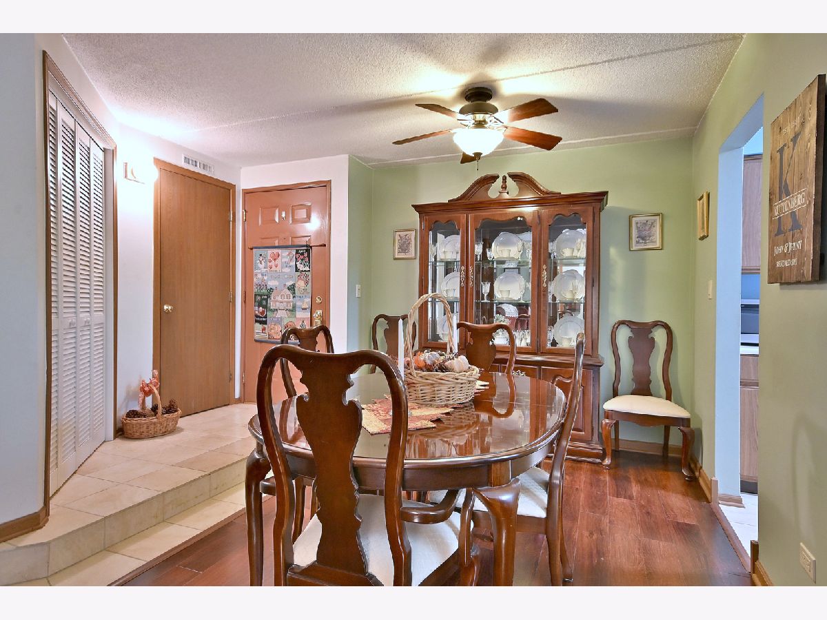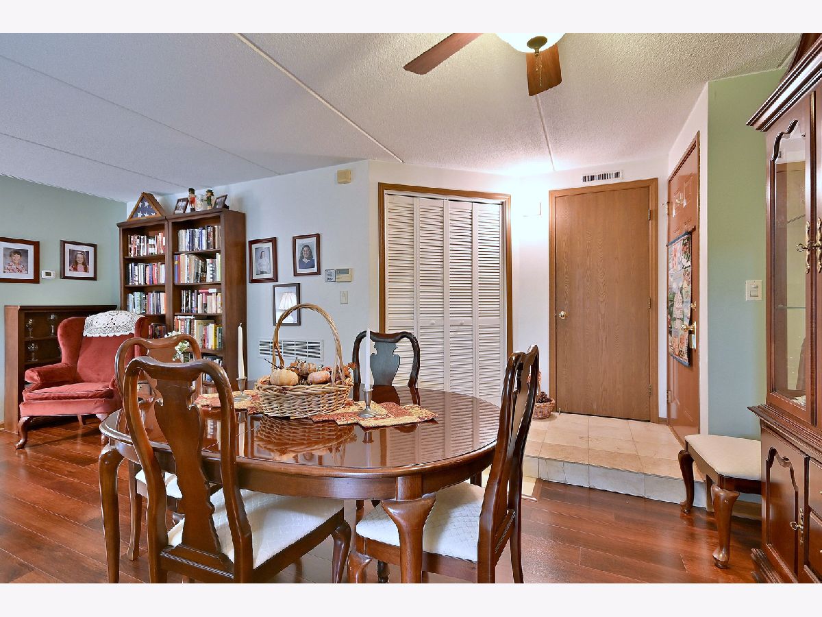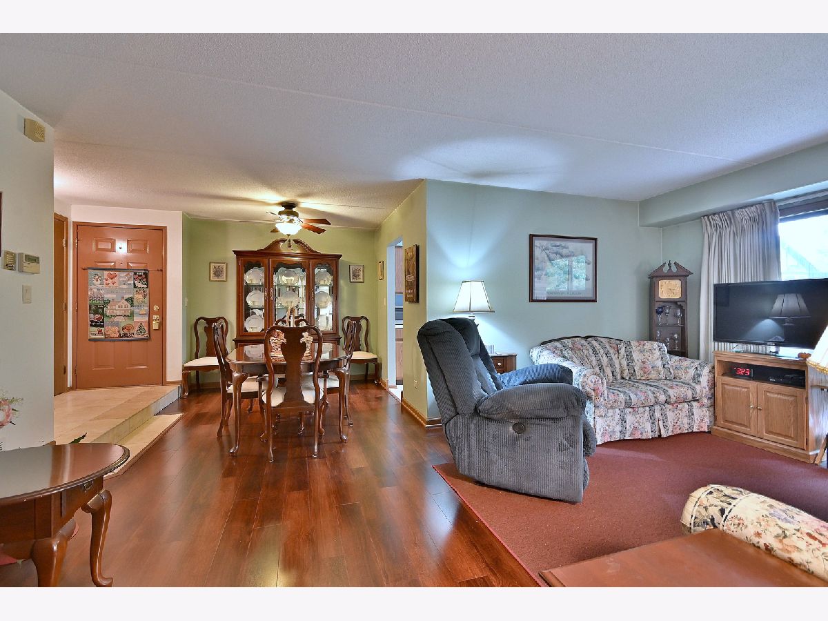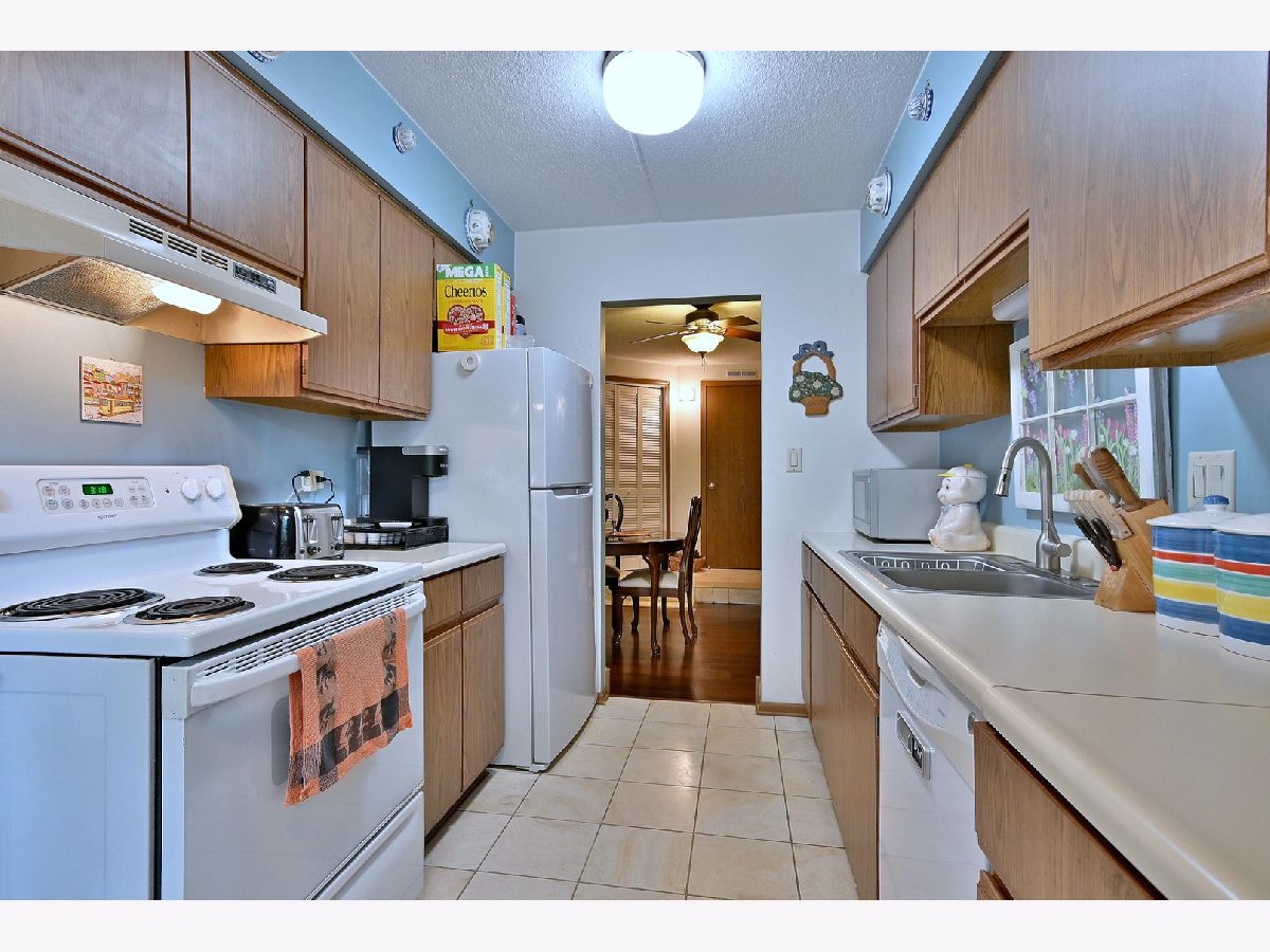This desirable 2nd floor condo unit has 2 bedrooms with walk in closets, a dining room, eat in kitchen with a bay window, and a full bath and a half bath, Because this unit faces the woods and has Flexicore ceilings, it is a quiet respite from your neighbors and the noisy hustle and bustle of life. Unobstructed views of lush trees from the kitchen, living room, bedroom and a peaceful and private balcony add to the serenity! One assigned parking space with plenty of additional parking for guests! Andersen windows, New in 2024...washer. New in 2023...easy care wood look vinyl floor, refigerator. New in 2022... furnace. New in 2020....air conditioner. Highly rated Highlands Elementary and Middle Schools and Lyons Township High School. Easy access to I294 and I55.